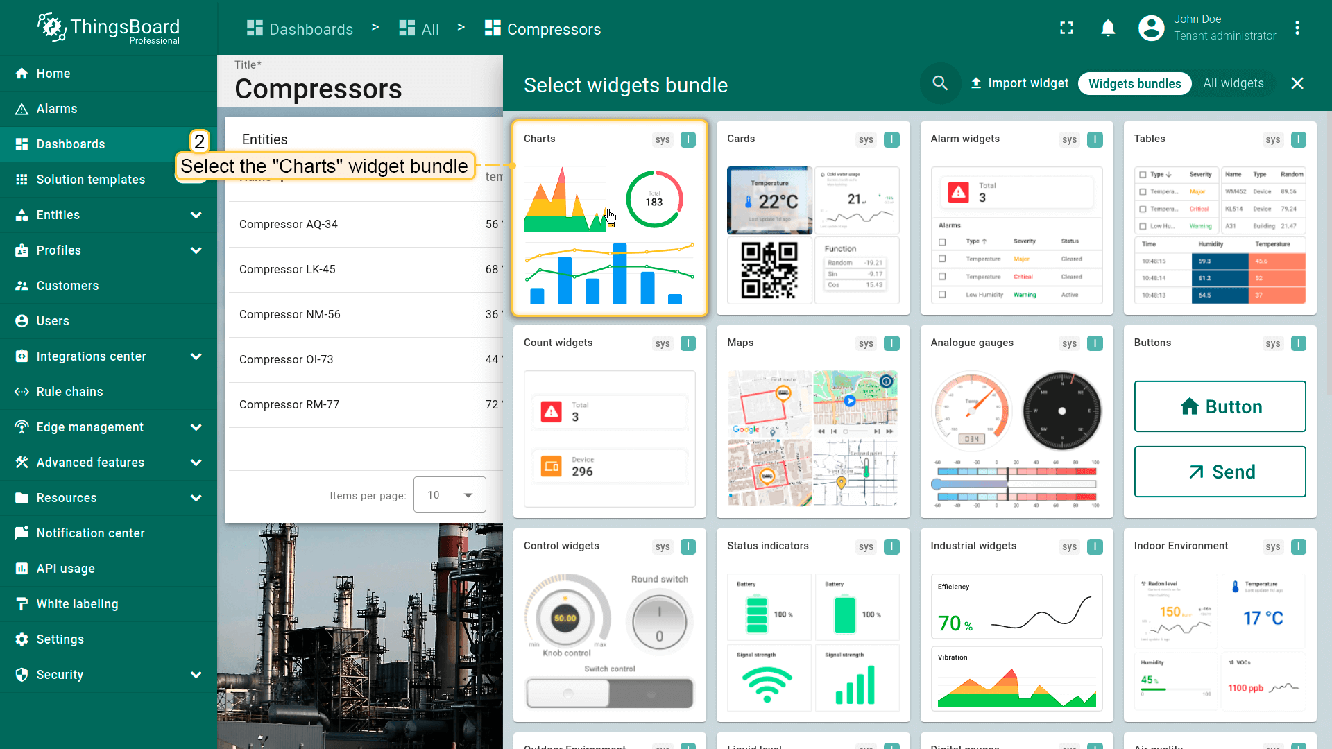 - Find the "Charts" widget bundle and click on it;