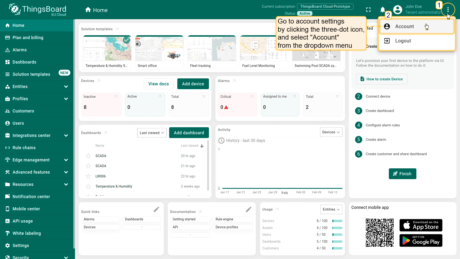 - 以租户管理员身份登录ThingsBoard Cloud。