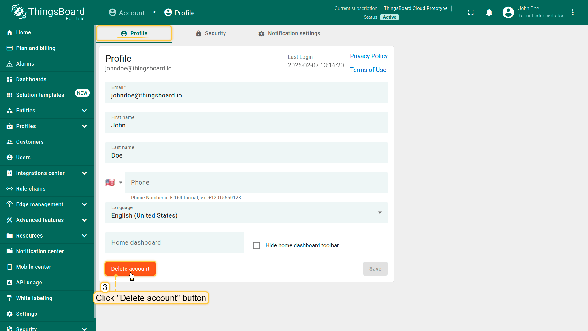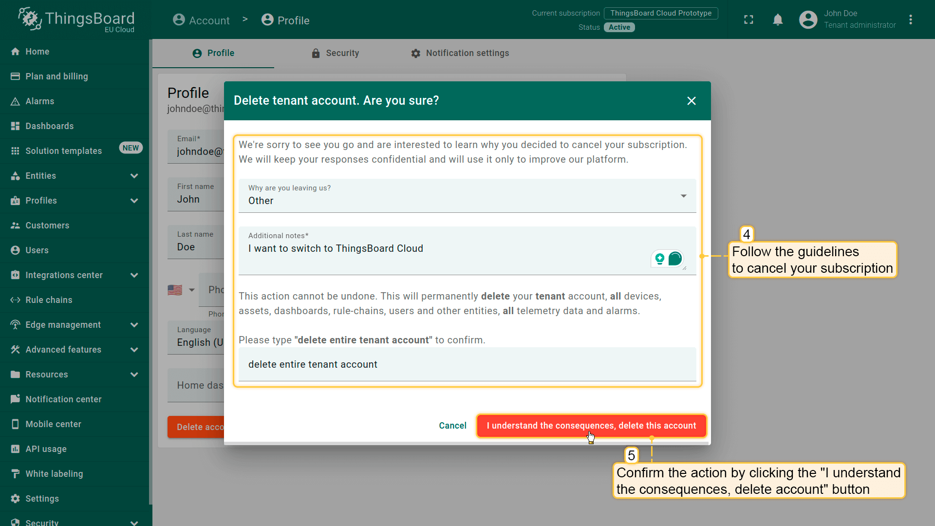 终止ThingsBoard Cloud订阅可按下述步骤操作: