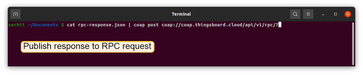 cat rpc-response.json | coap post coap://coap.thingsboard.cloud/api/v1/$ACCESS_TOKEN /rpc/1