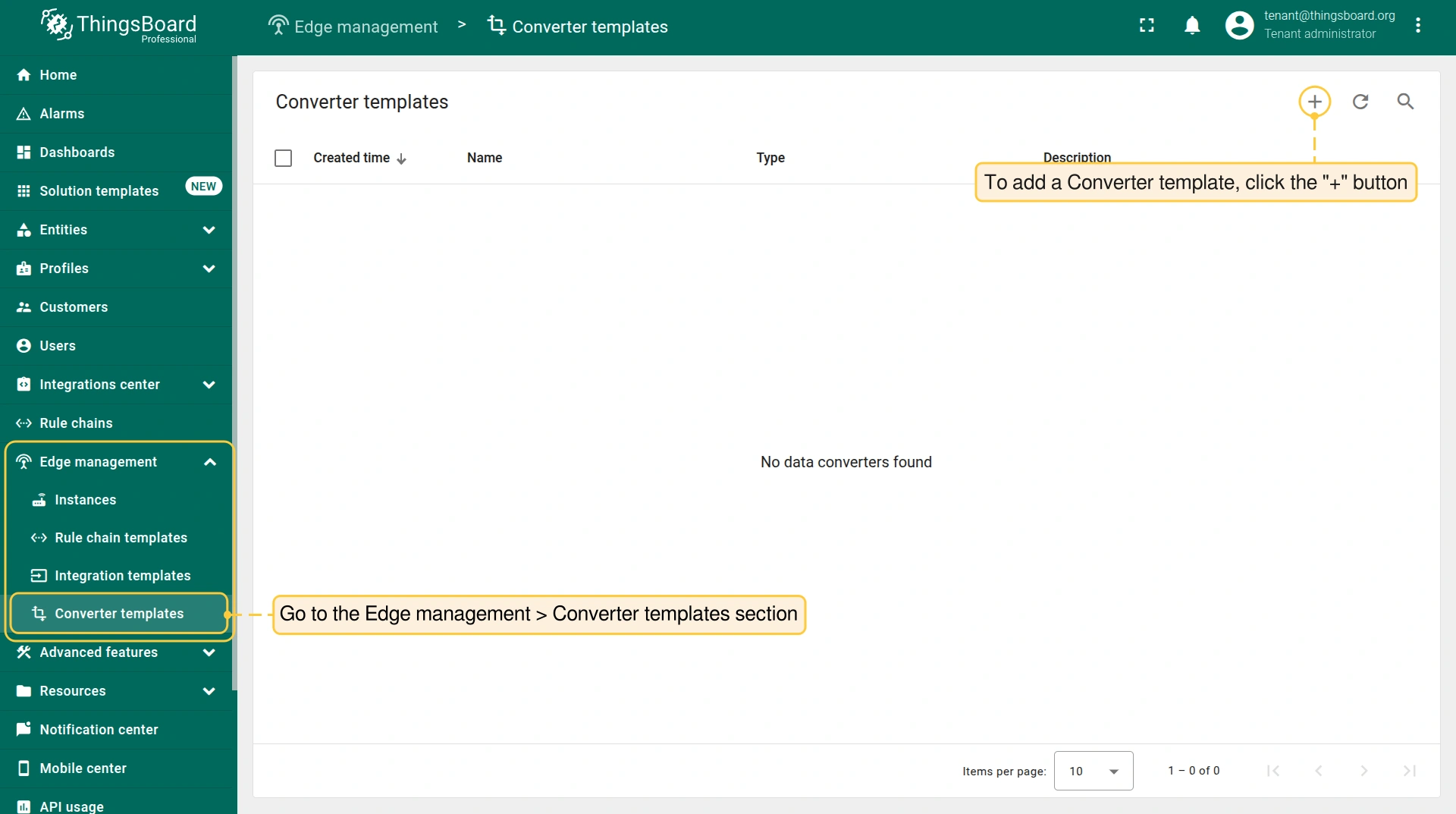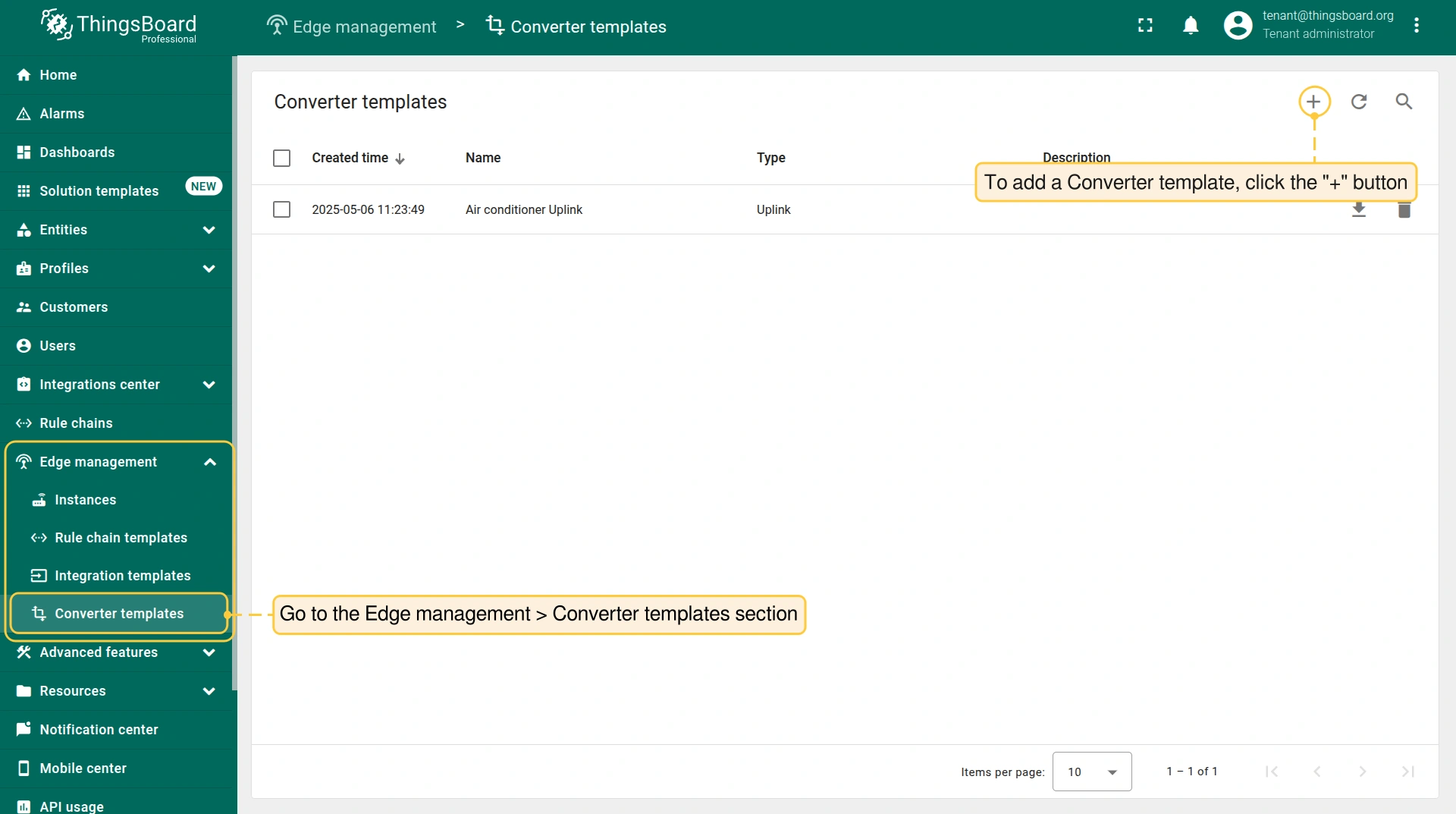 Converter and Integration templates are created on the Cloud, so please log in as Tenant administrator to cloud instance.
