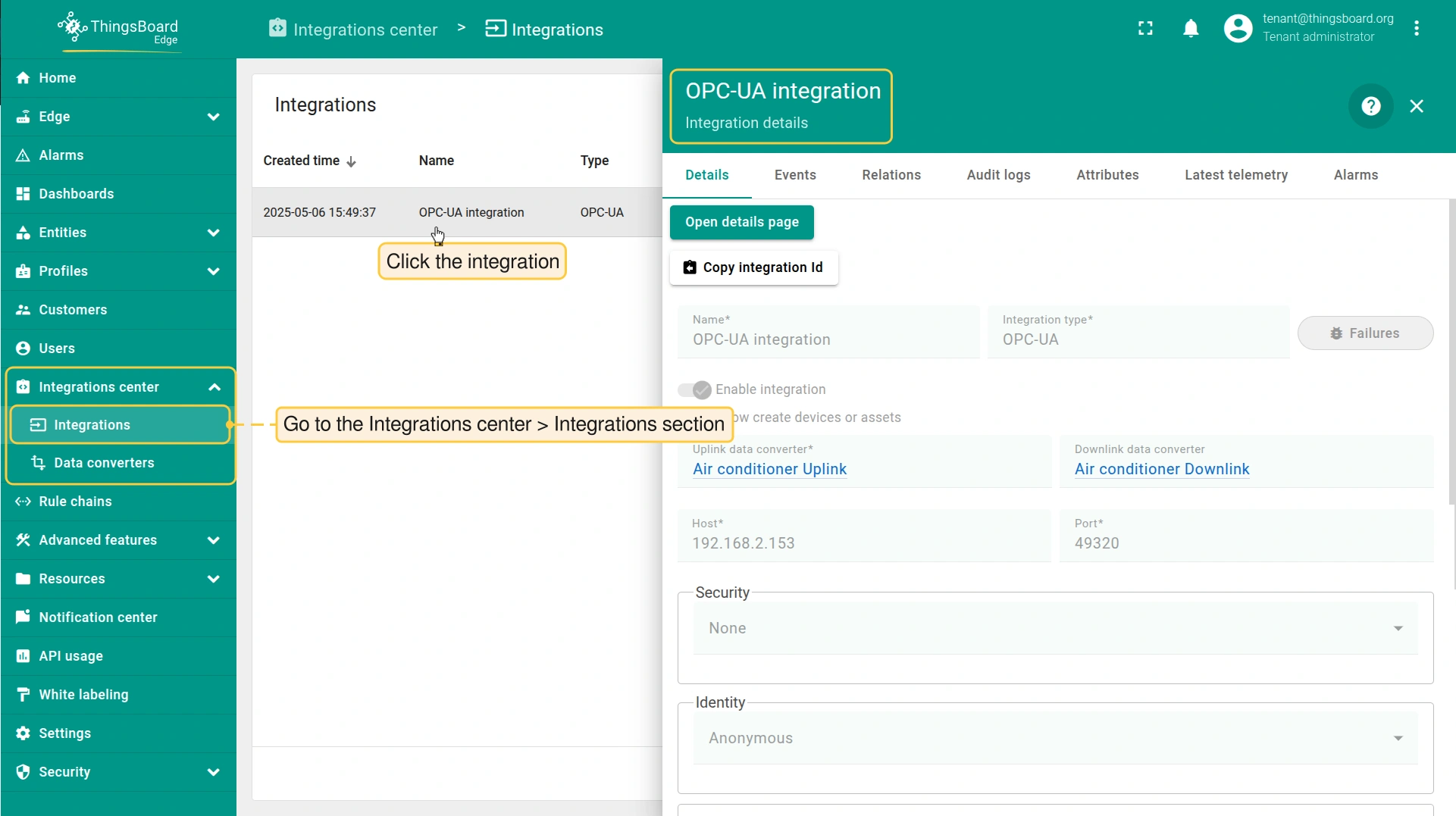 You'll need these details to set up the OPC-UA integration in ThingsBoard.