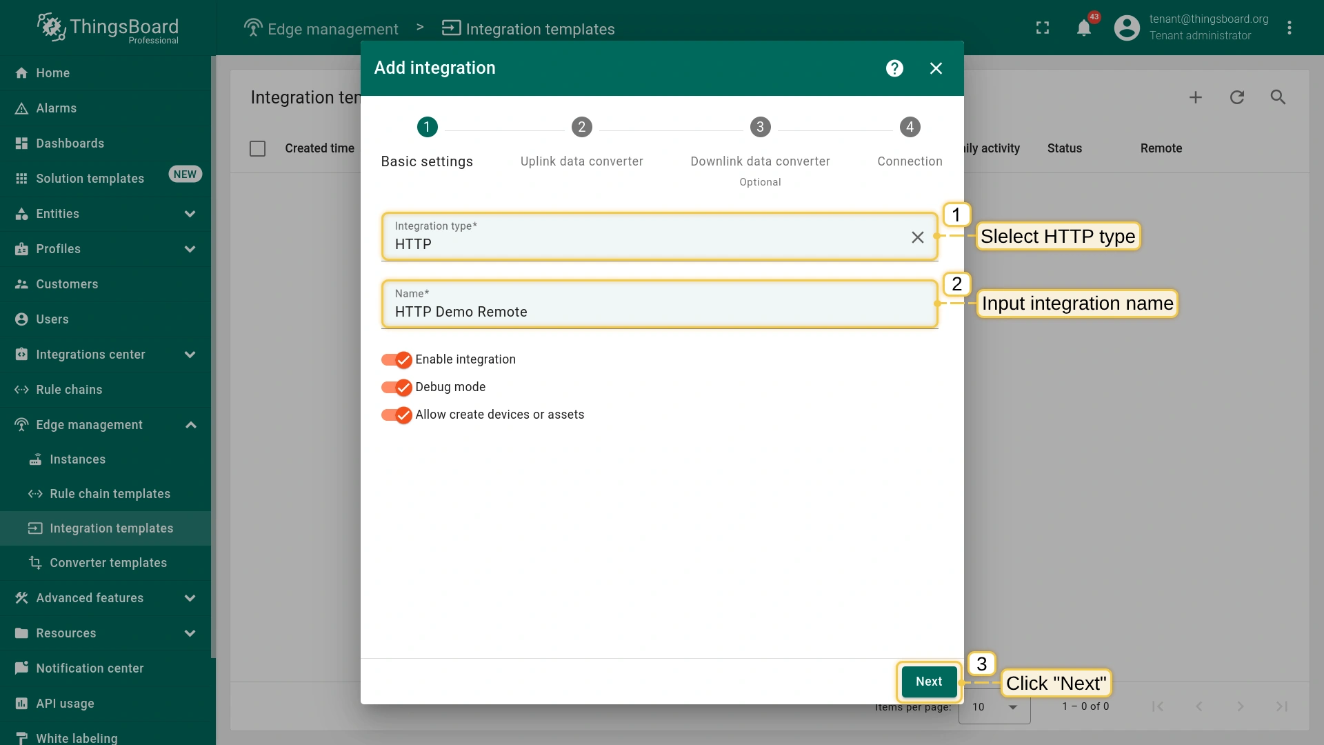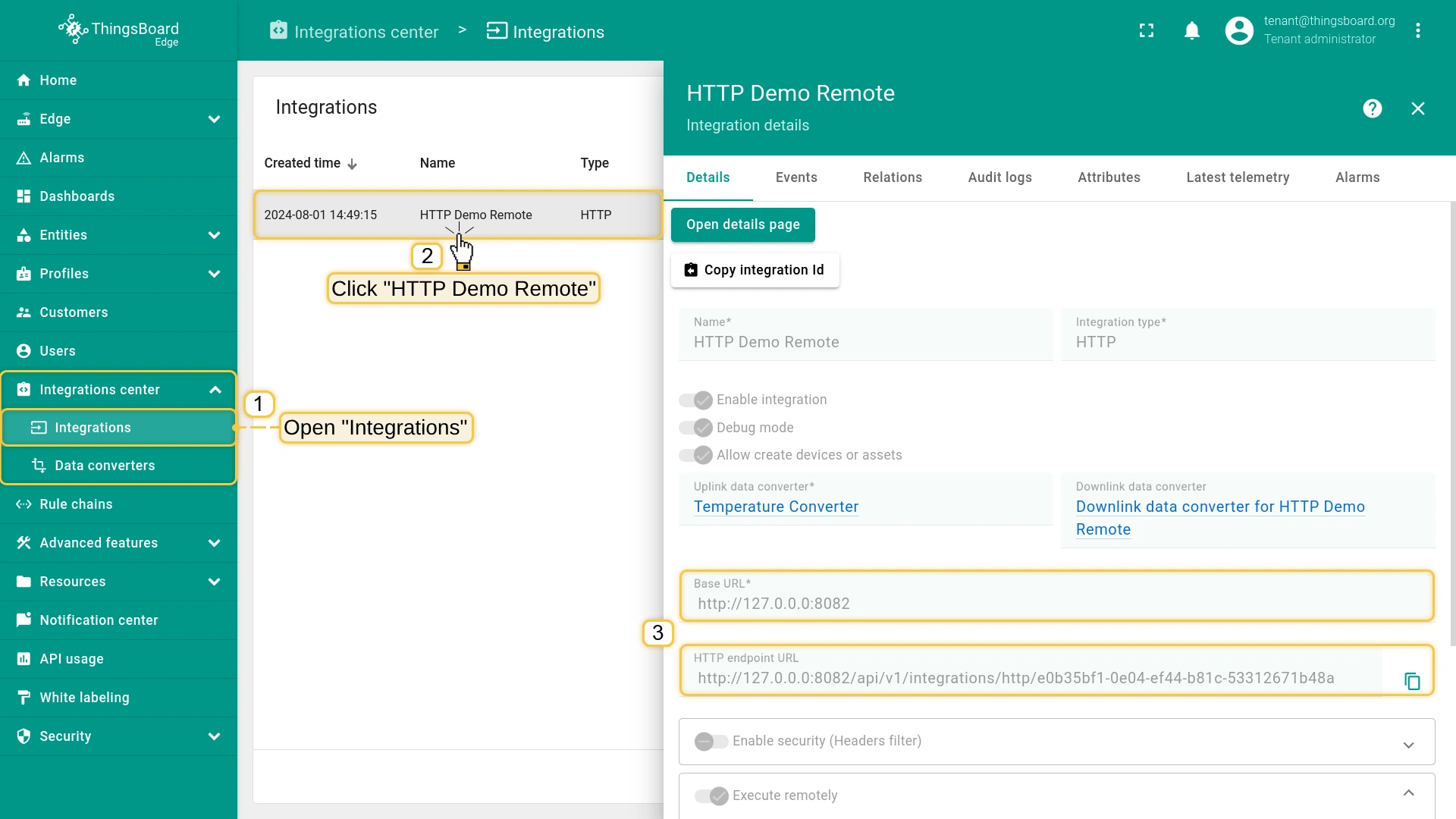 We’ll demonstrate how to set up a remote HTTP integration to push data to ThingsBoard Edge.