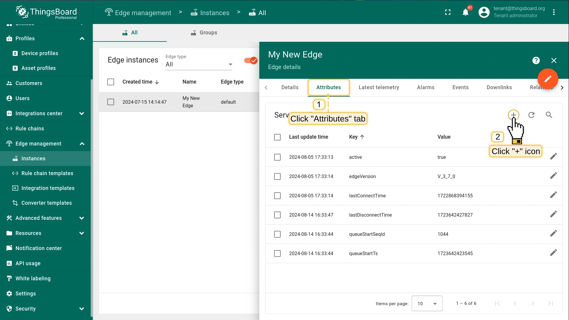 A running ThingsBoard Edge instance, already connected to the Server, with access as a Tenant administrator.