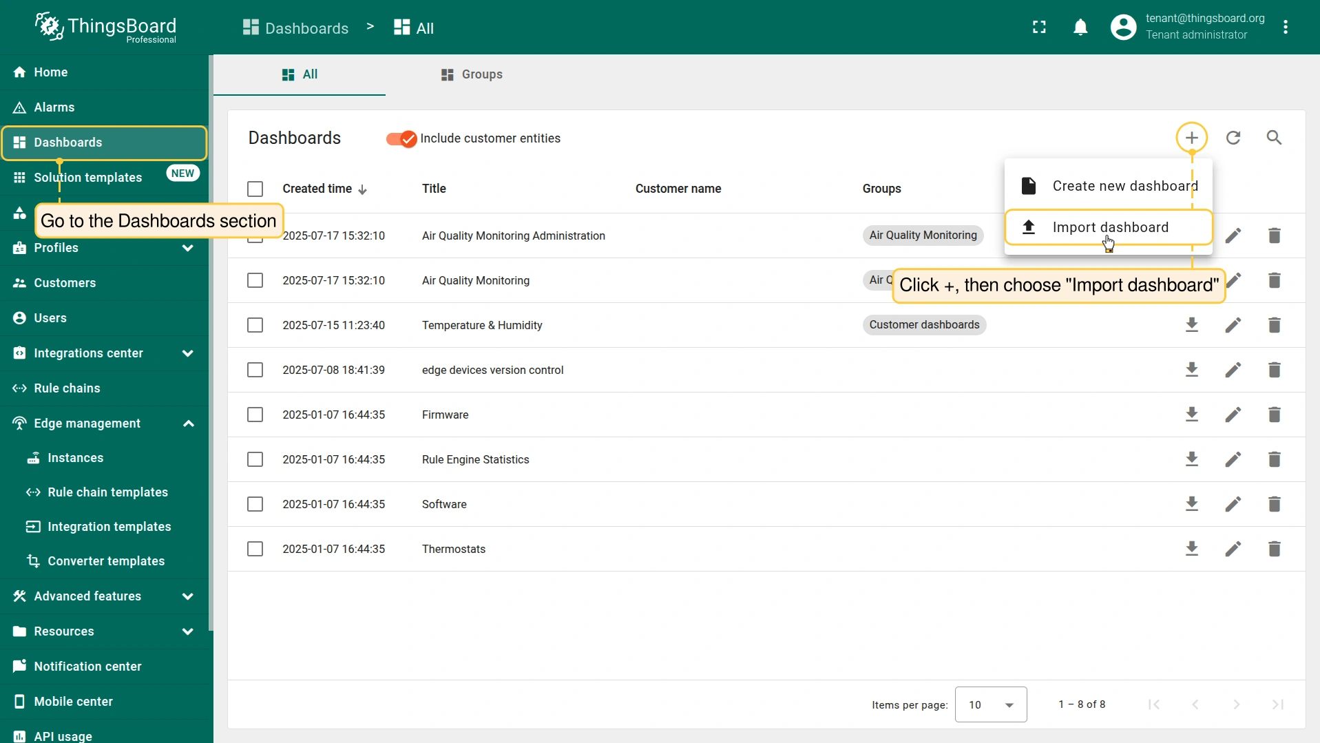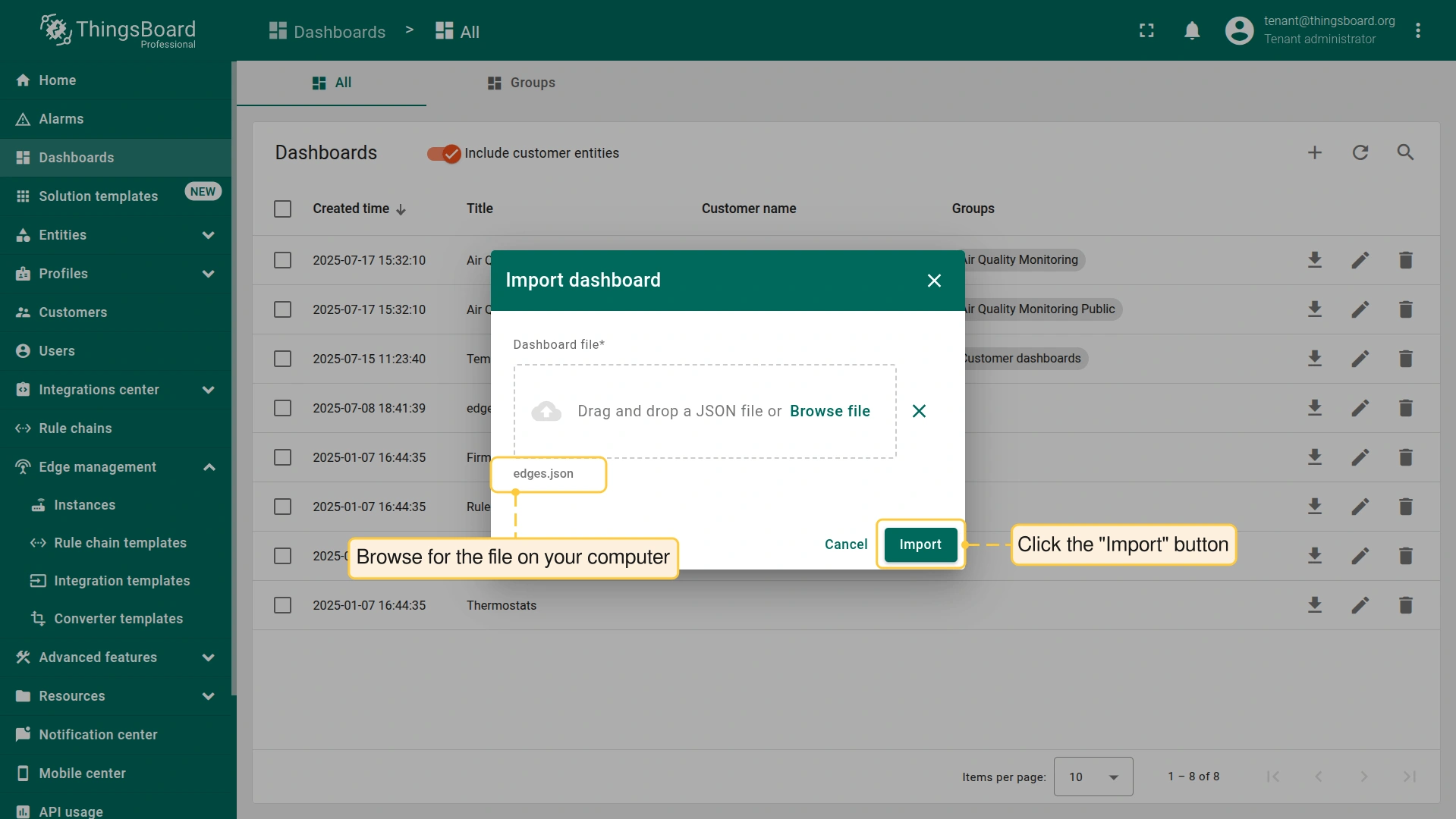 - 下载预配置的 Edge仪表板。