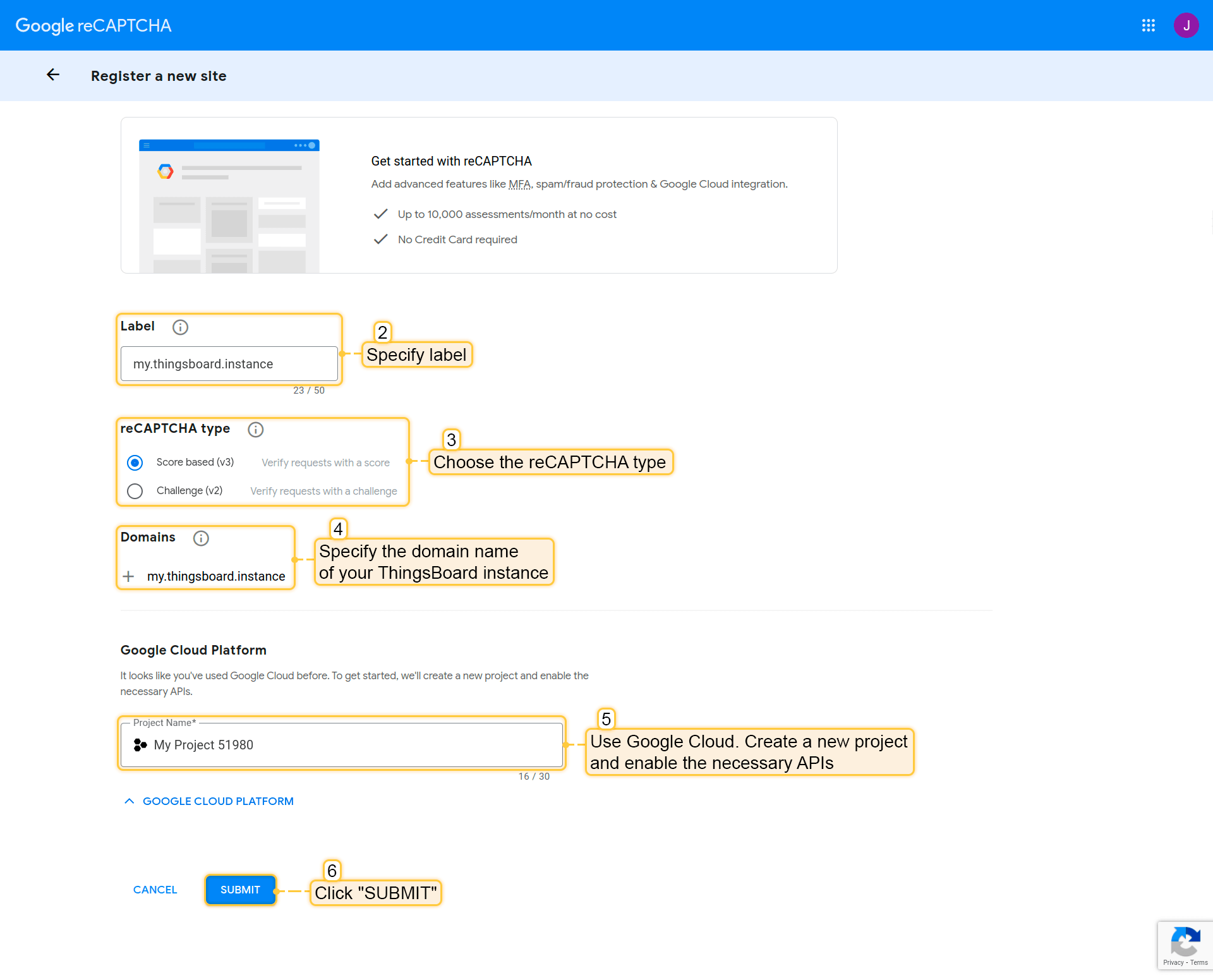要生成Captcha,请前往Google reCAPTCHA管理控制台: