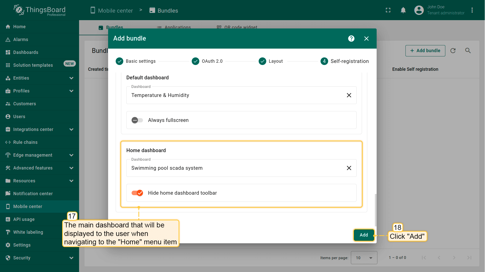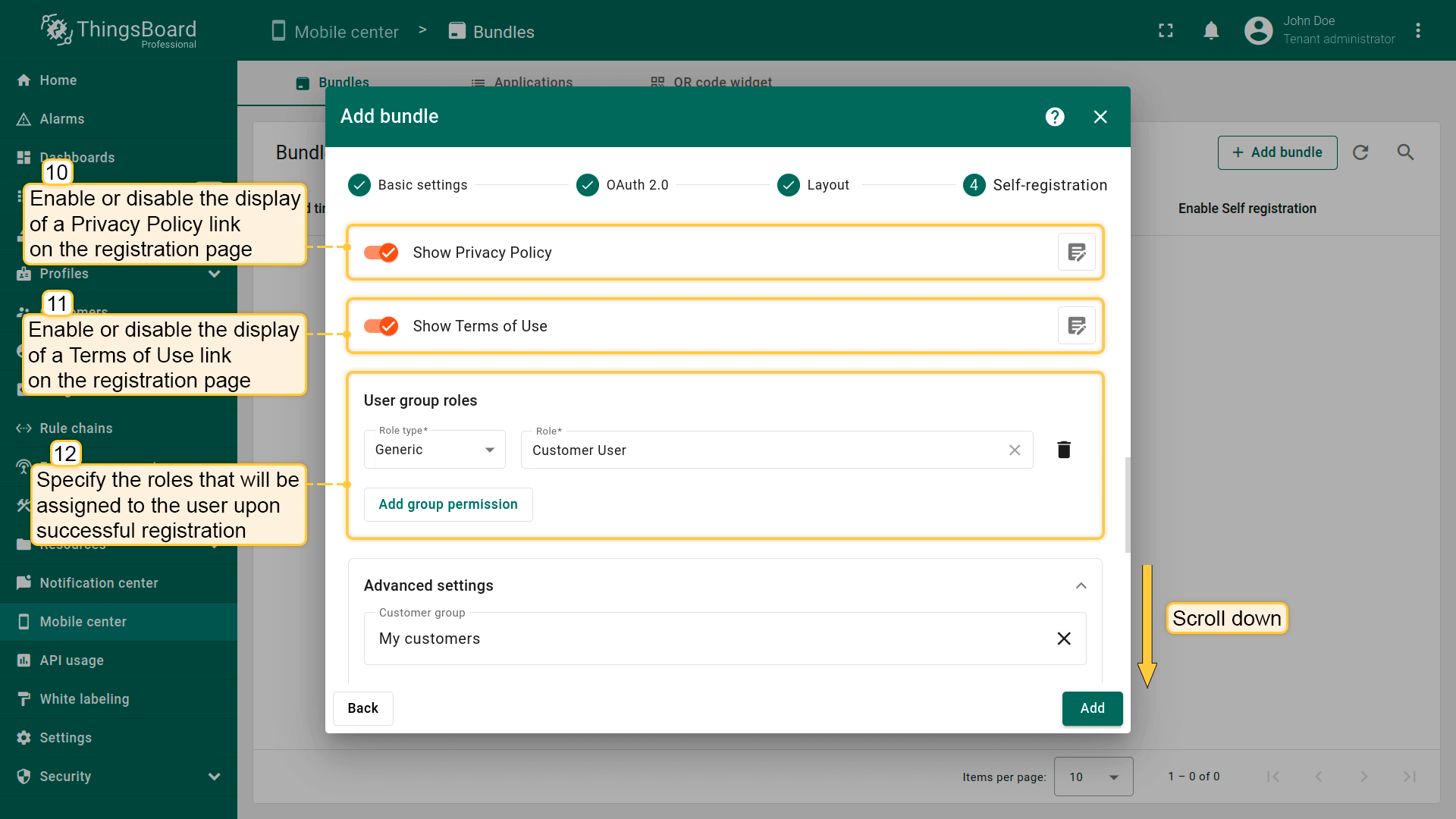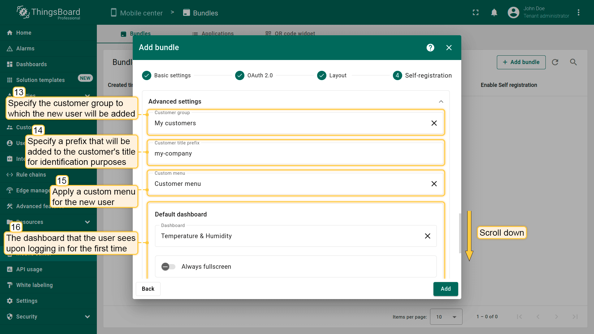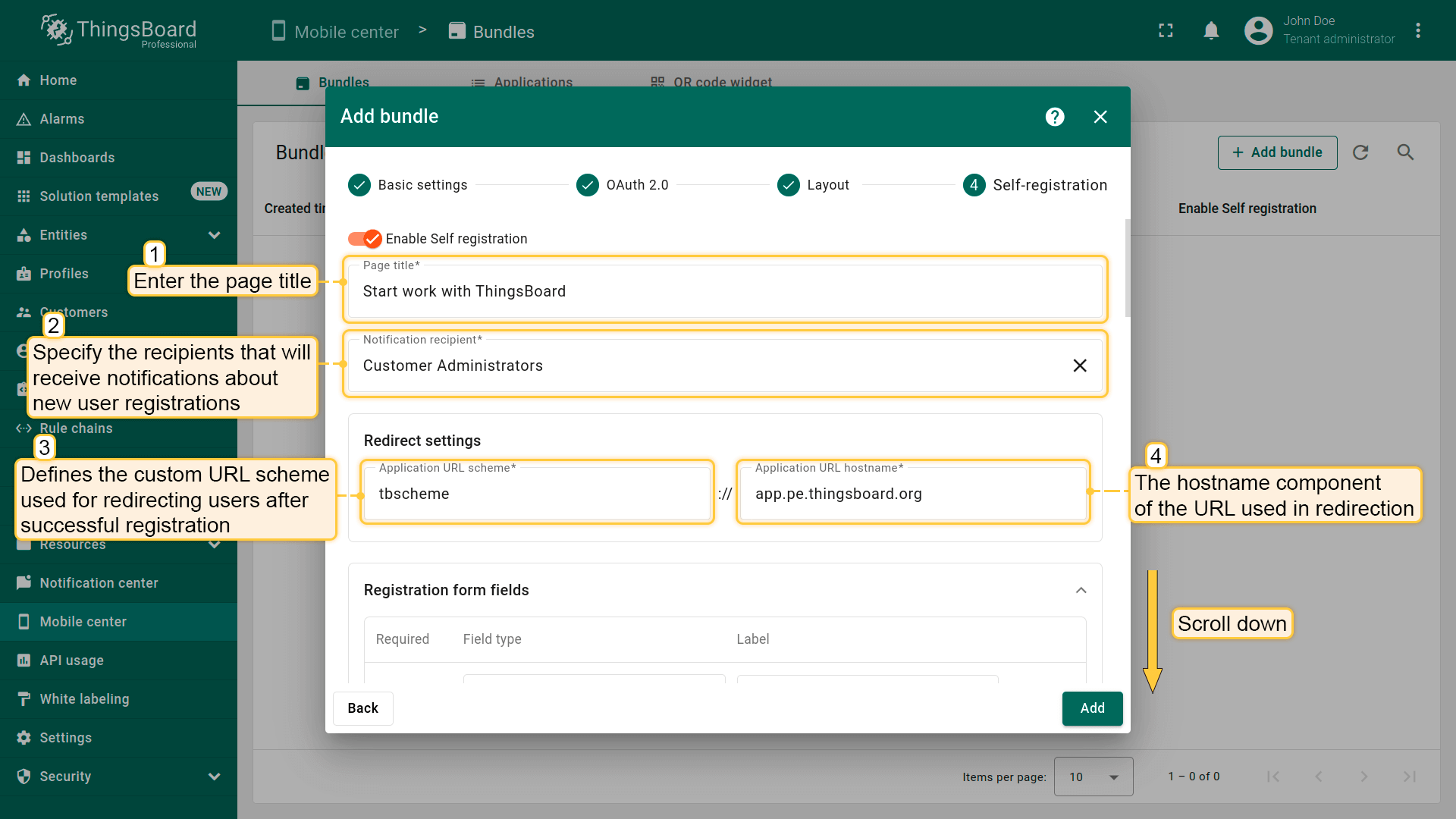 自助注册功能允许租户为其客户配置注册页面,让用户能够轻松注册,并基于预定义权限登录ThingsBoard。