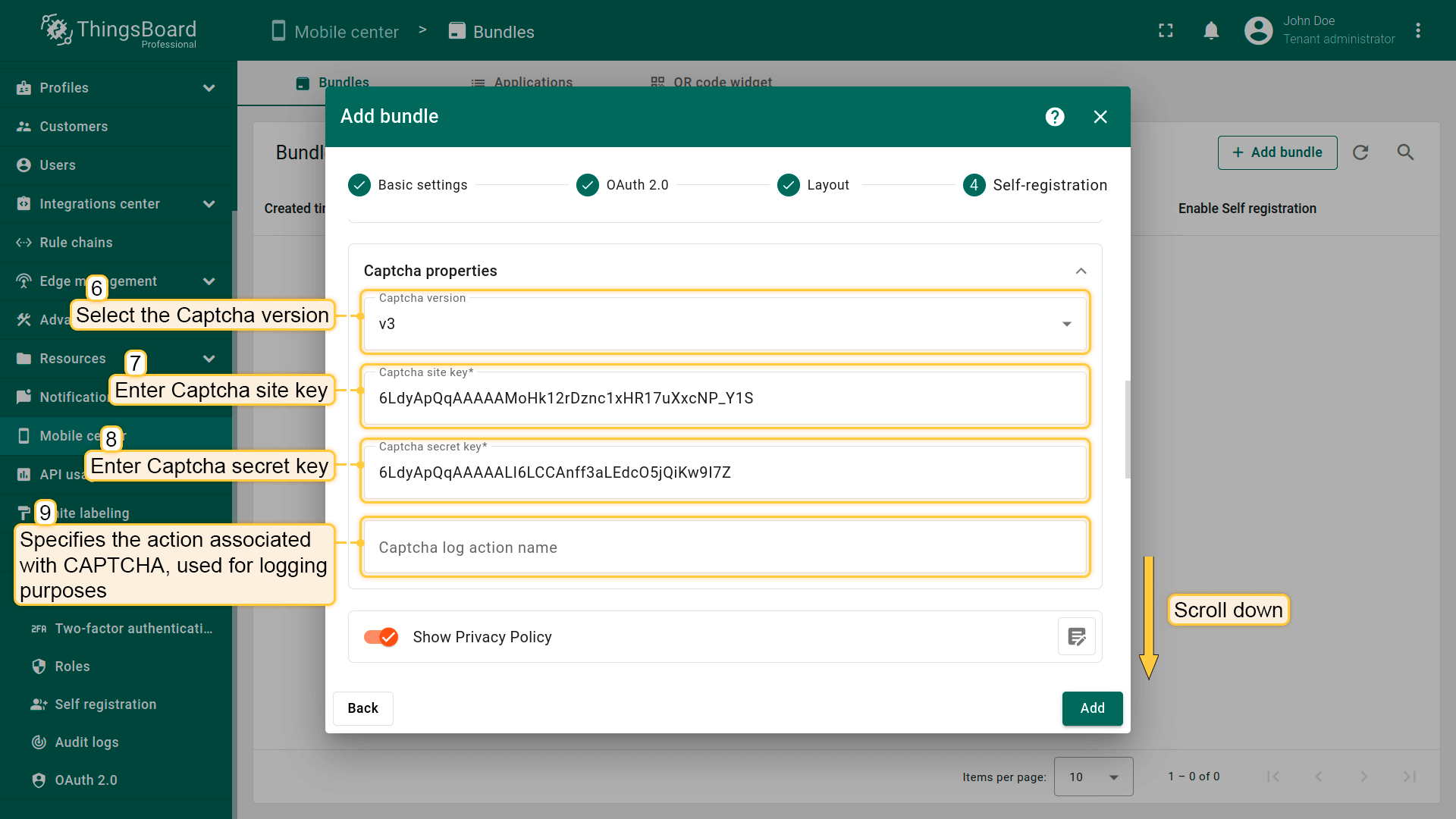 - 指定Captcha secret key:用于在服务器上验证CAPTCHA响应的私钥。