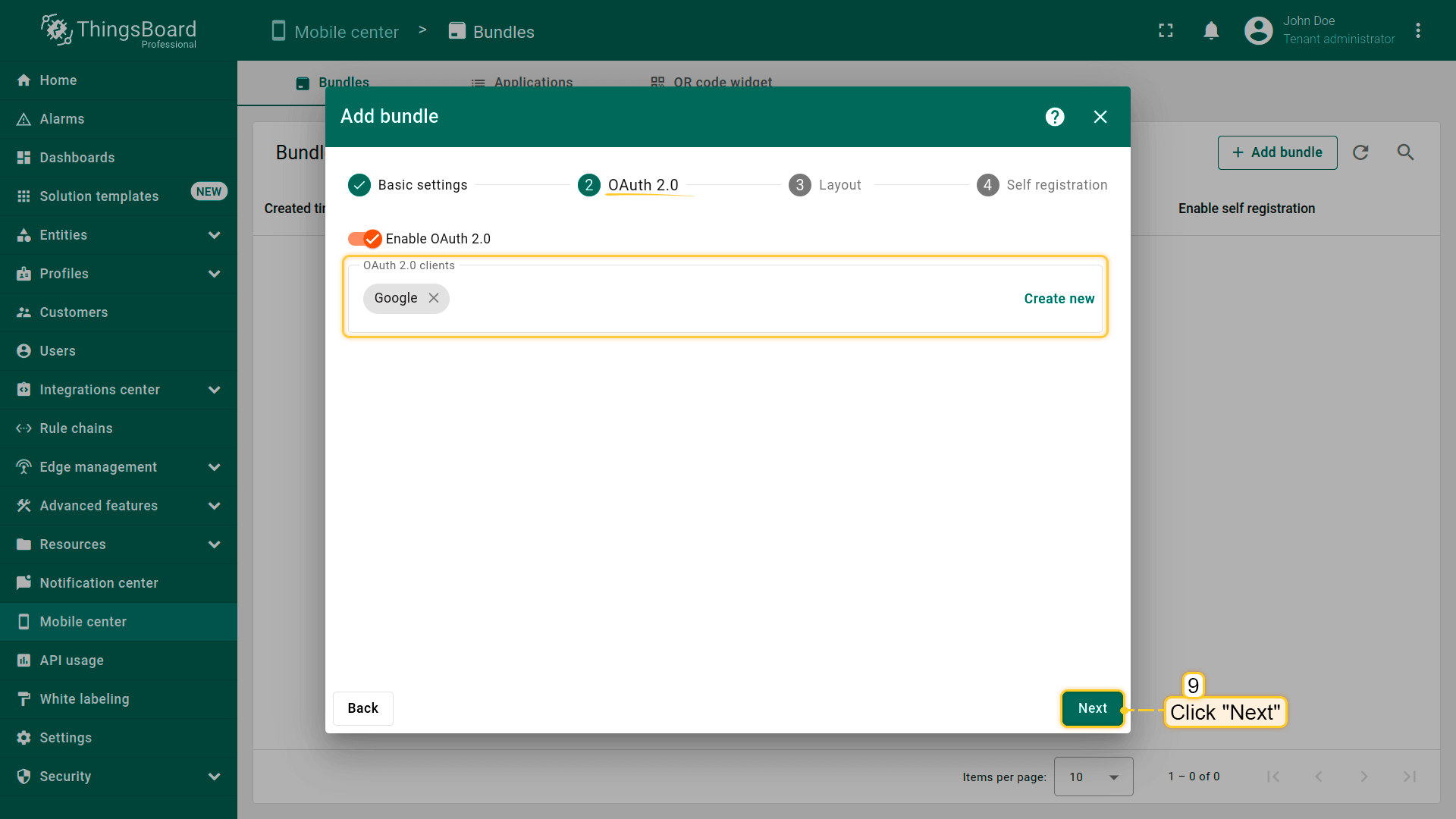 OAuth 2.0提供方——如有需要,可为ThingsBoard PE移动应用配置外部OAuth。完成后点击”下一步“。