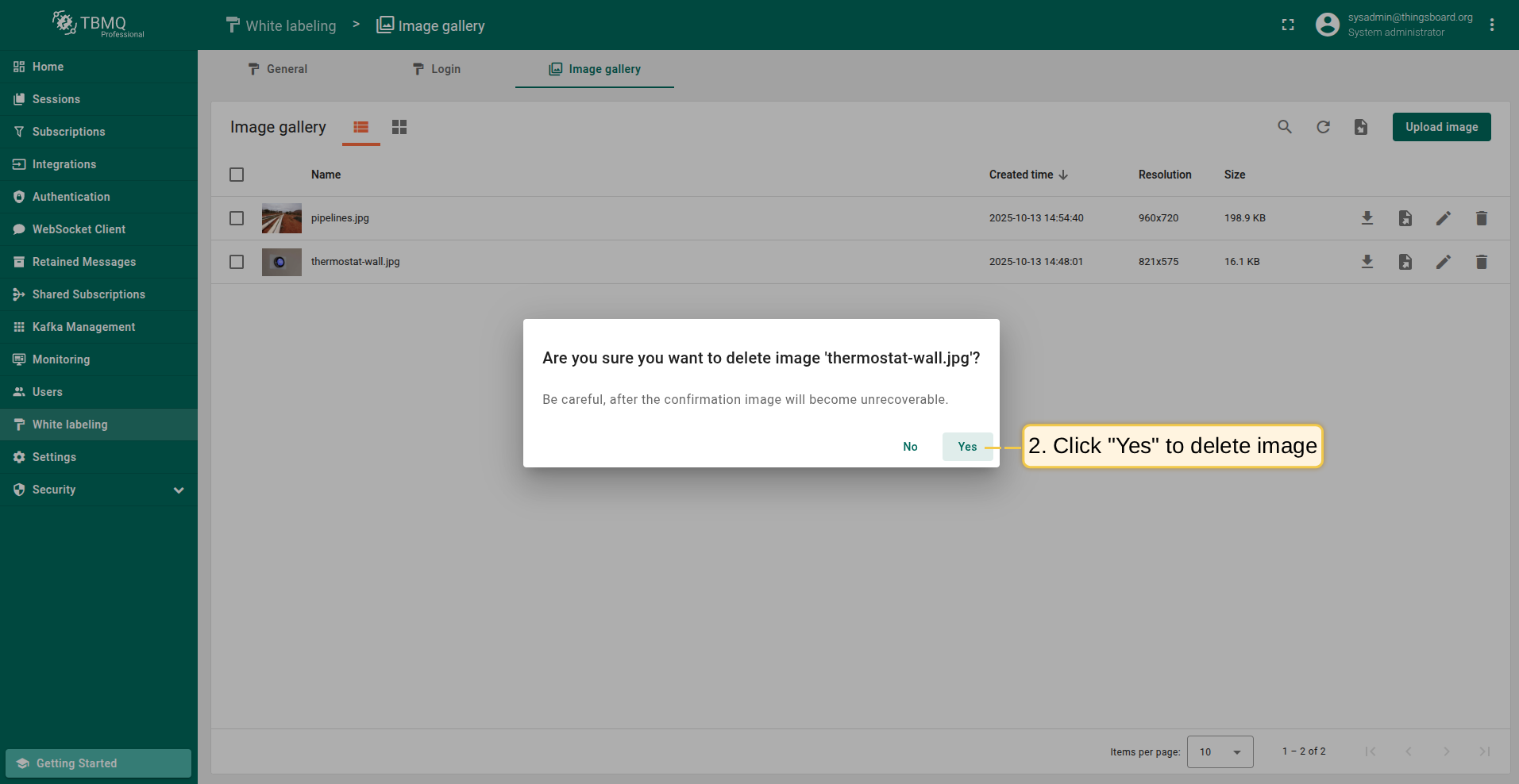 Confirm deleting the image in the dialog box