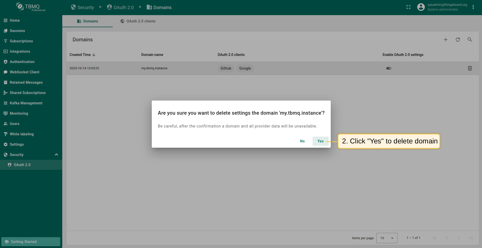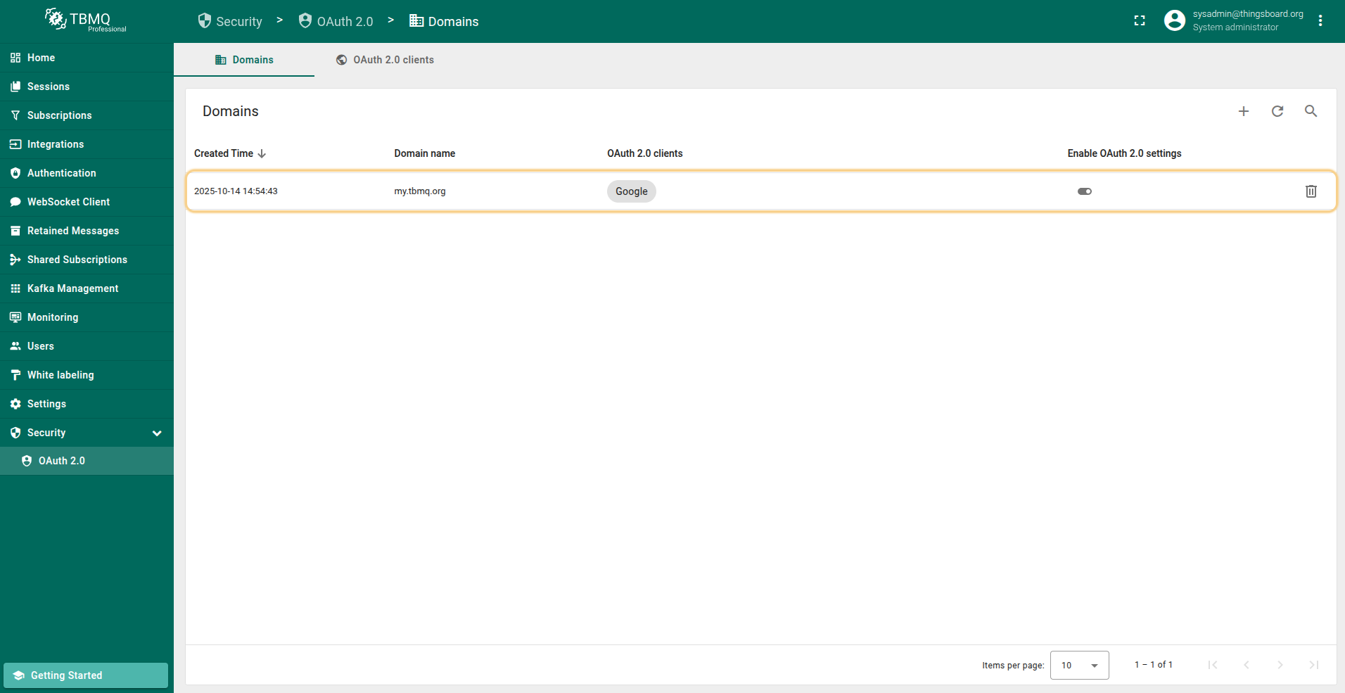 邮箱属性键:外部OAuth 2.0用户信息中用于TBMQ用户邮箱的属性键。