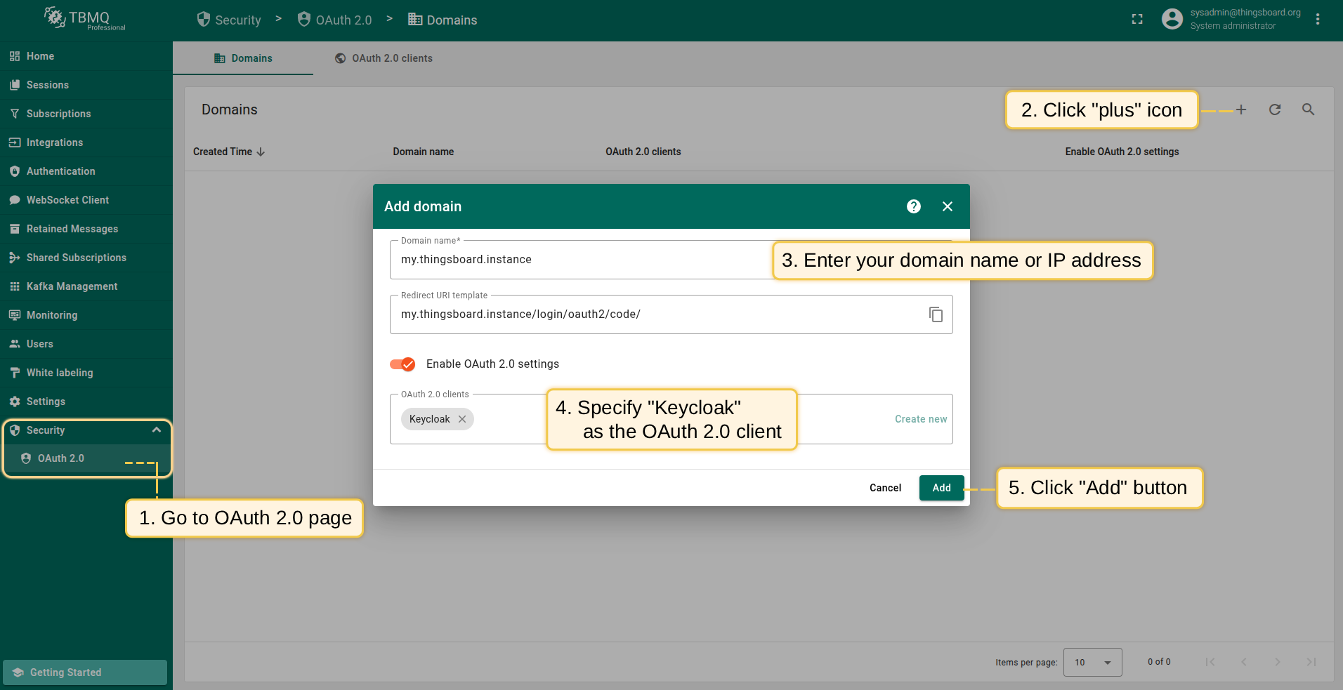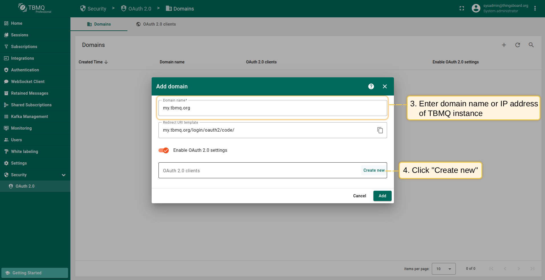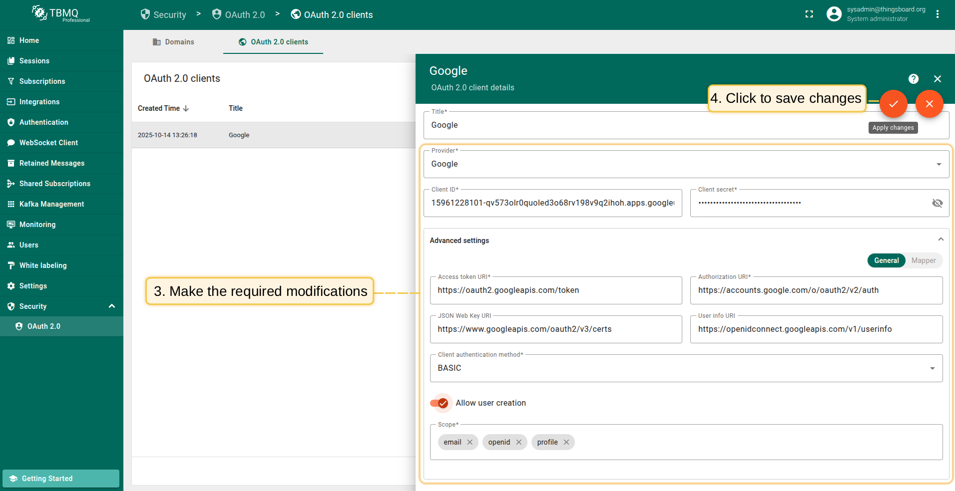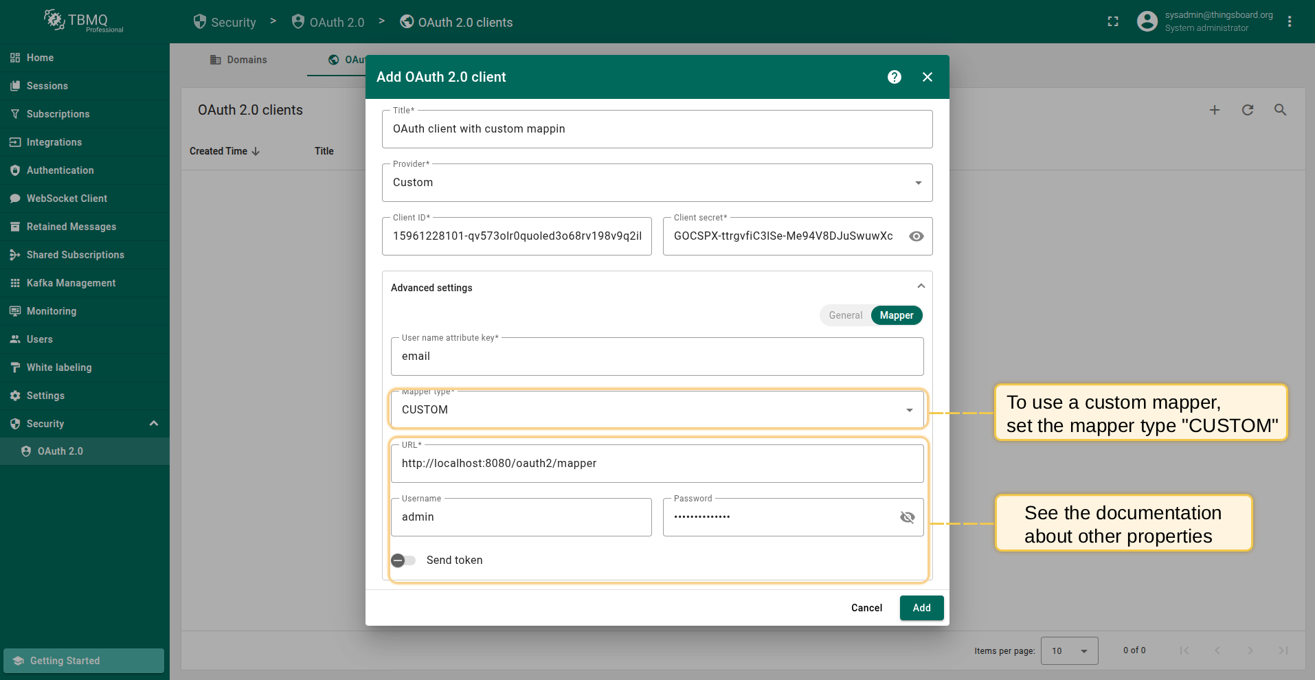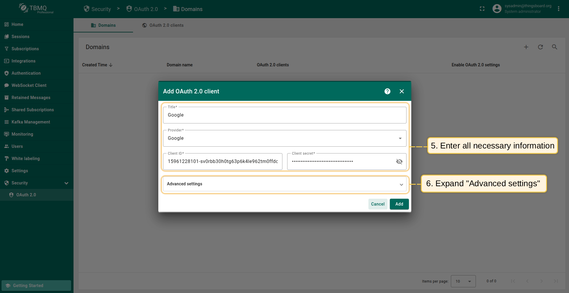 在TBMQ中添加新OAuth 2.0客户端,按以下步骤:
