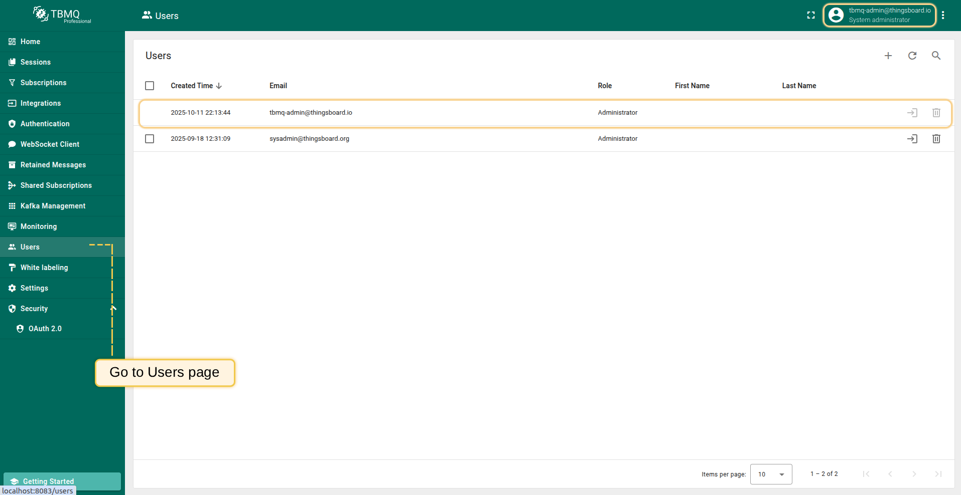 - 登录您的TBMQ实例;