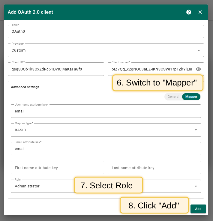 添加OAuth 2.0客户端