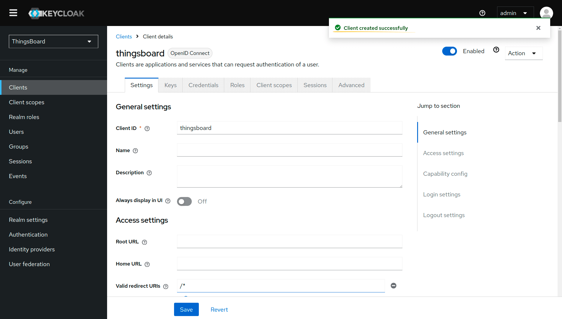 - 输入thingsboard作为客户端ID。将客户端类型保留为OpenID Connect。点击”Next”;