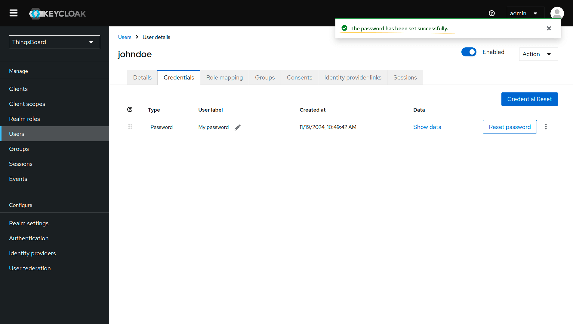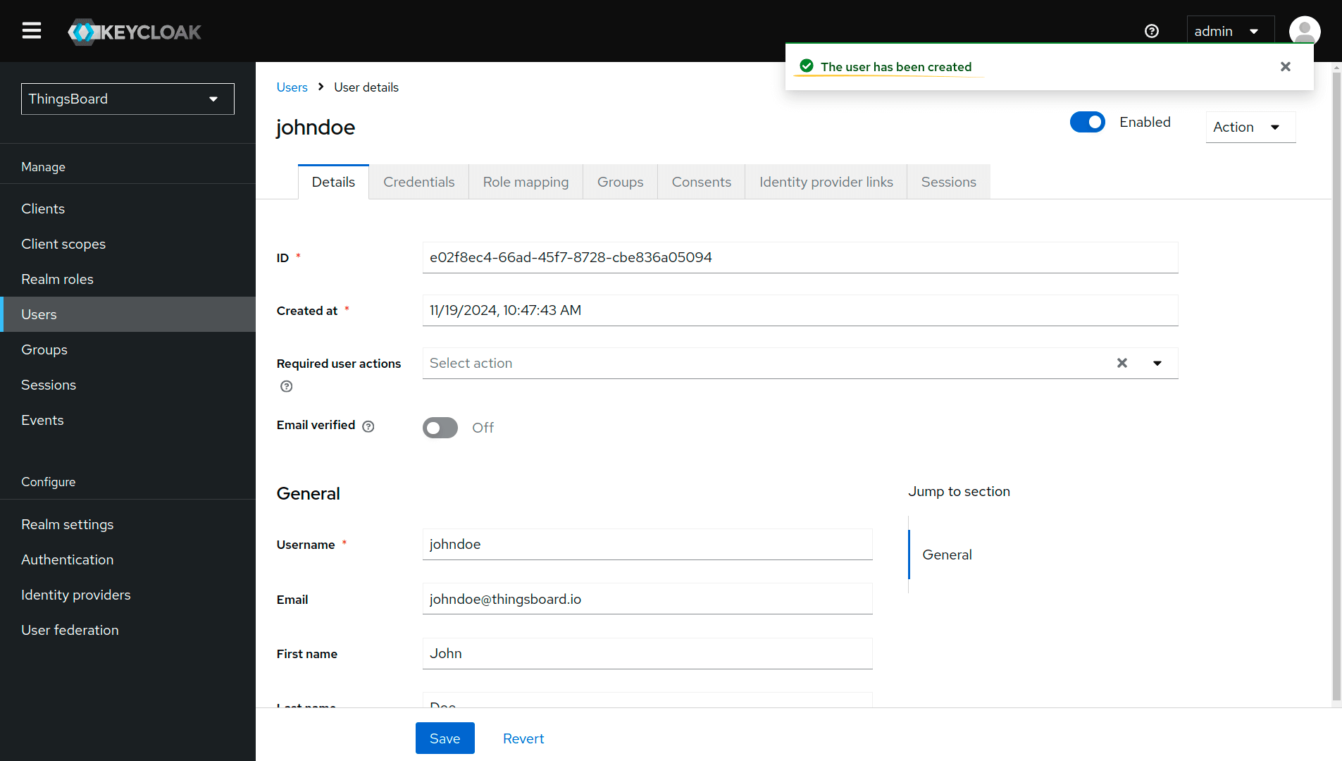 现在添加一个用户。只有添加的用户才能通过Keycloak进行身份验证。