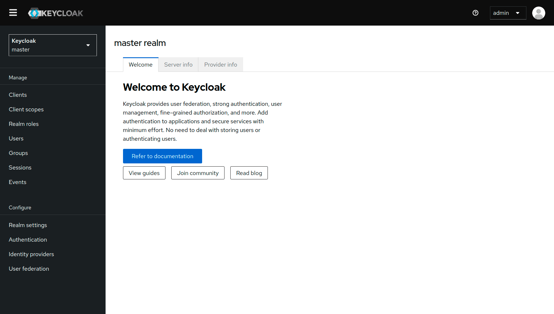 - 使用admin作为用户名和密码登录Keycloak管理控制台。