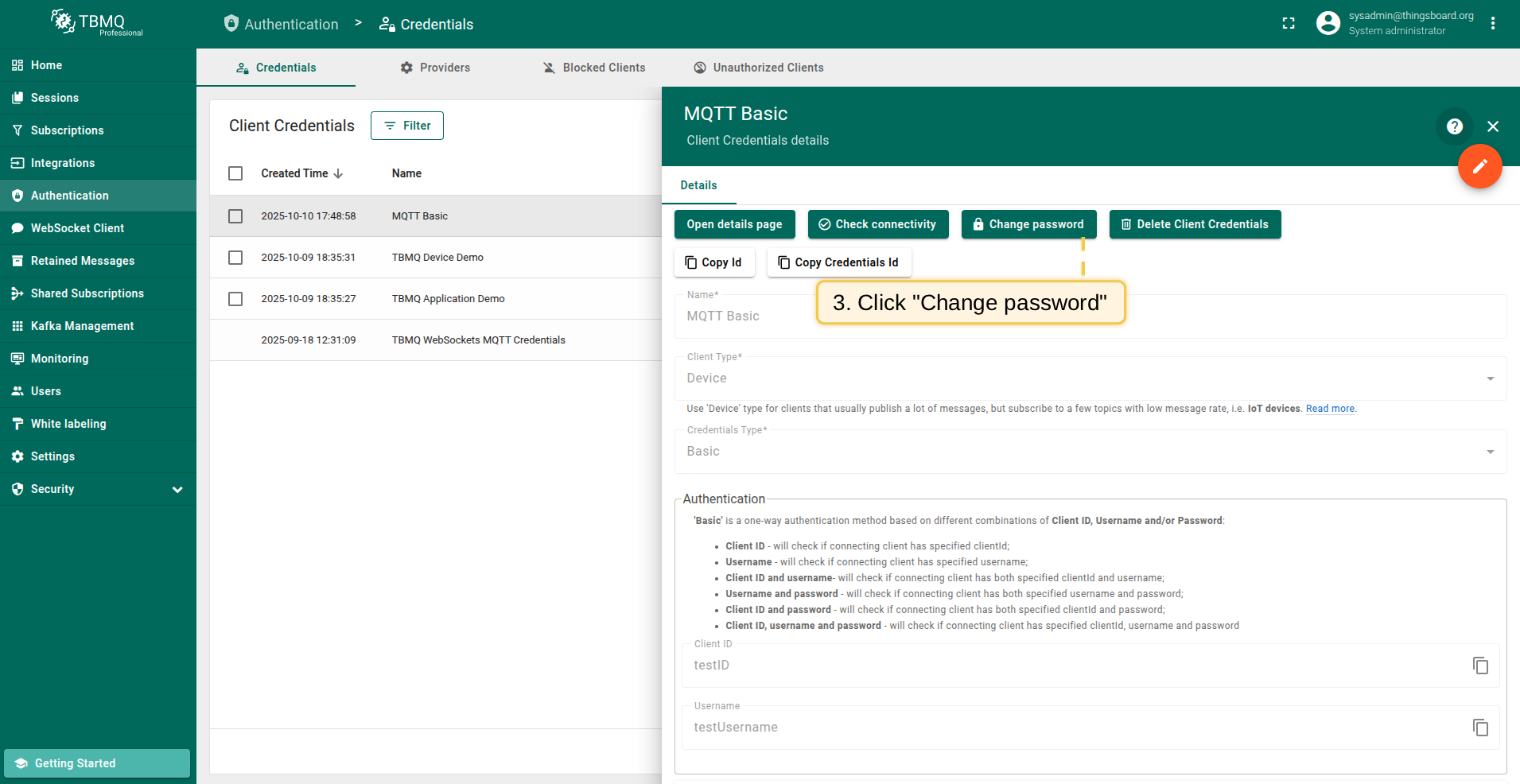 Broker管理员可修改MQTT Basic客户端凭据的密码。操作步骤: