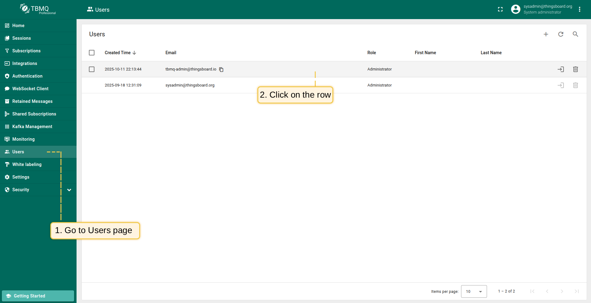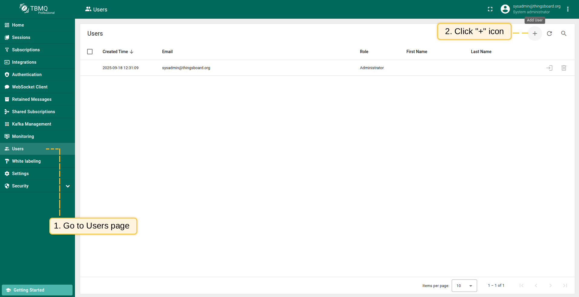 TBMQ PE包含两个预定义角色:Administrator 和 Viewer。有关基于角色的访问控制说明,请参阅 RBAC。