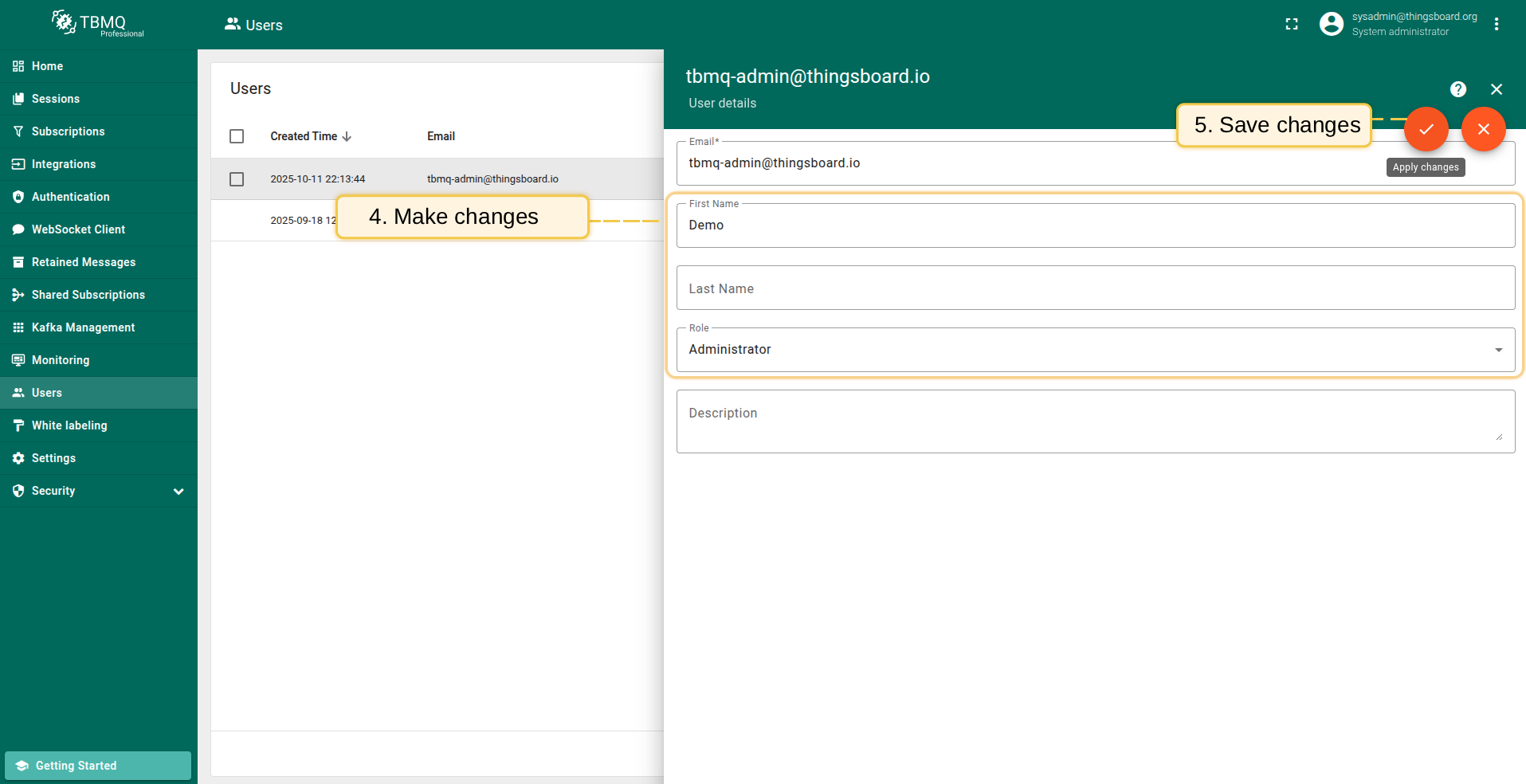 用户管理可通过TBMQ Web UI或 REST API 进行。