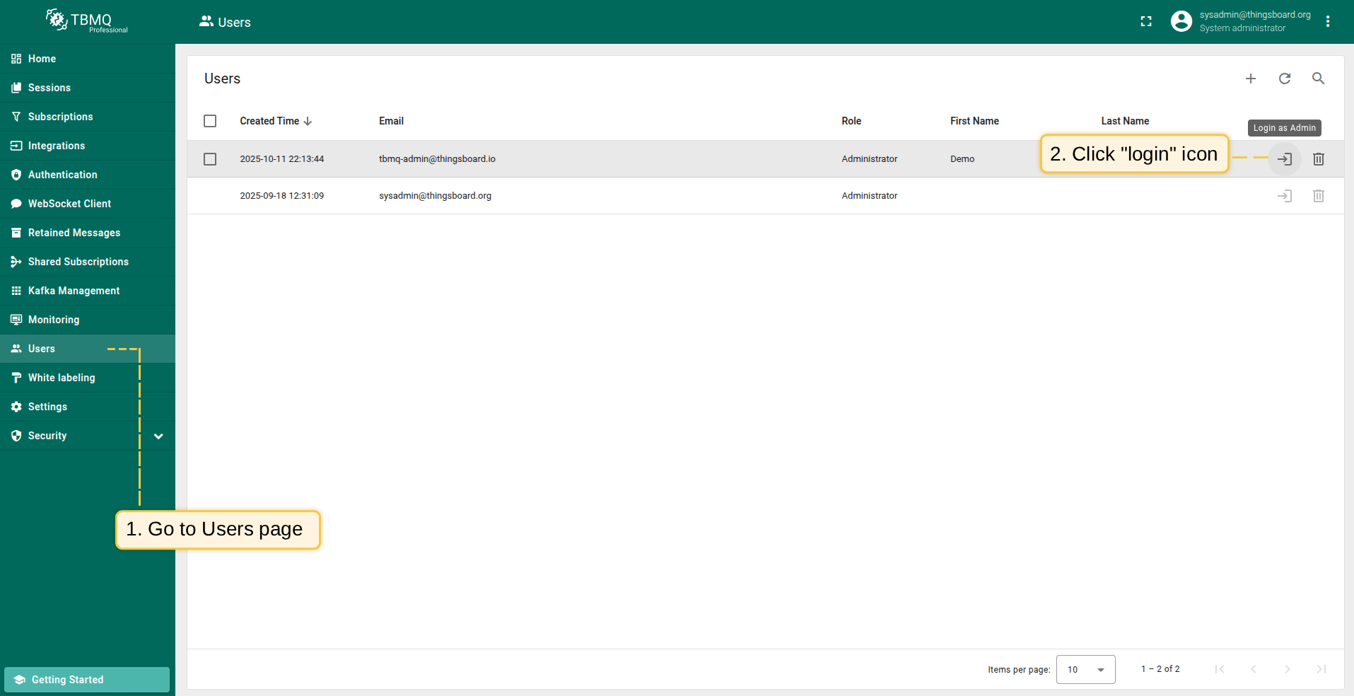 TBMQ允许管理员用户在不使用他人凭据或手动认证的情况下,安全地以其他用户身份自动登录。