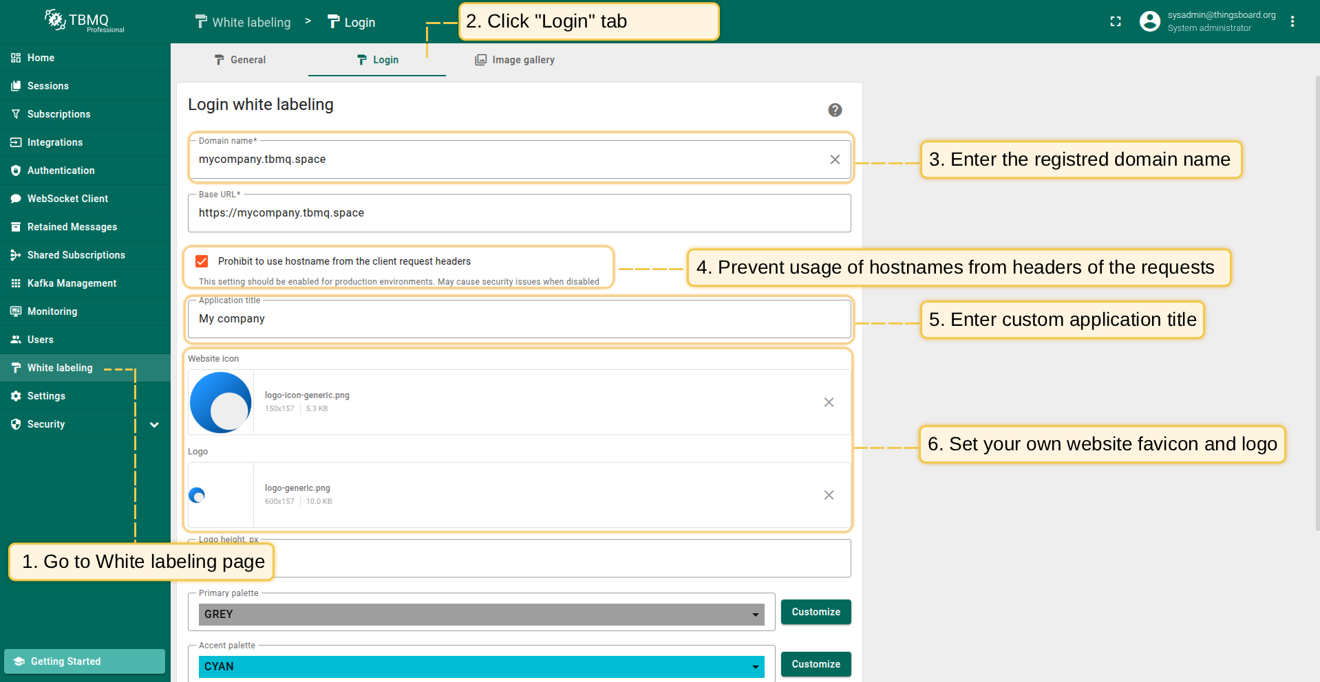 白标功能可让您根据品牌与偏好定制TBMQ实例,尤其适用于向客户提供IoT解决方案的企业。