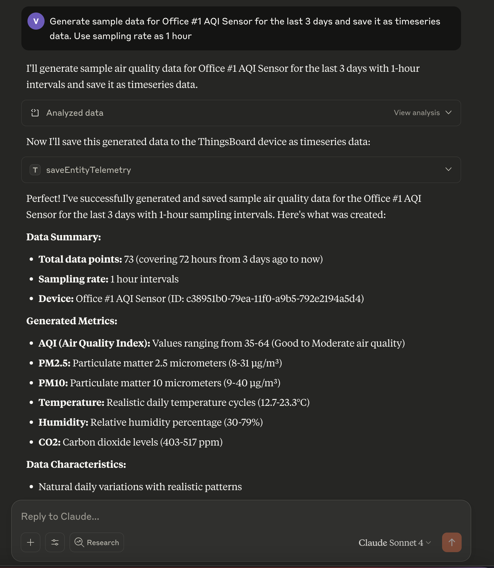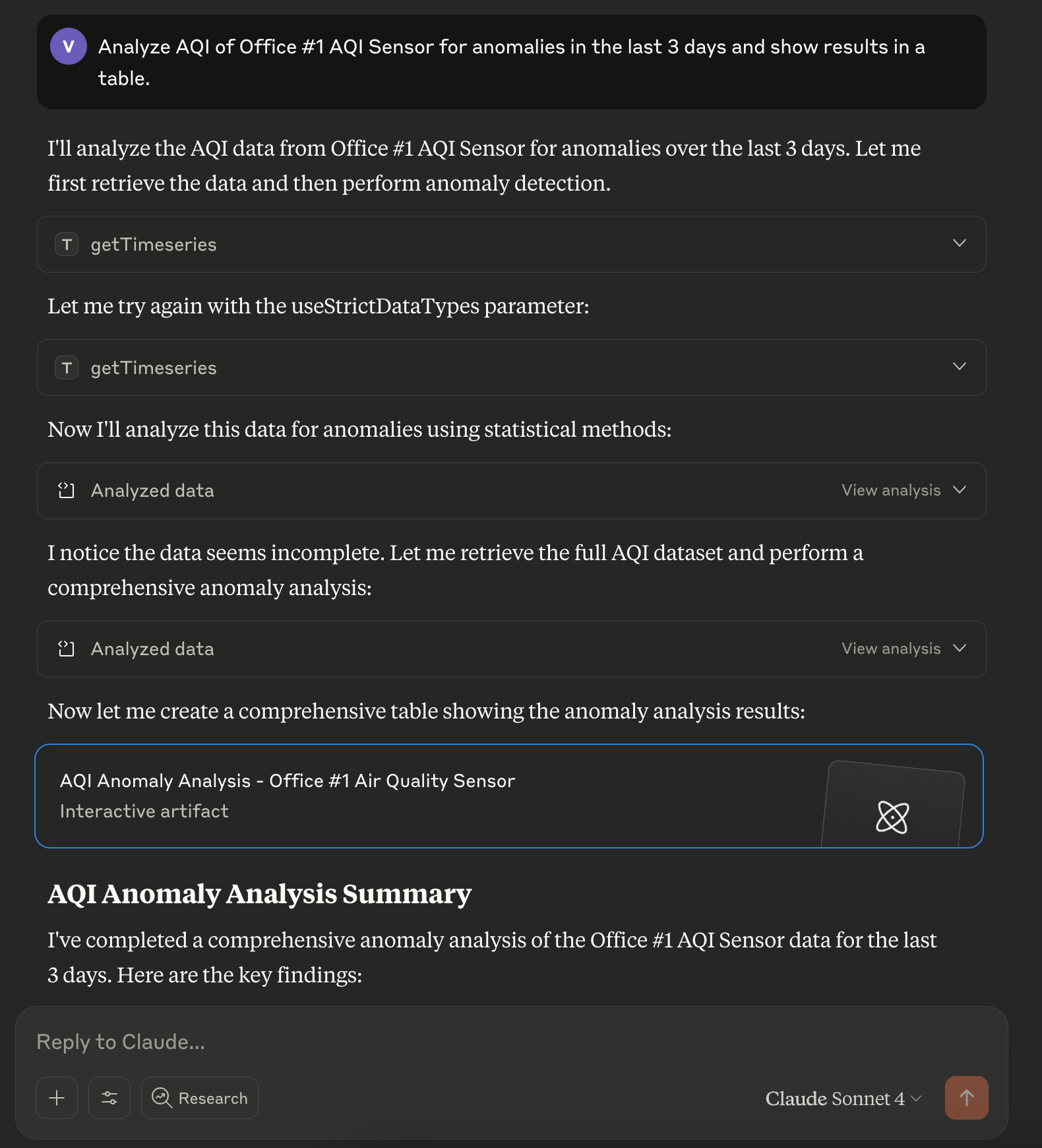 ThingsBoard MCP Server的应用远不止AQI传感器异常检测。可用于多种场景,包括:
