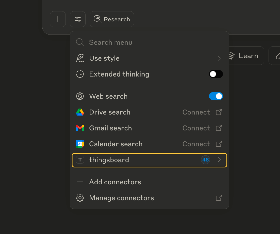 启动Claude Desktop后,您将看到可用的thingsboard工具: