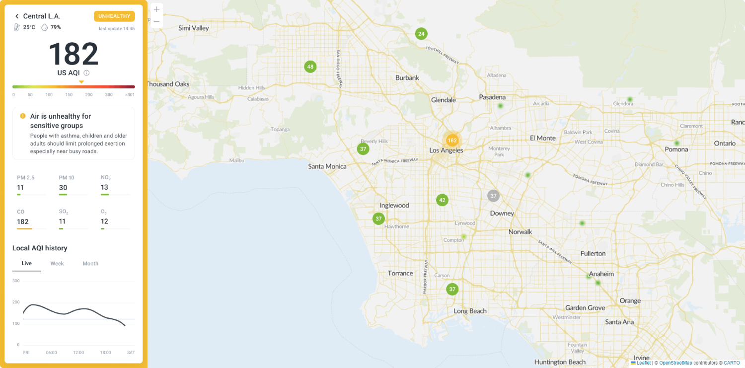 Public Air Quality Monitoring Dashboard具有多种状态:City stateSensor state