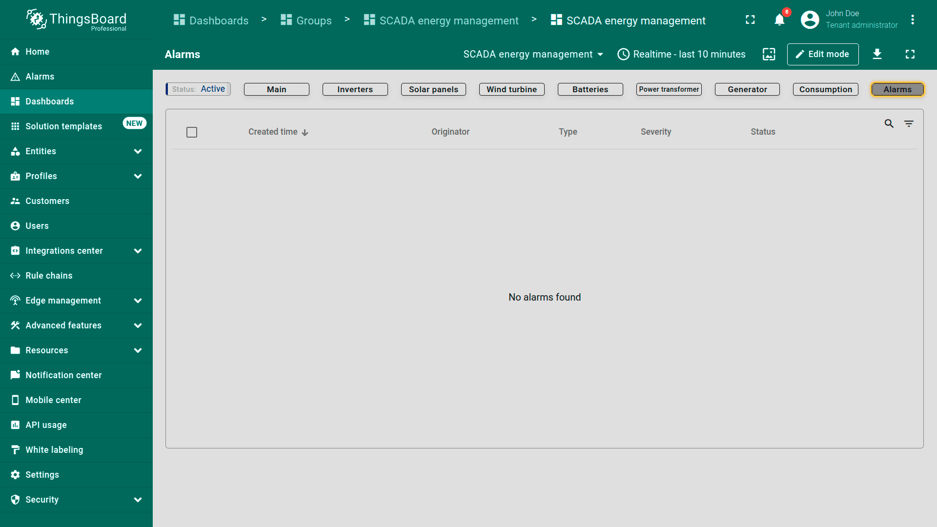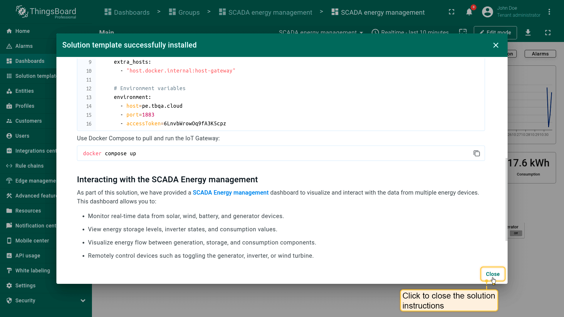 Go to the "Solution templates" page. Find "SCADA Energy management" and click "Install" to start the installation process.