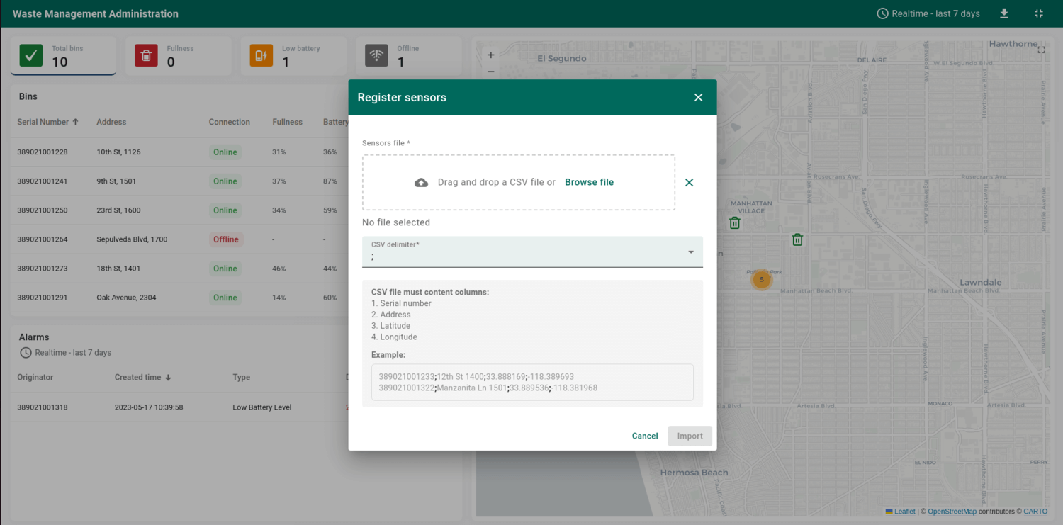 本解决方案中创建了Waste Management Administration仪表板,展示来自垃圾传感器的数据。
