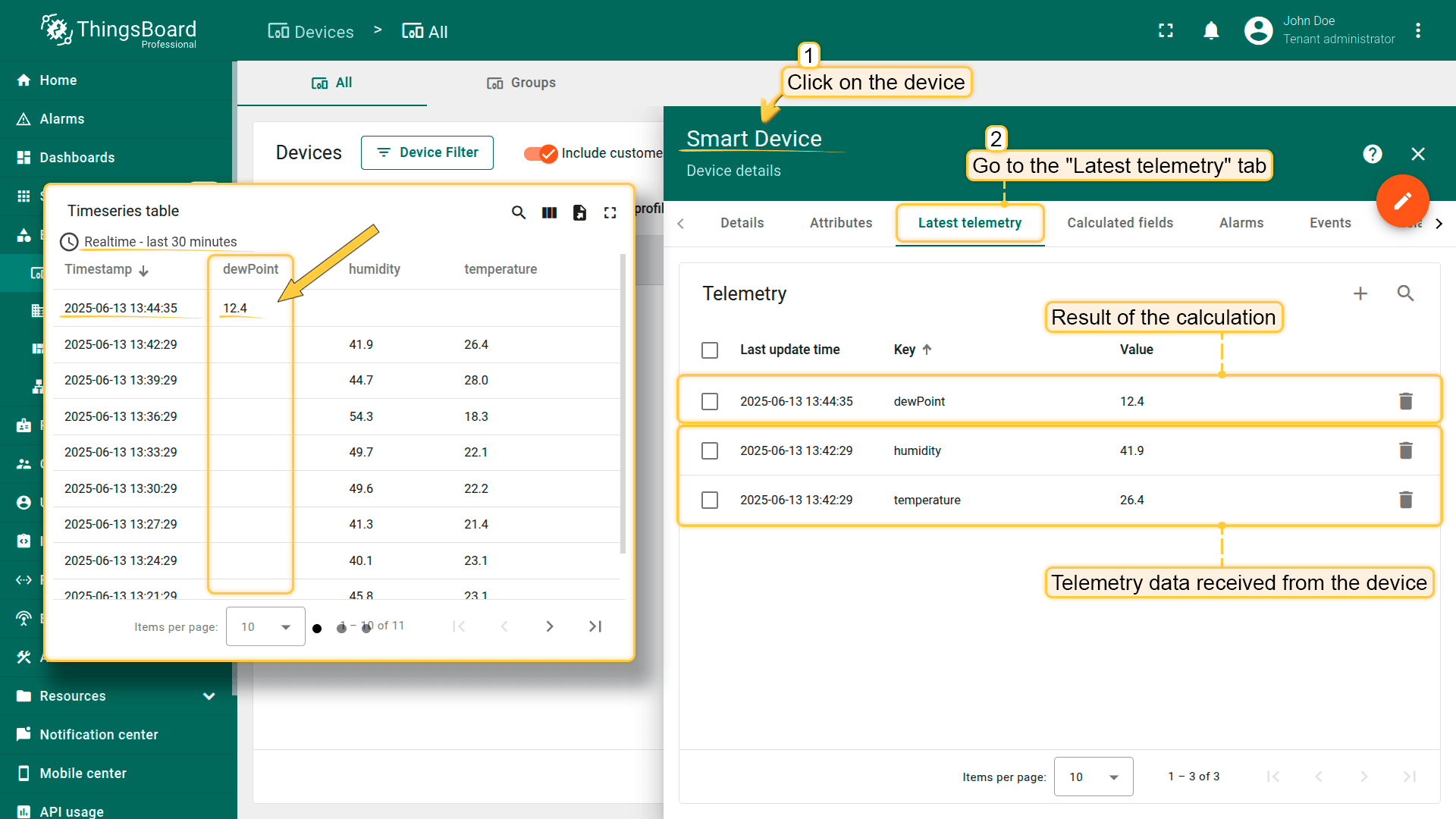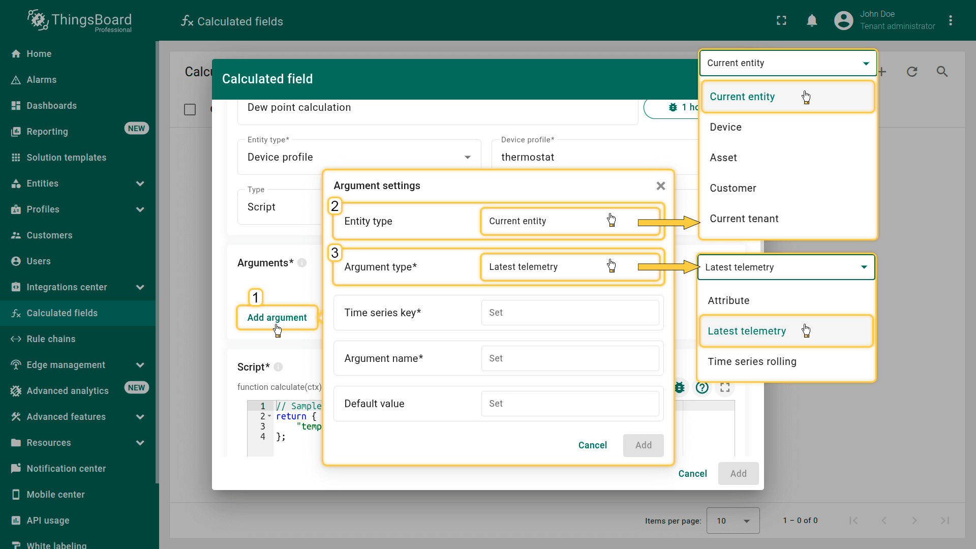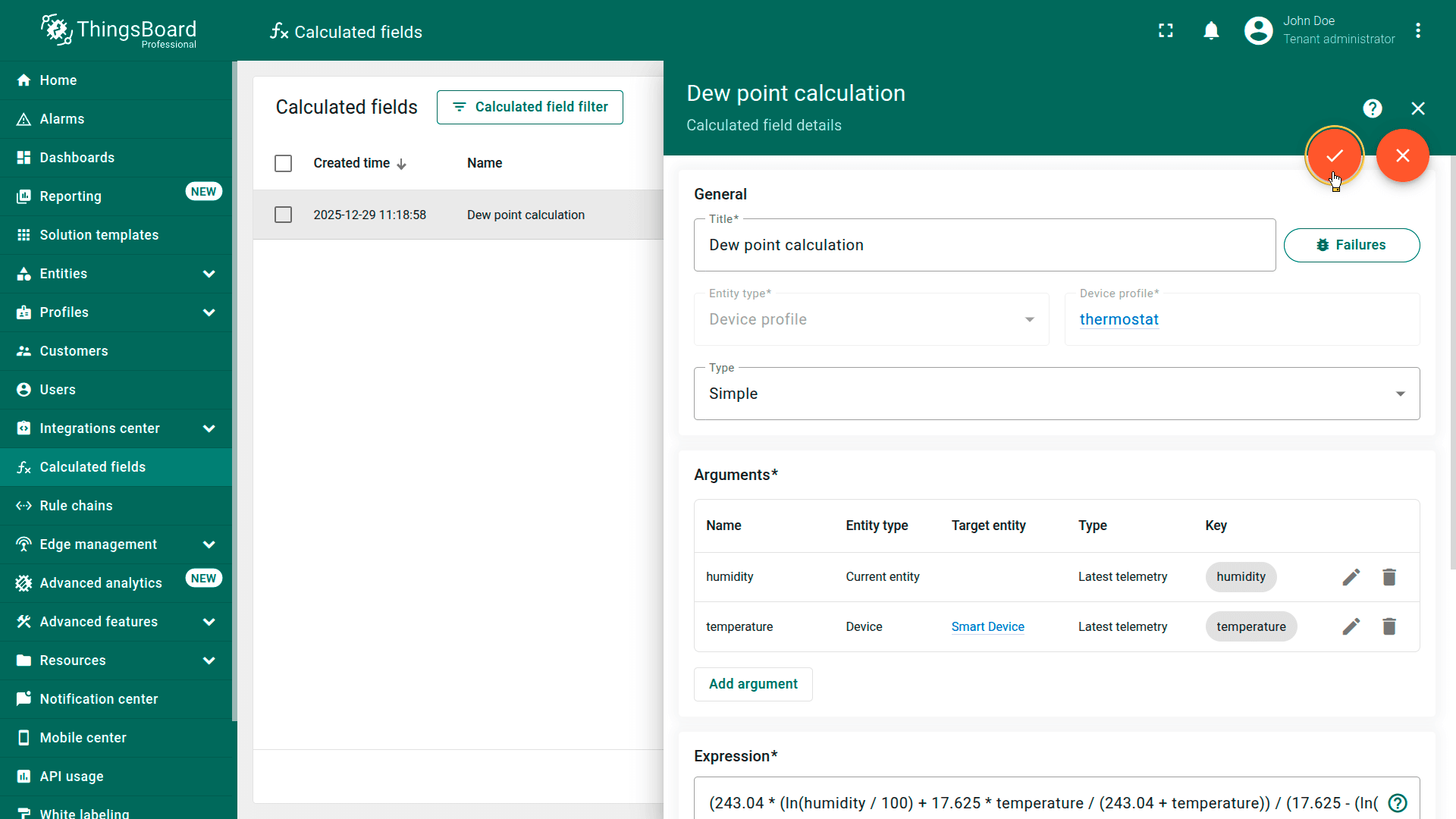 ThingsBoard提供内置工具,用于实时验证和排查字段计算问题。