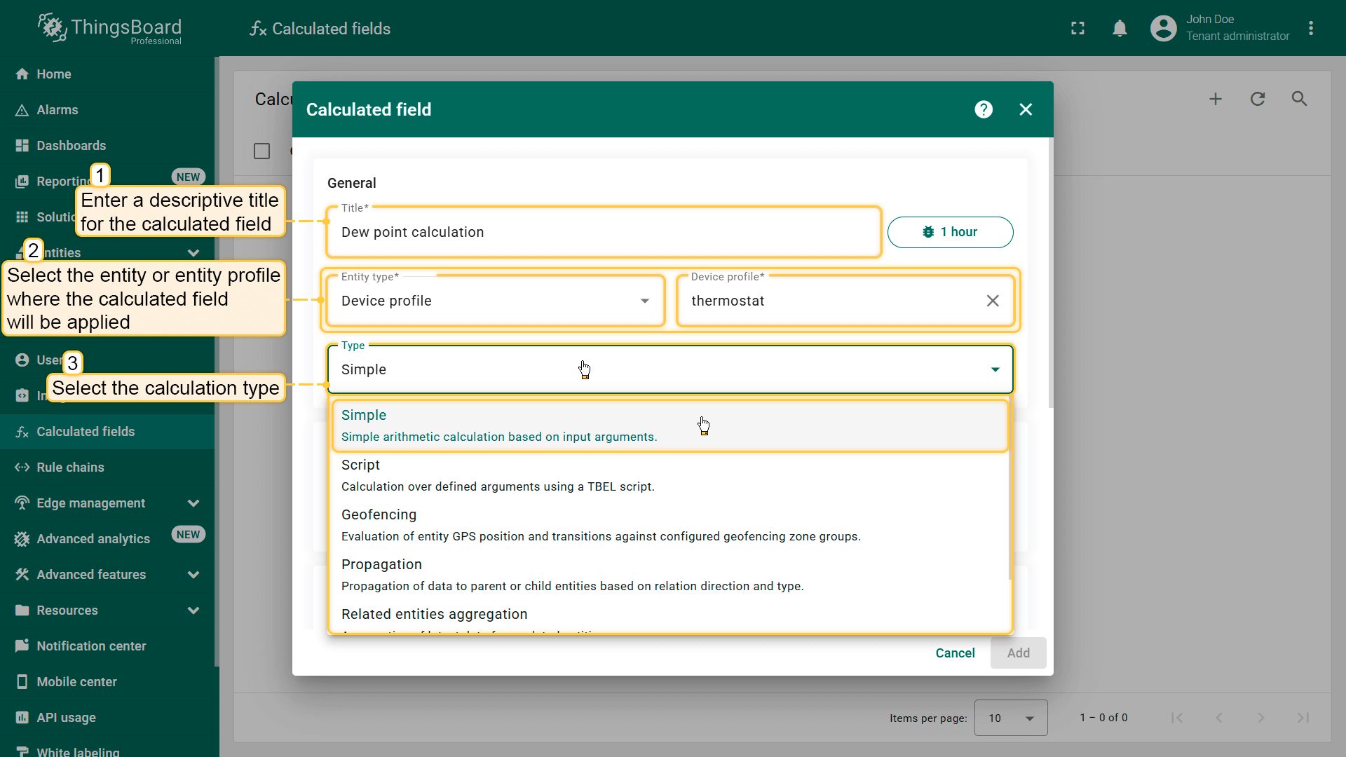 ThingsBoard支持多种字段计算类型,各自针对特定任务场景: