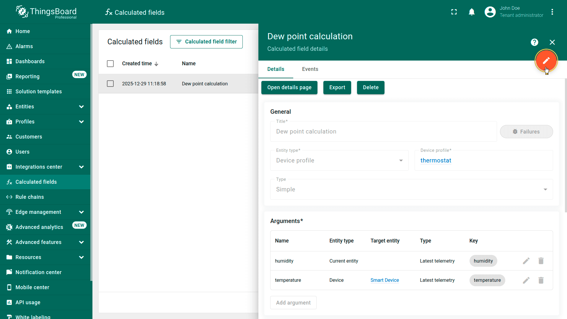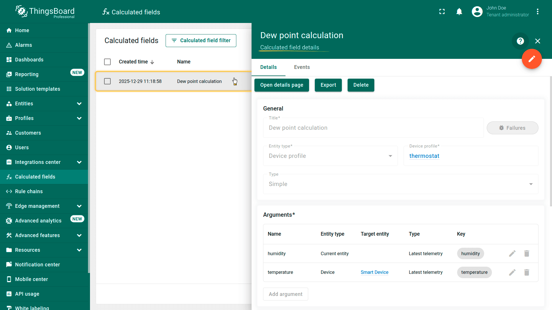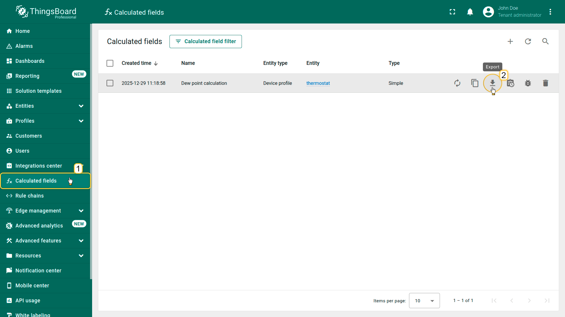 可将字段计算导出为JSON文件,并导入到同一或另一ThingsBoard实例。