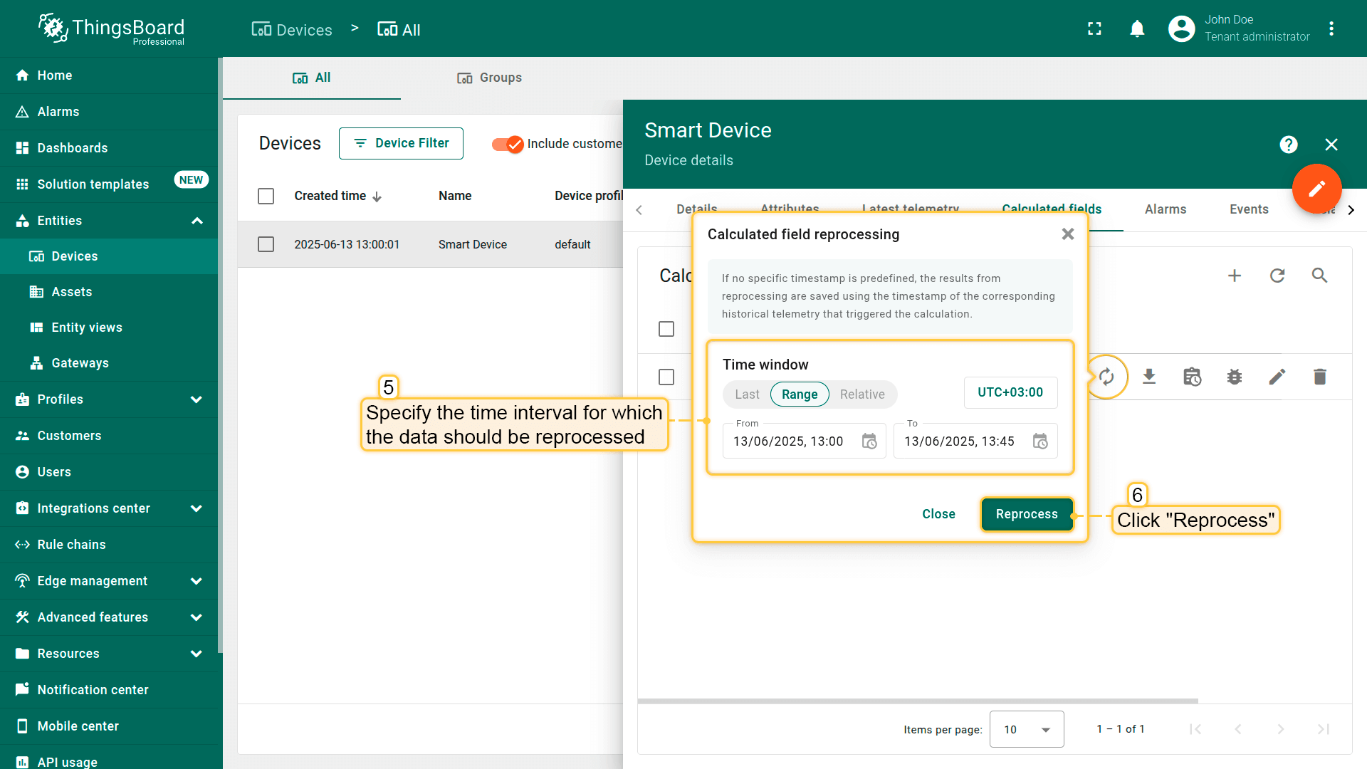 除实时处理外,ThingsBoard支持字段计算的重新处理,可将相同计算逻辑应用于历史时间序列数据,并为所选时间范围生成缺失或更新结果。
