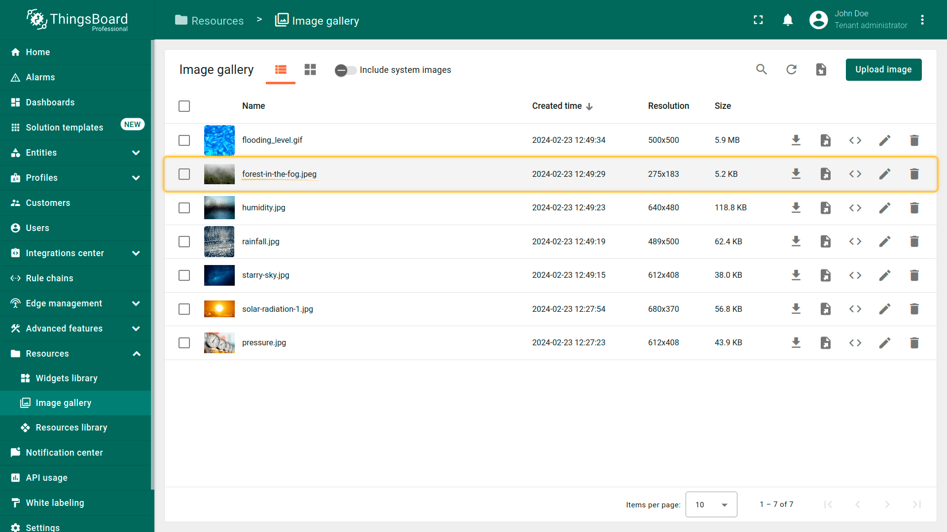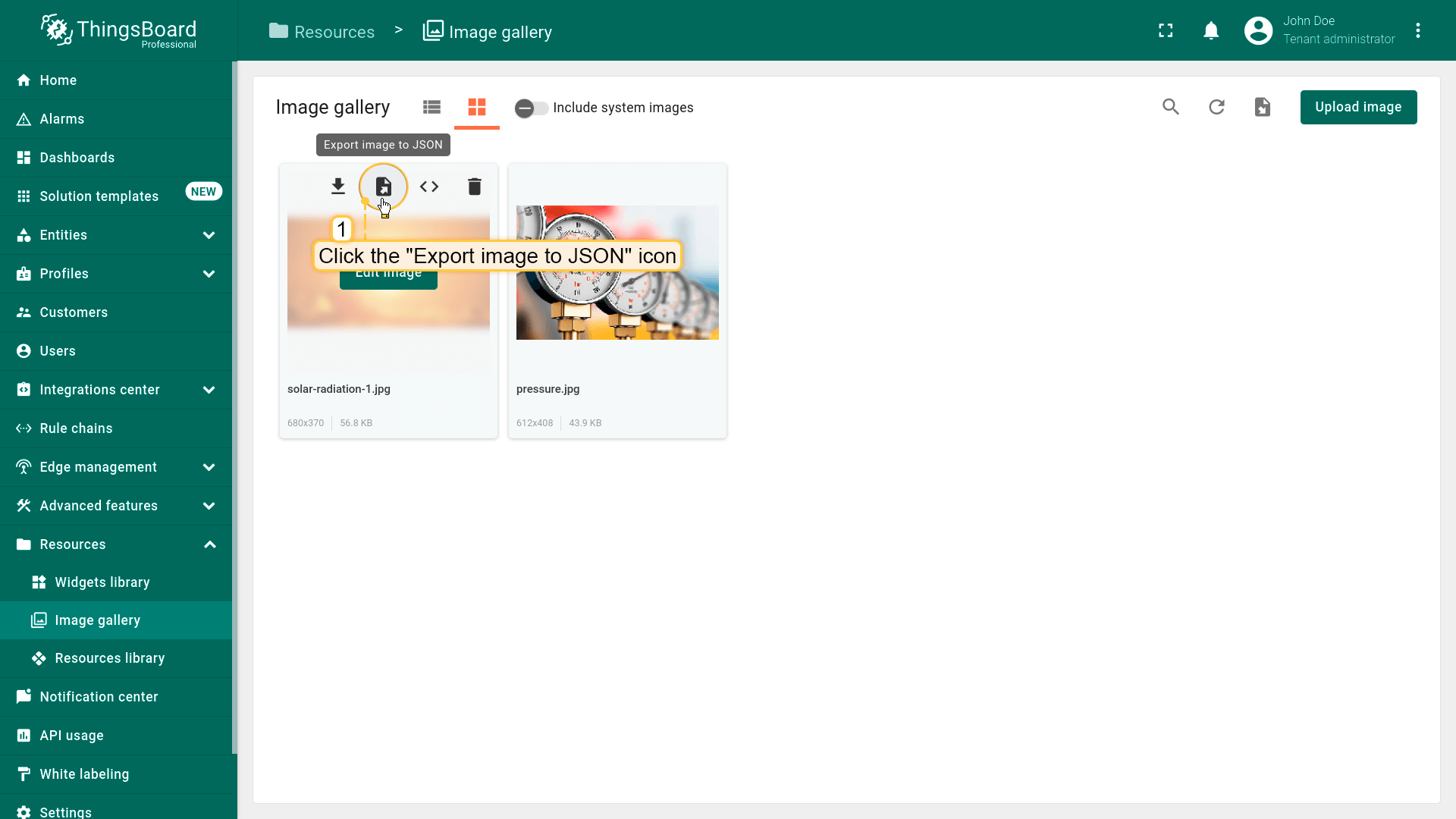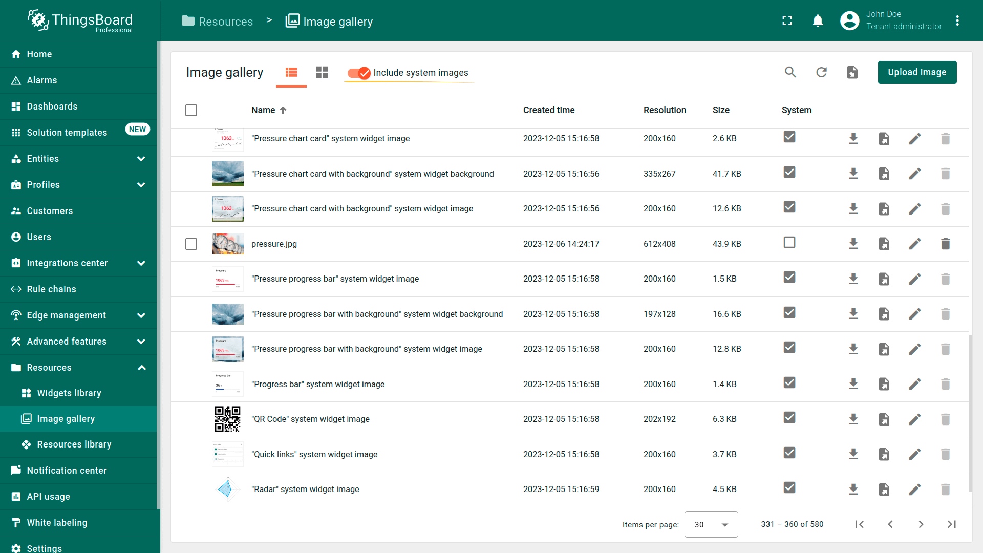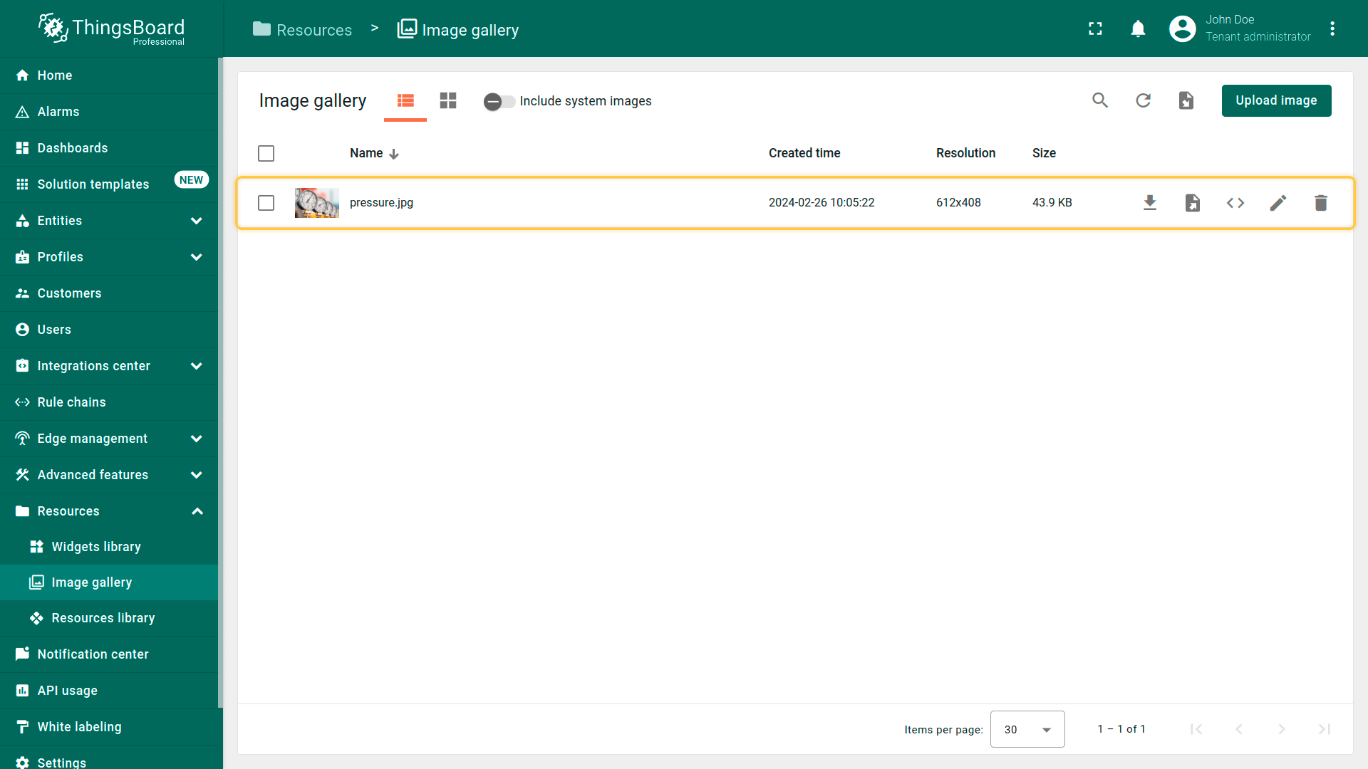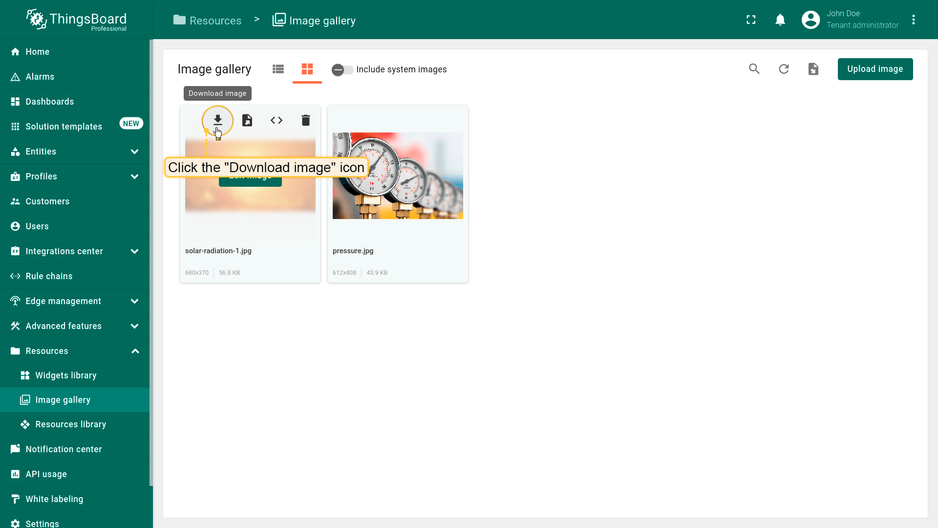 系统级图片对所有平台用户可见,租户级图片可能仅对特定租户可见。 ThingsBoard平台上每张图片都有唯一URL,支持带认证和不带认证下载。