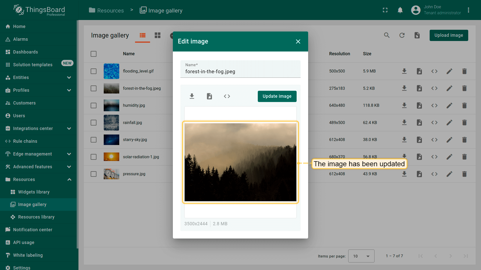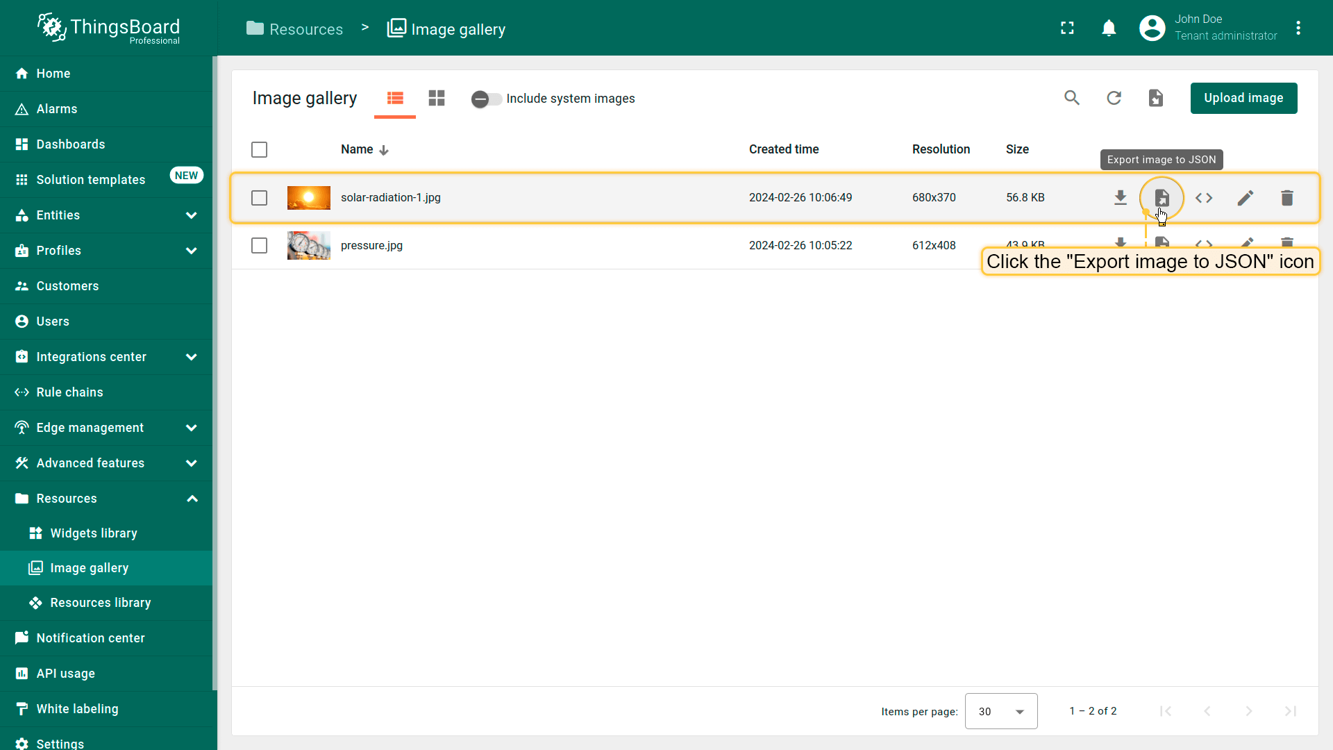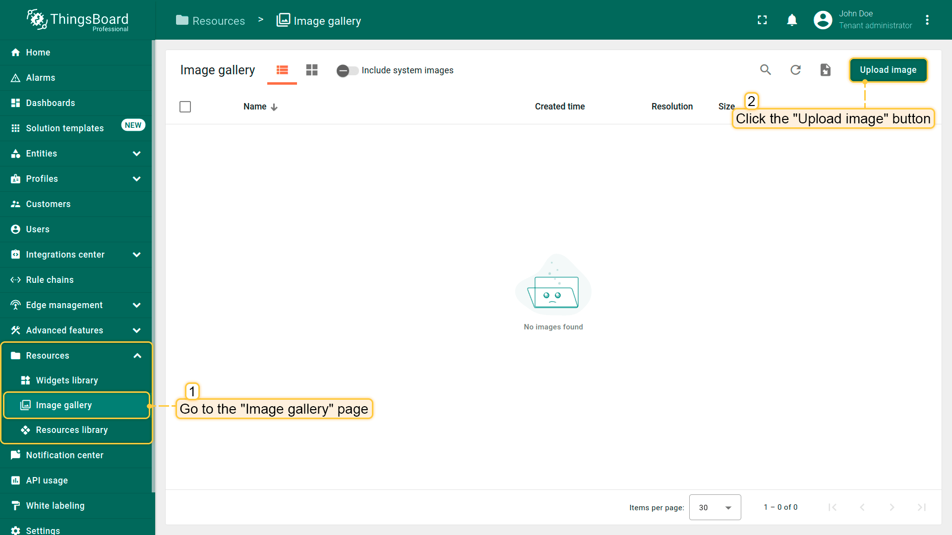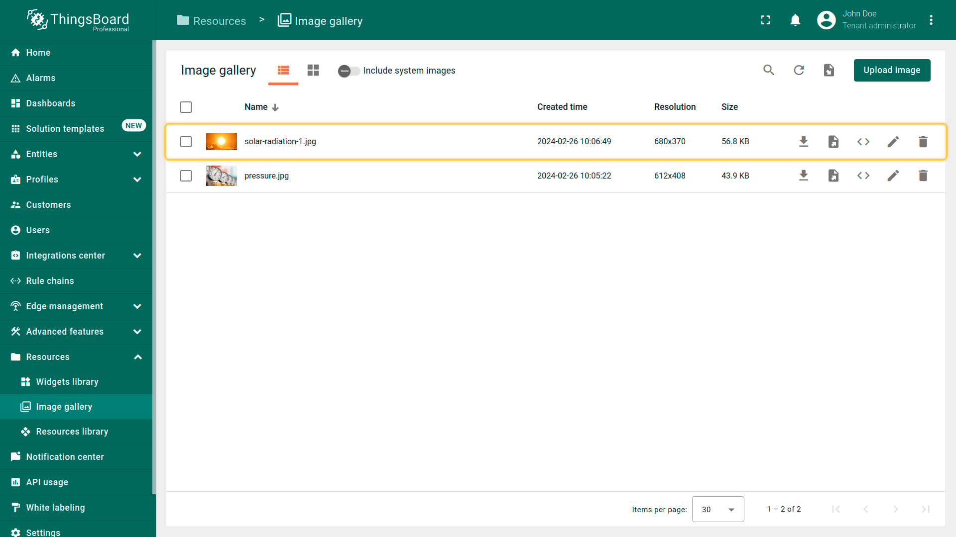 系统级图片对所有平台用户可见,租户级图片可能仅对特定租户可见。 ThingsBoard平台上每张图片都有唯一URL,支持带认证和不带认证下载。