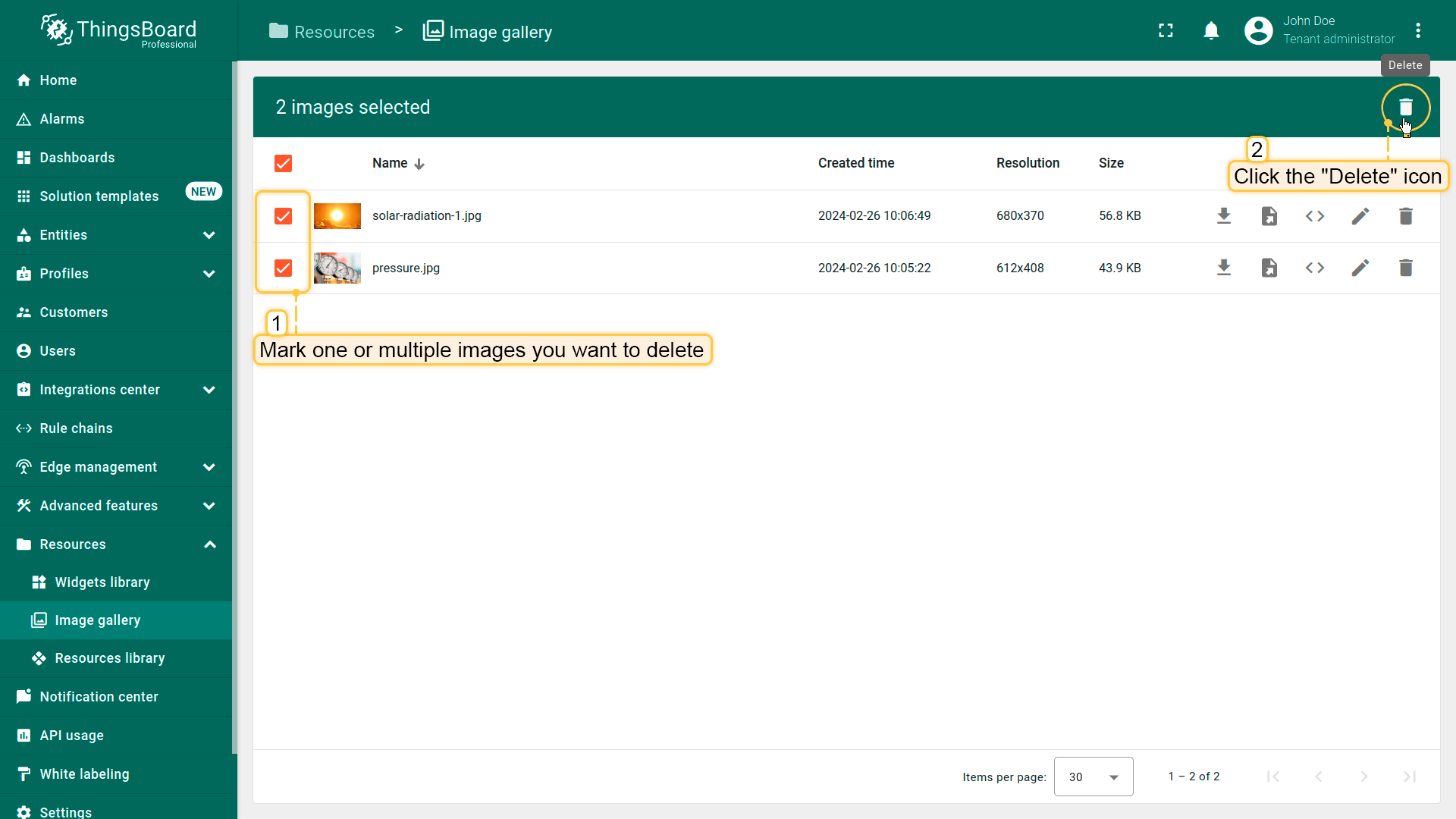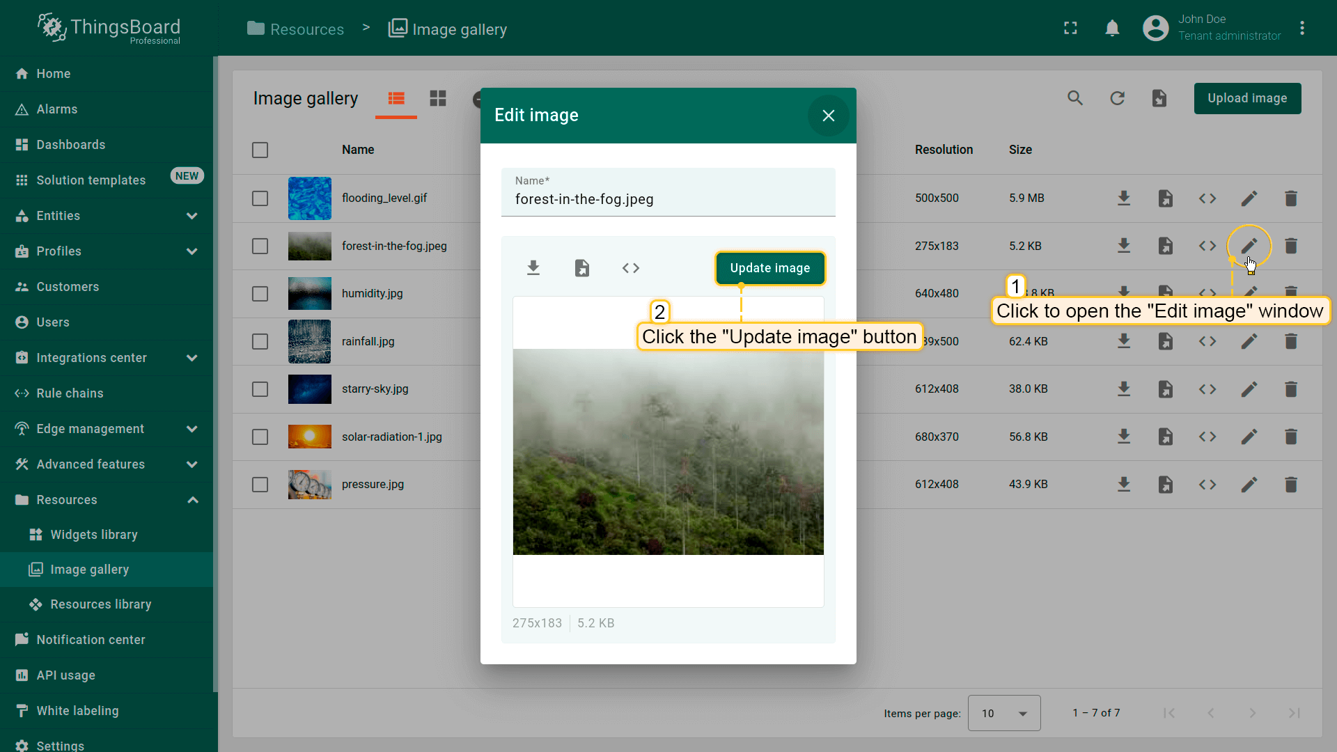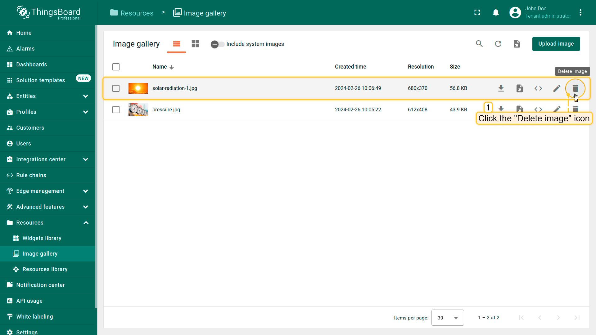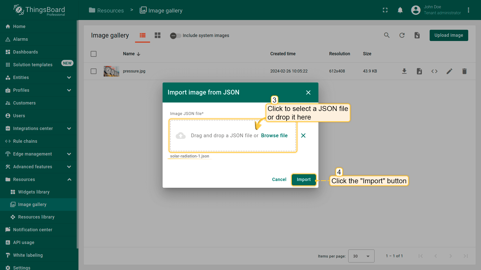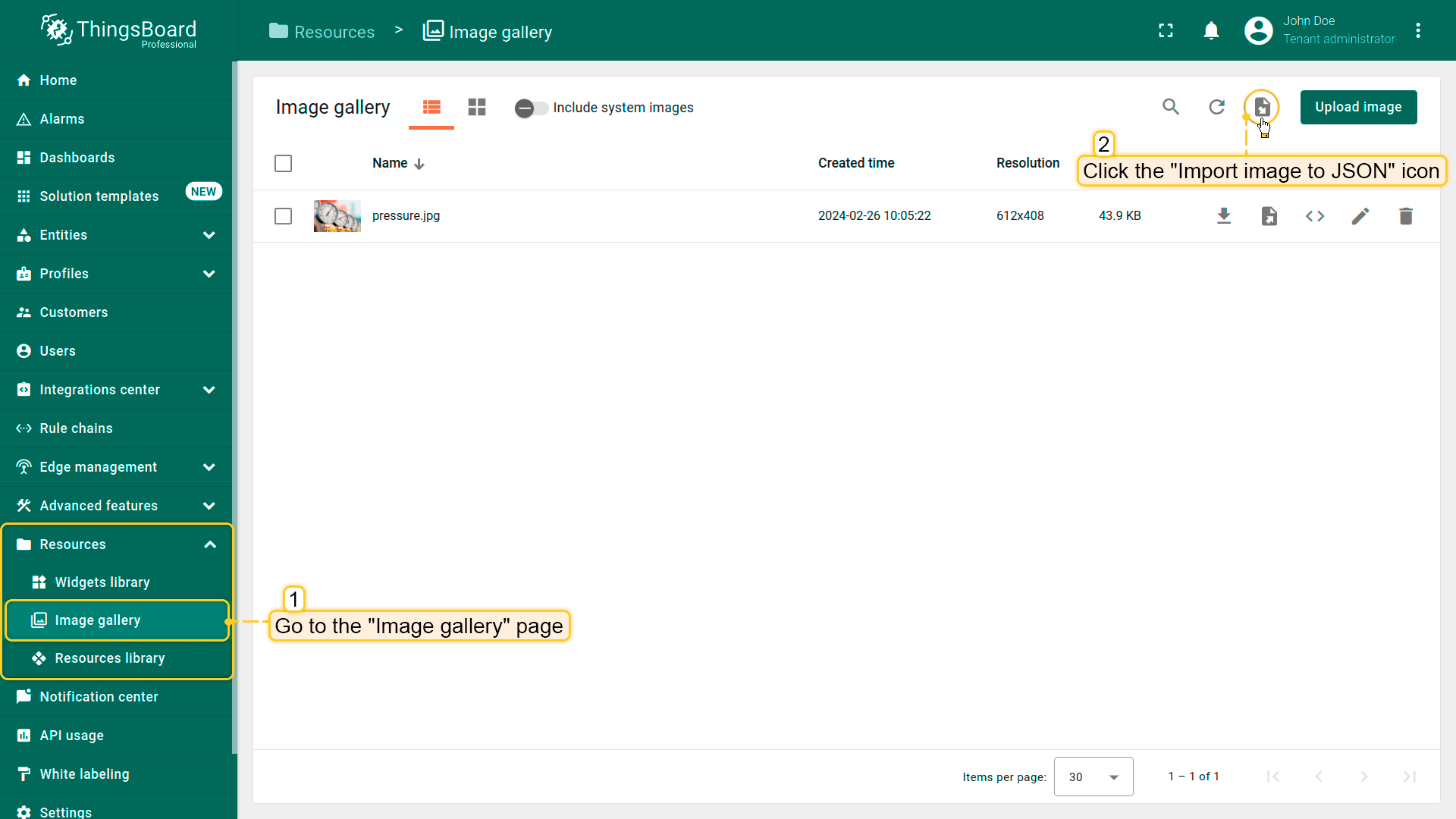系统级图片对所有平台用户可见,租户级图片可能仅对特定租户可见。 ThingsBoard平台上每张图片都有唯一URL,支持带认证和不带认证下载。