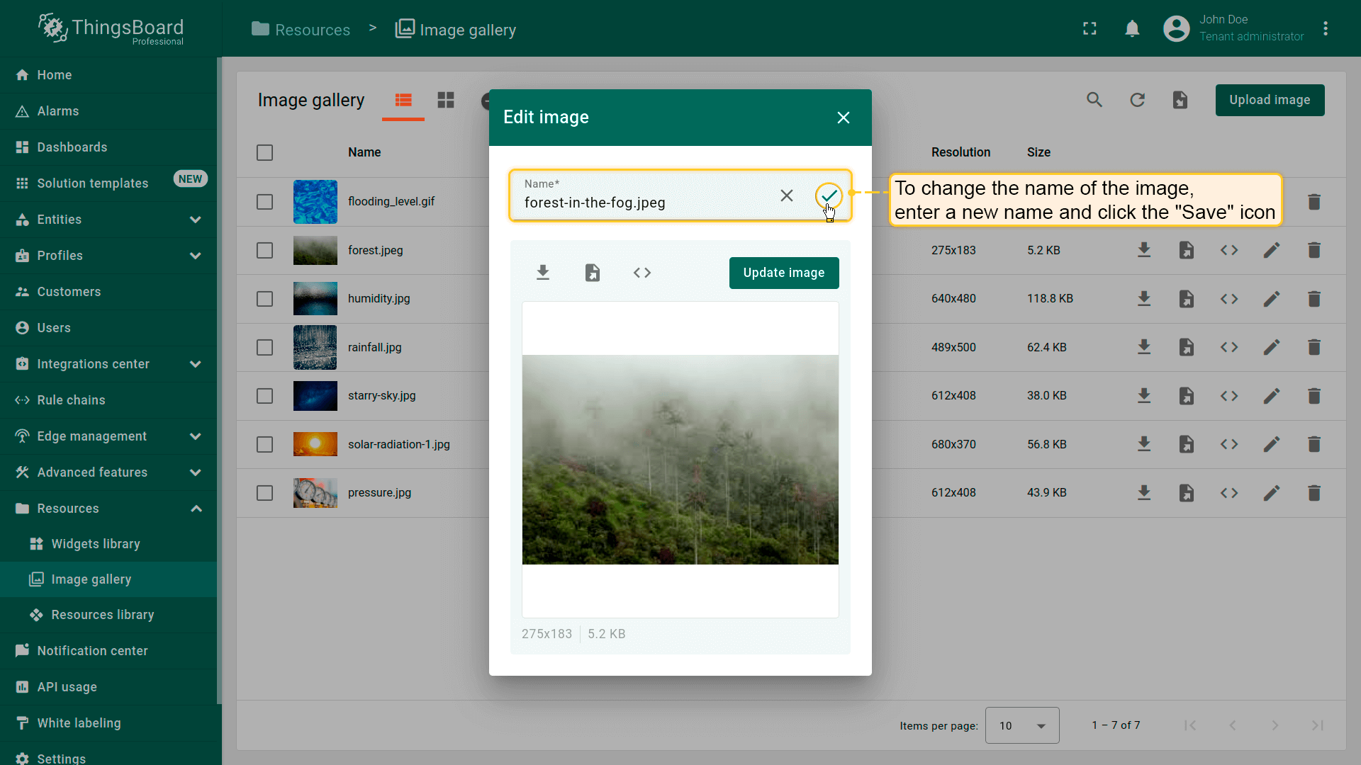 若要修改图片名称,在”Edit image”窗口中输入新名称并点击”Save”图标。