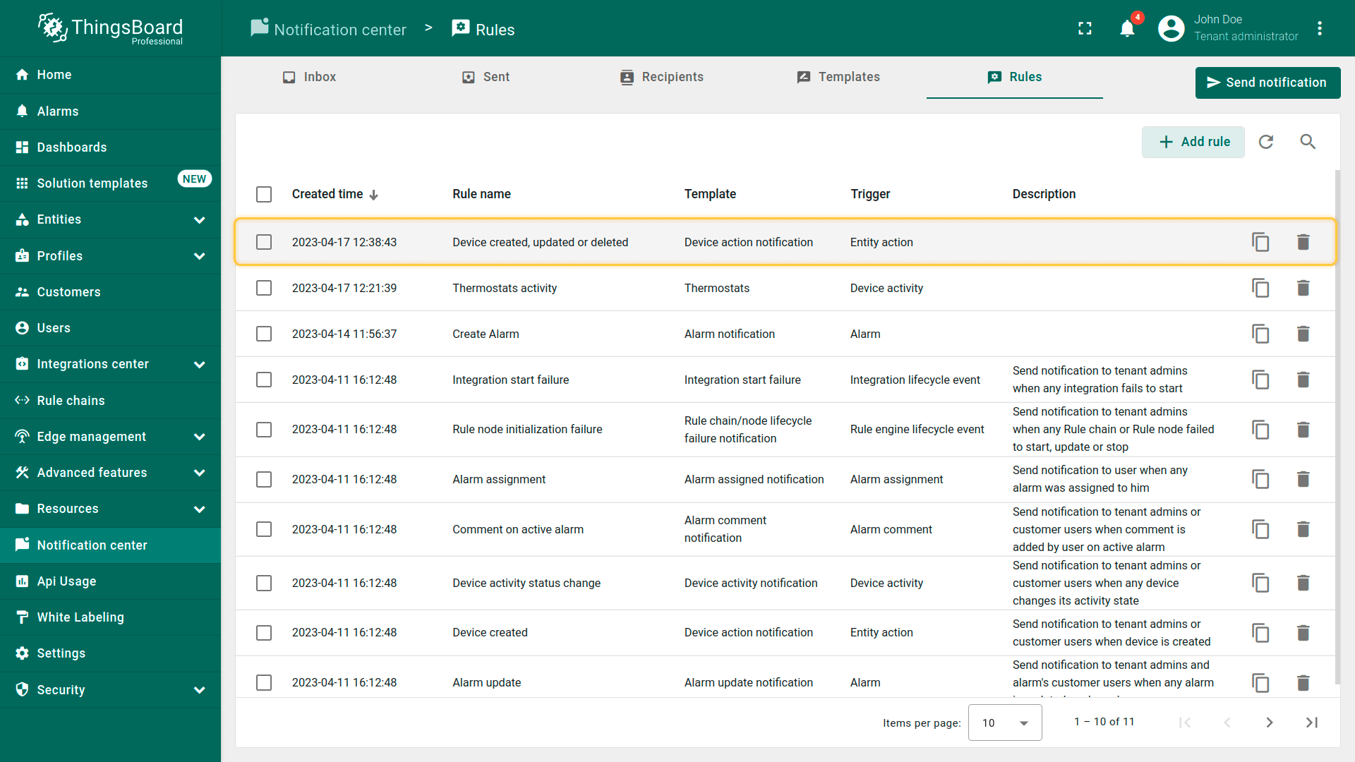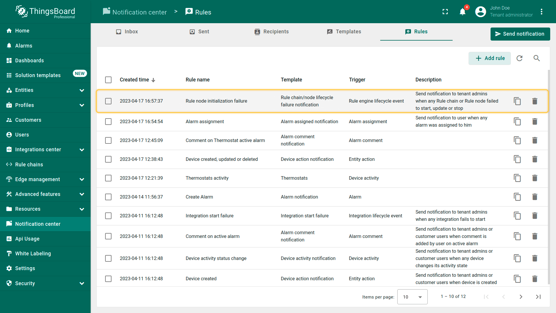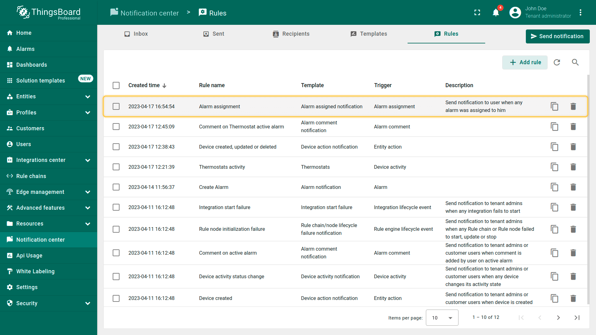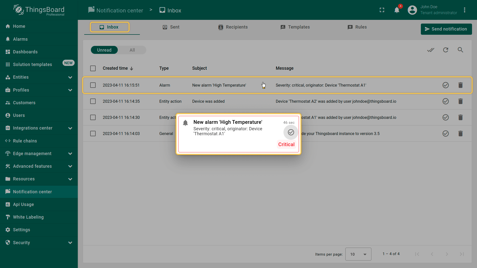 ThingsBoard提供多种通知投递方式,便于你与客户及时了解IoT方案中的事件: