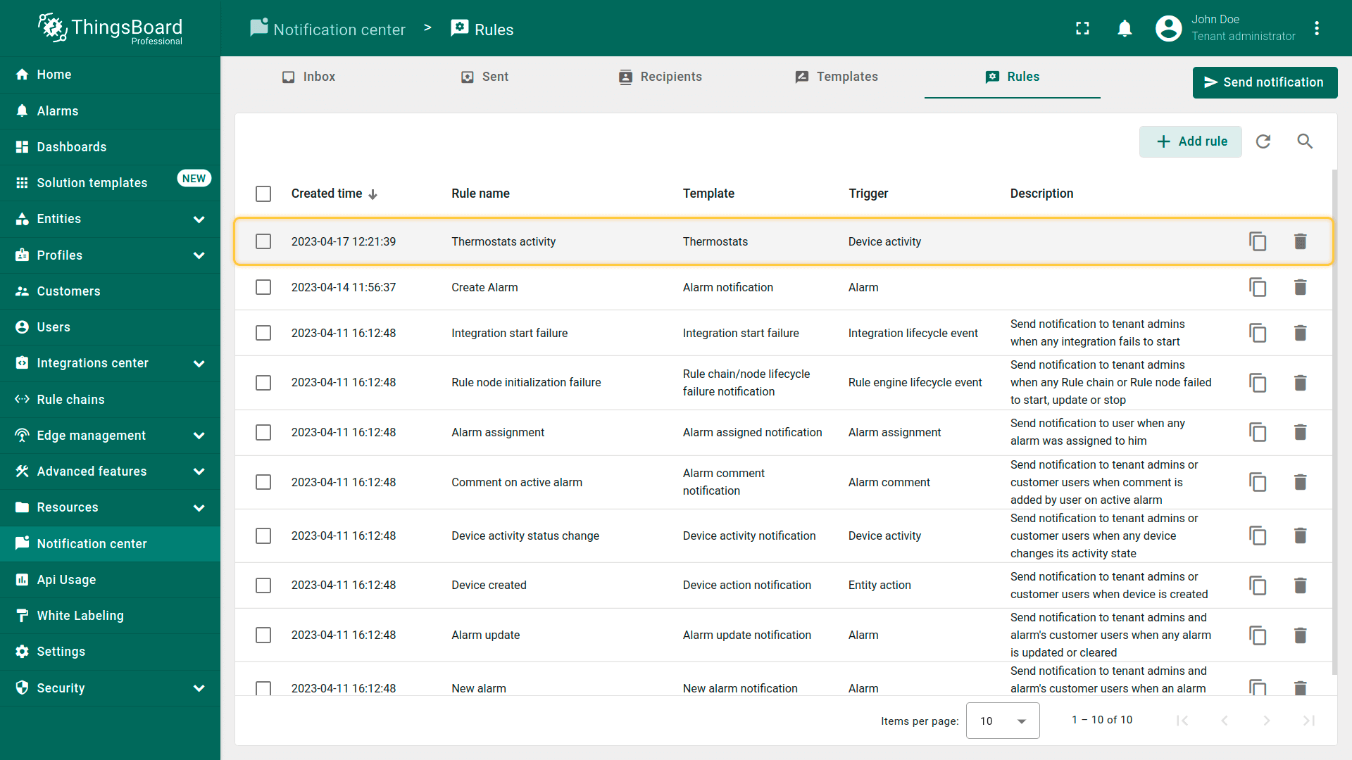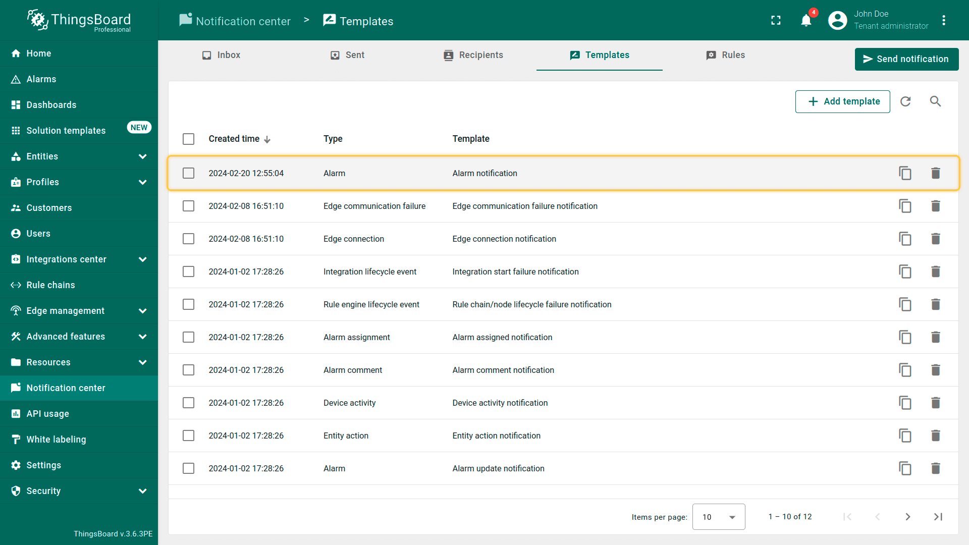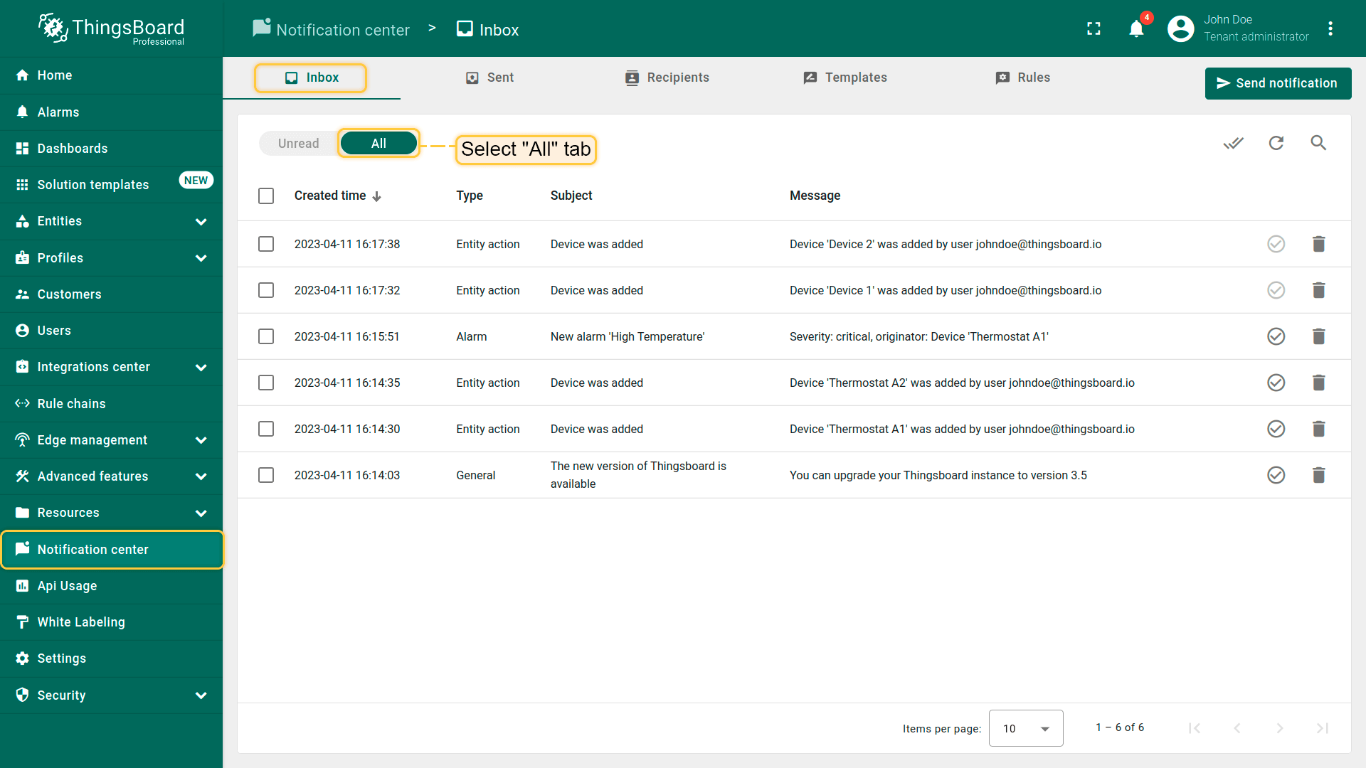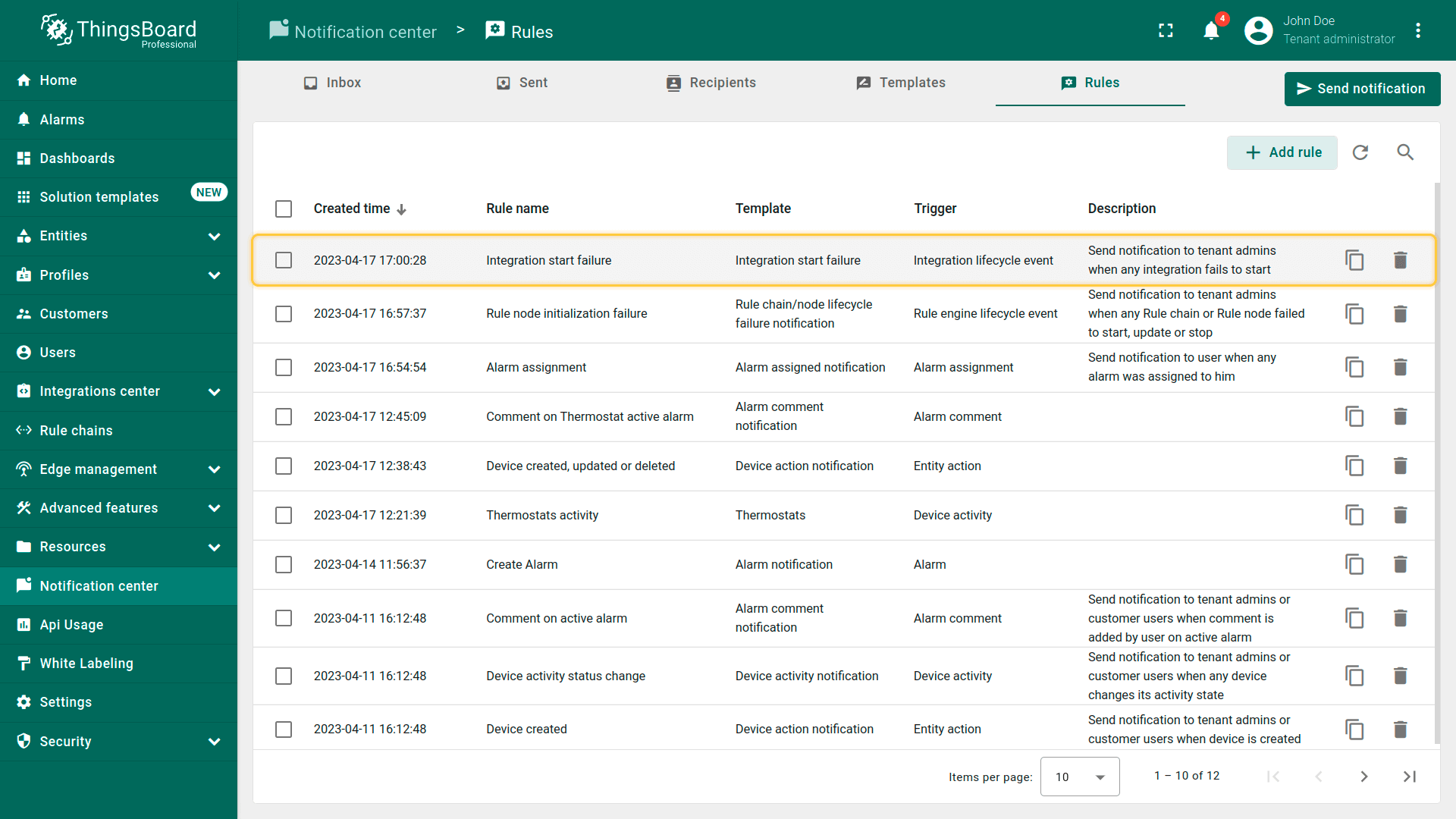 ThingsBoard提供多种通知投递方式,便于你与客户及时了解IoT方案中的事件: