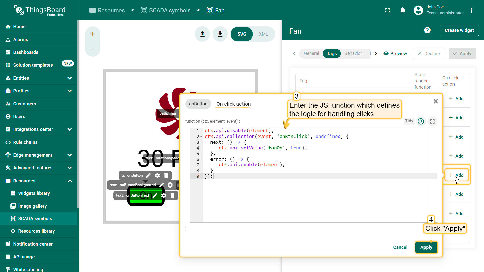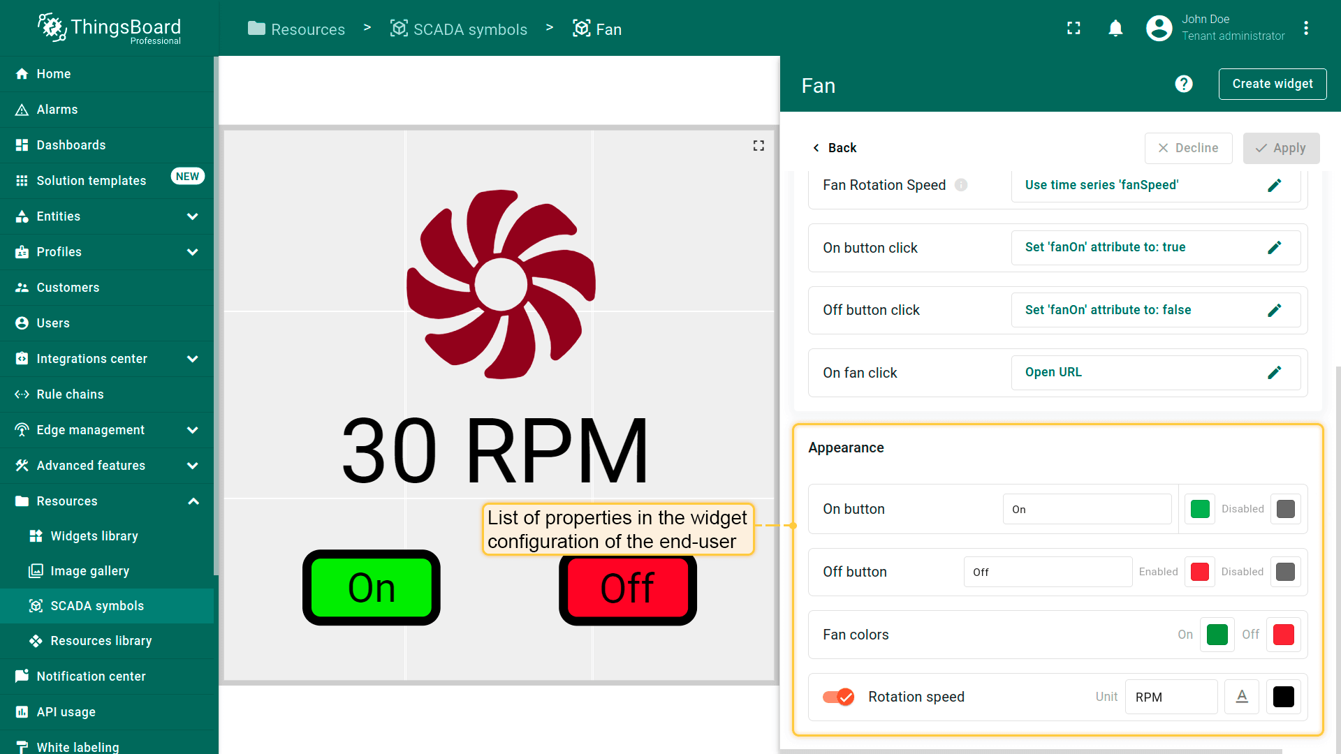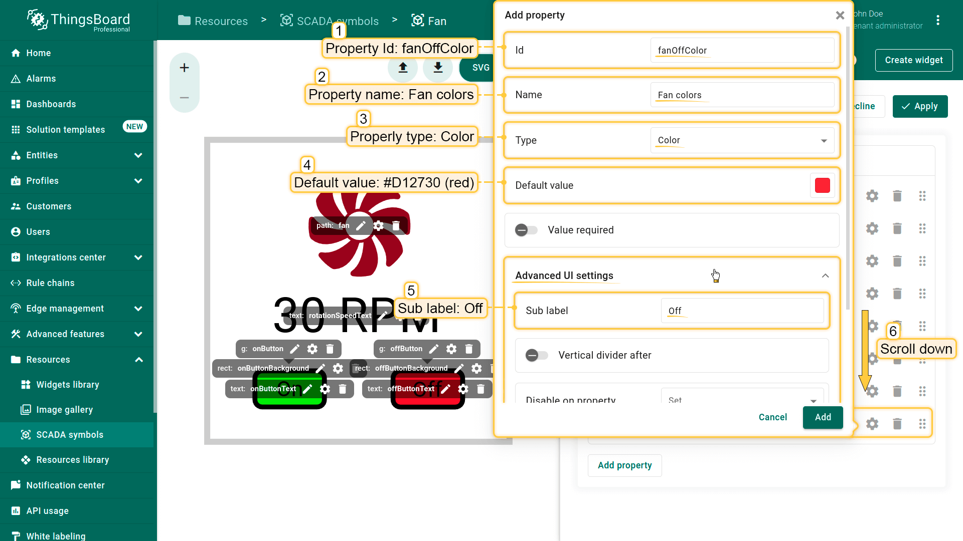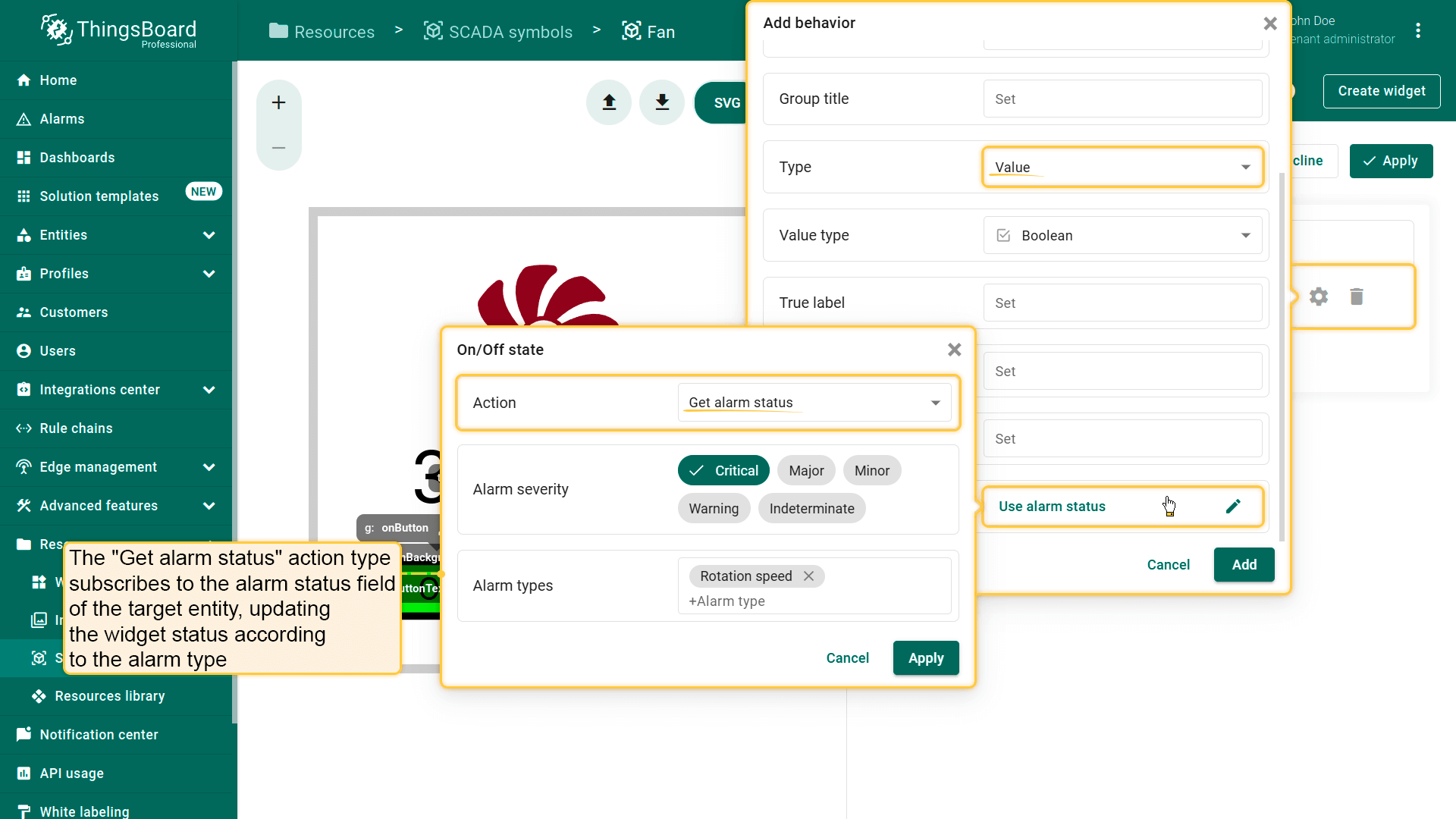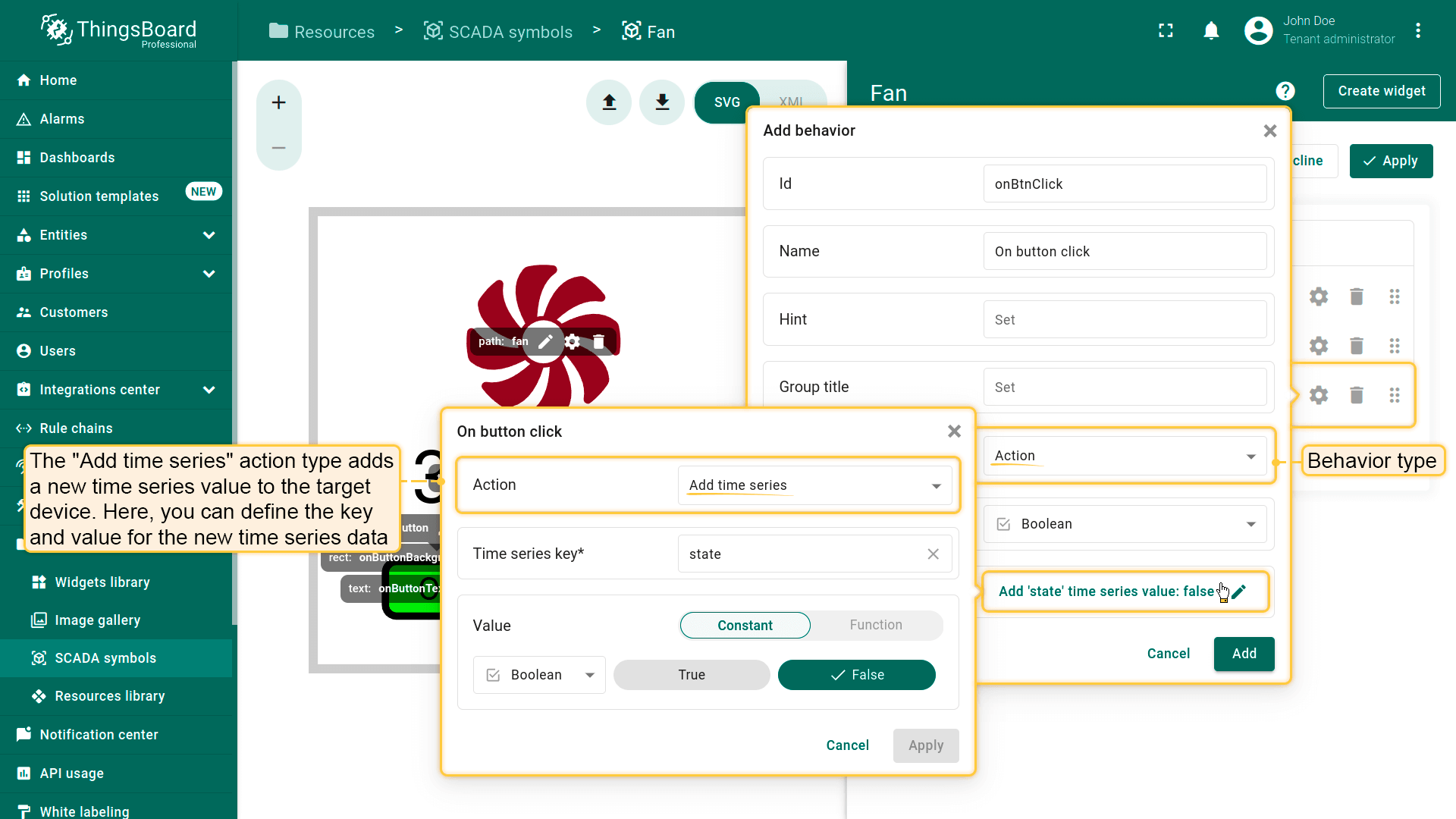 Behavior:描述SCADA symbol如何从平台接收数据,以及其在device或dashboard上触发的操作;