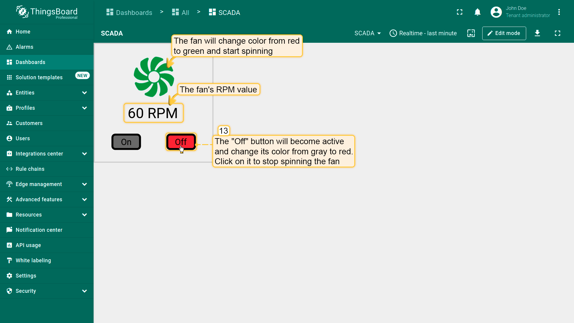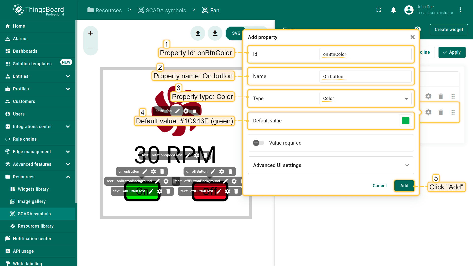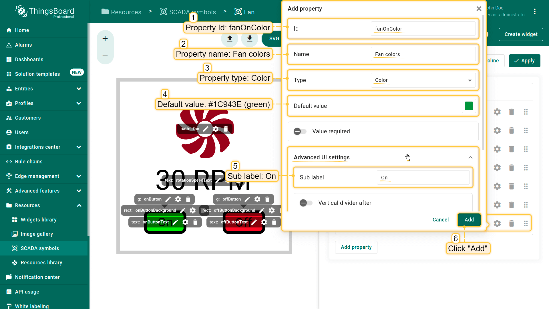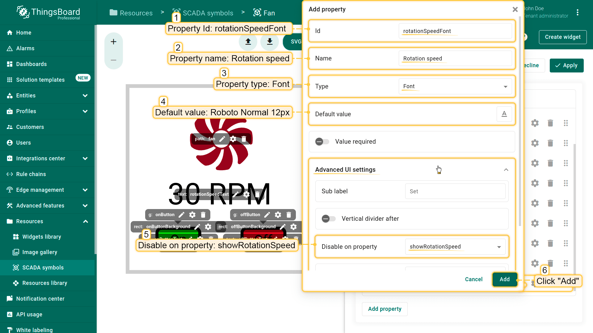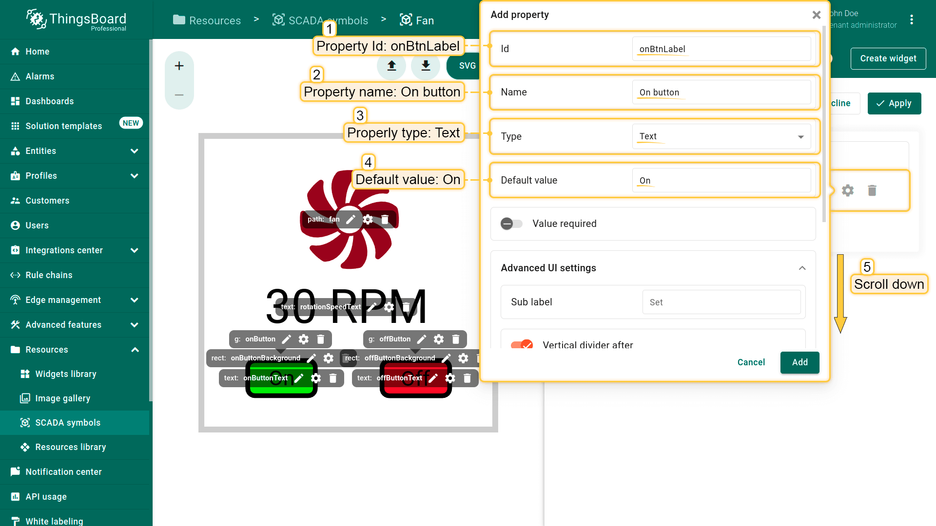 Behavior:描述SCADA symbol如何从平台接收数据,以及其在device或dashboard上触发的操作;