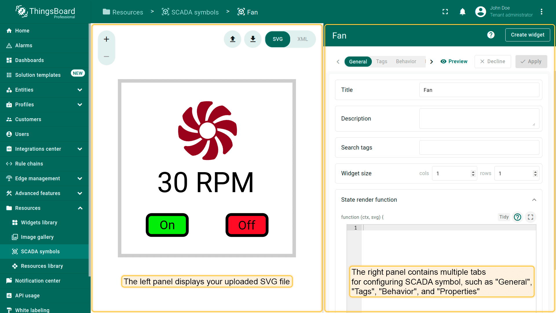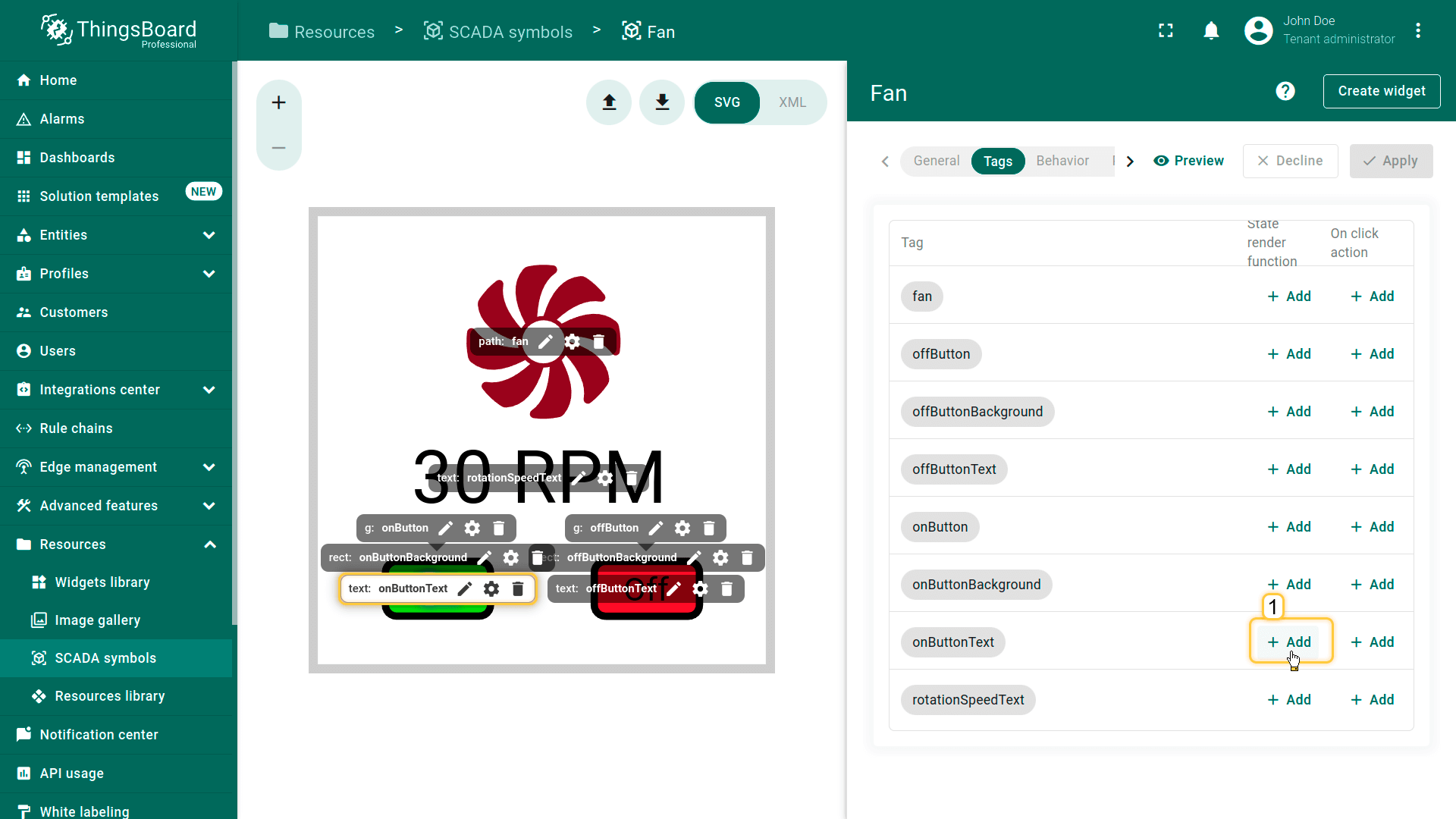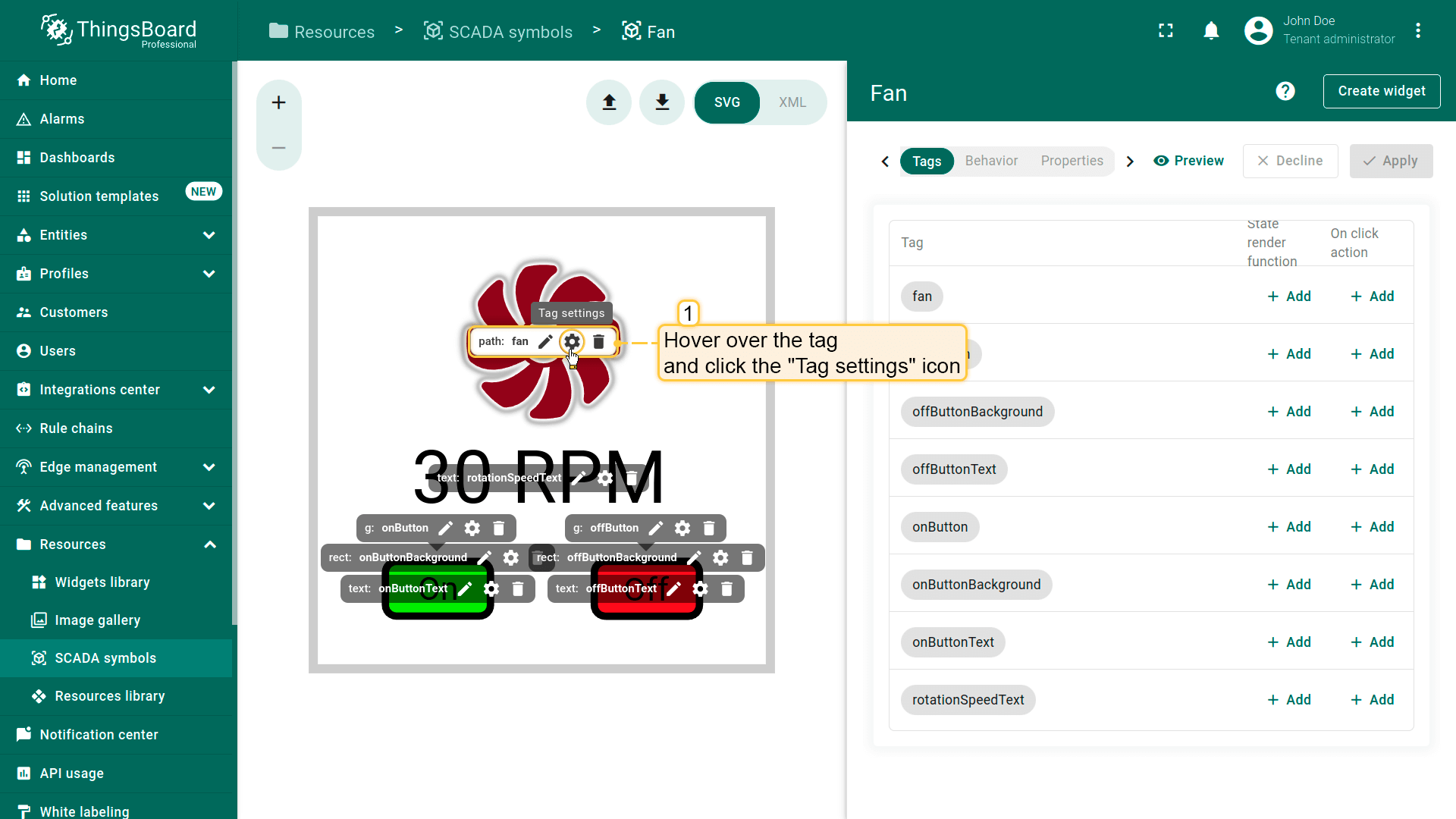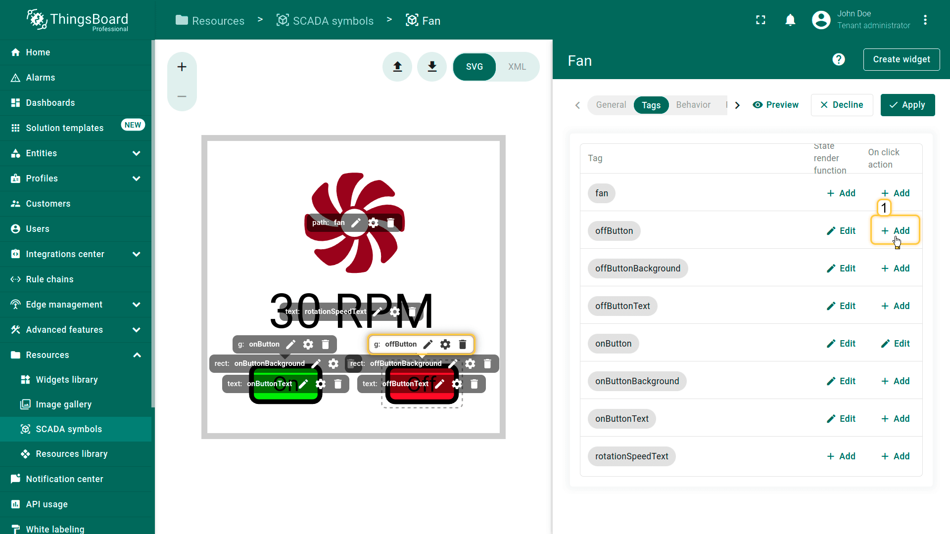 在ThingsBoard中创建SCADA symbol涉及SVG文件及以下概念: