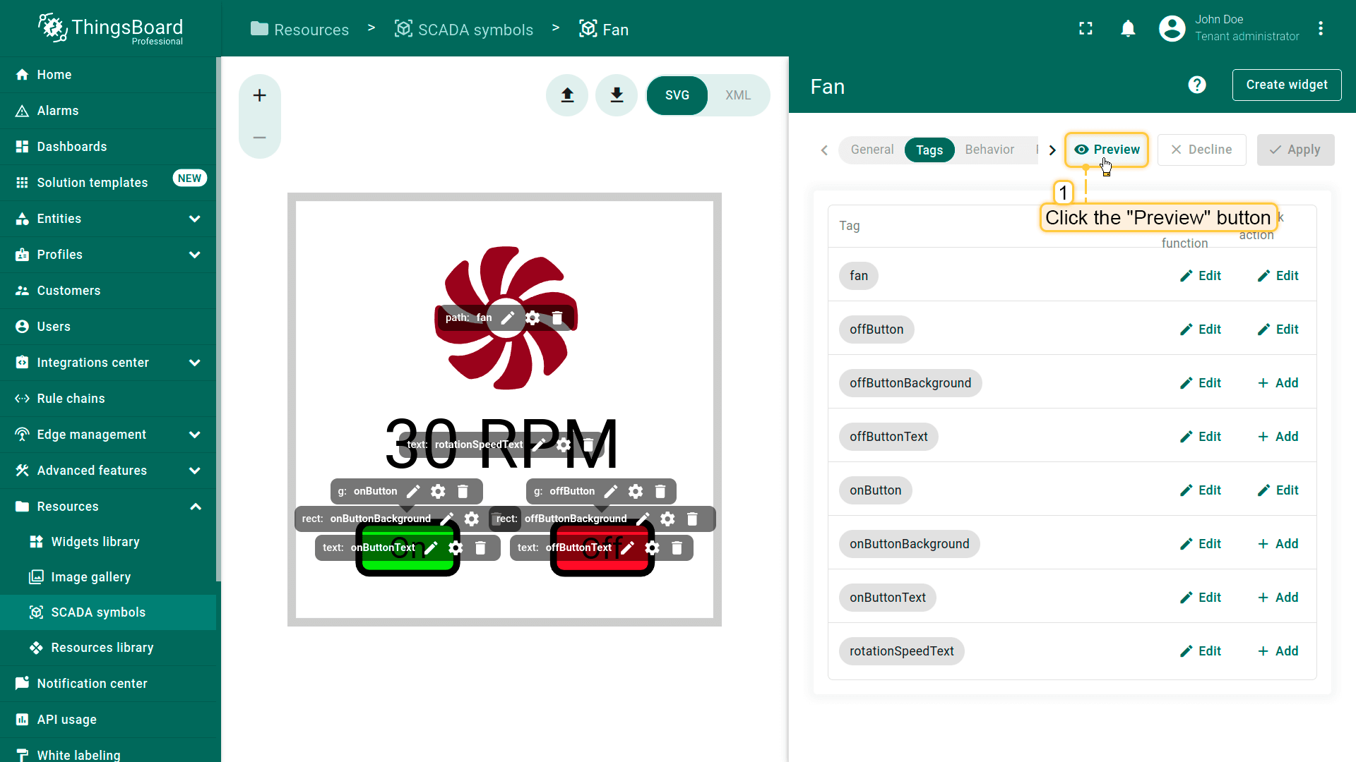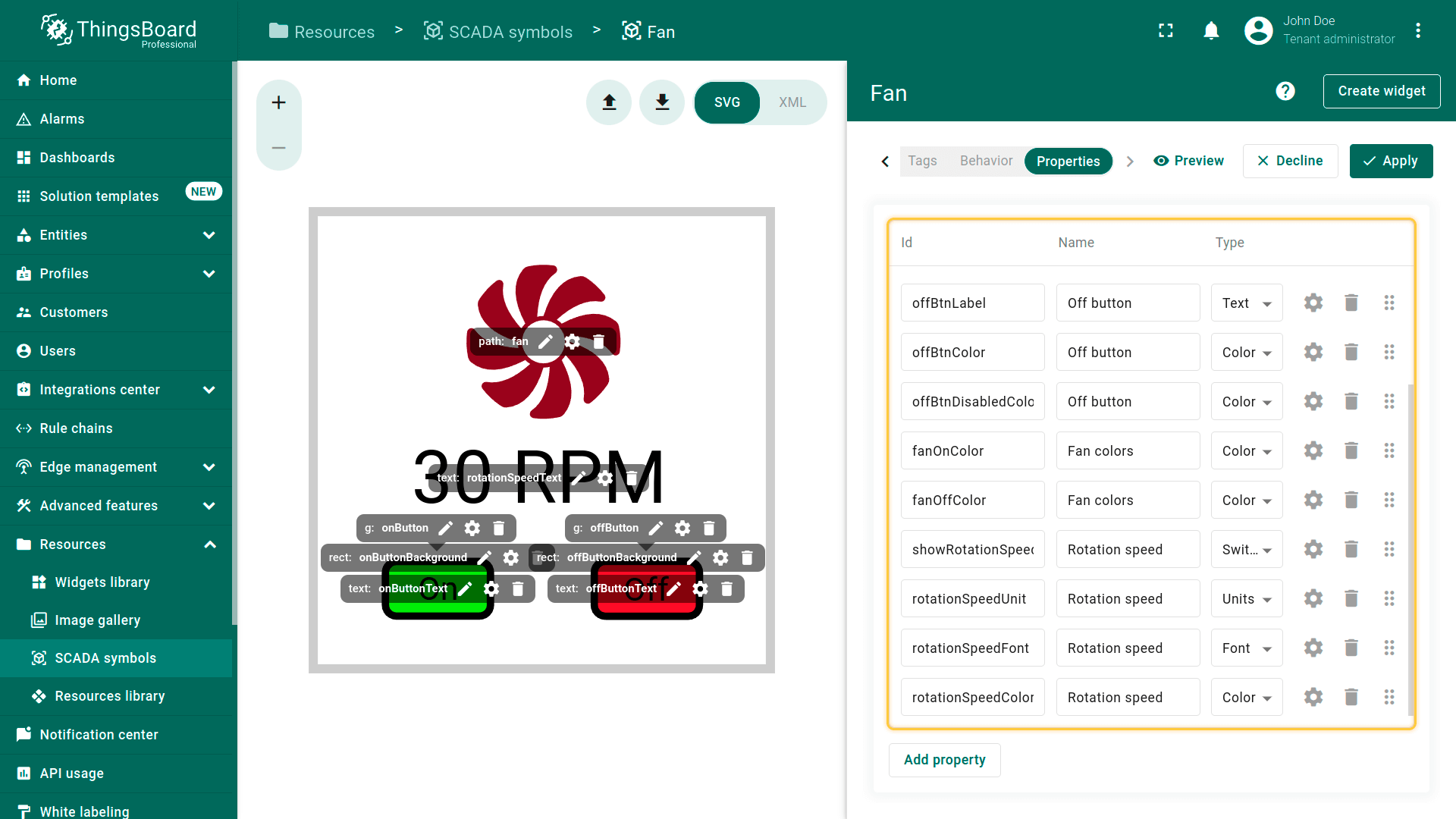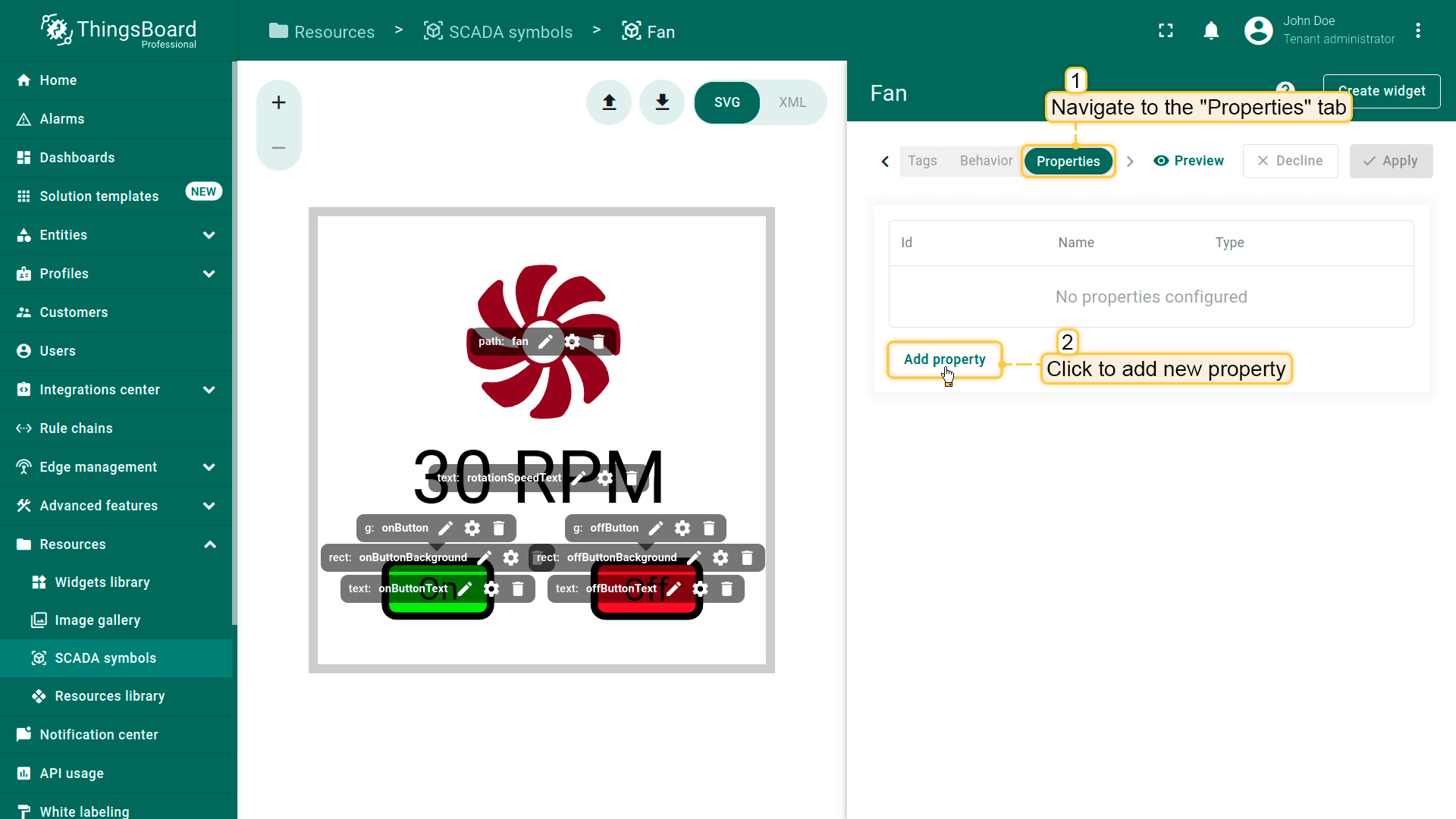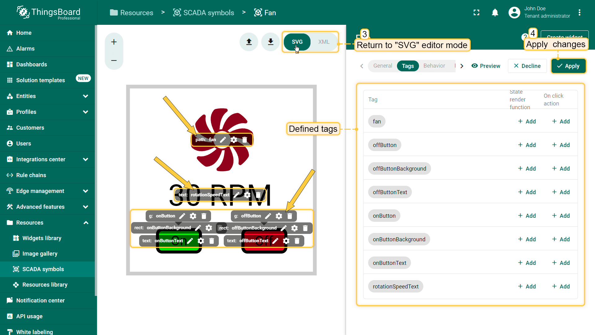 在ThingsBoard中创建SCADA symbol涉及SVG文件及以下概念: