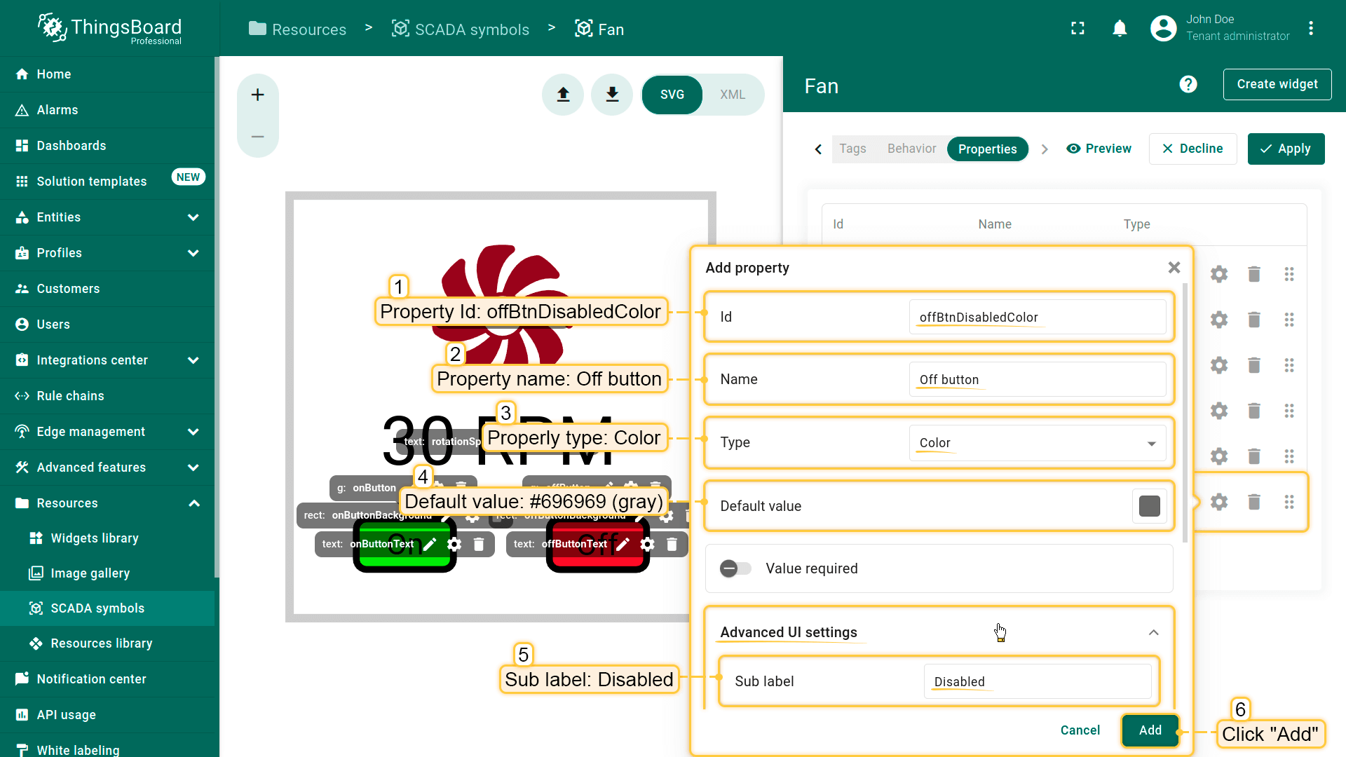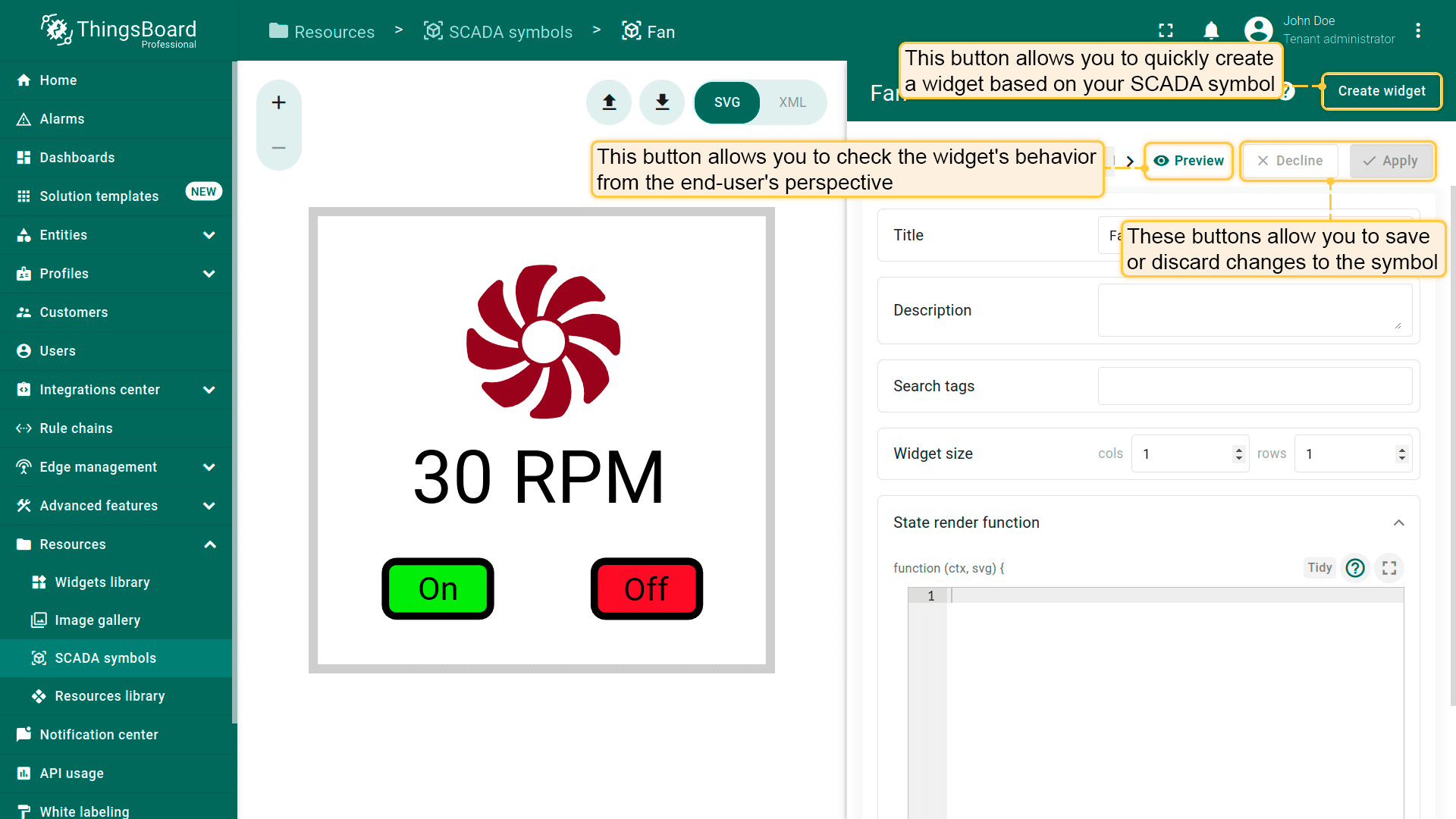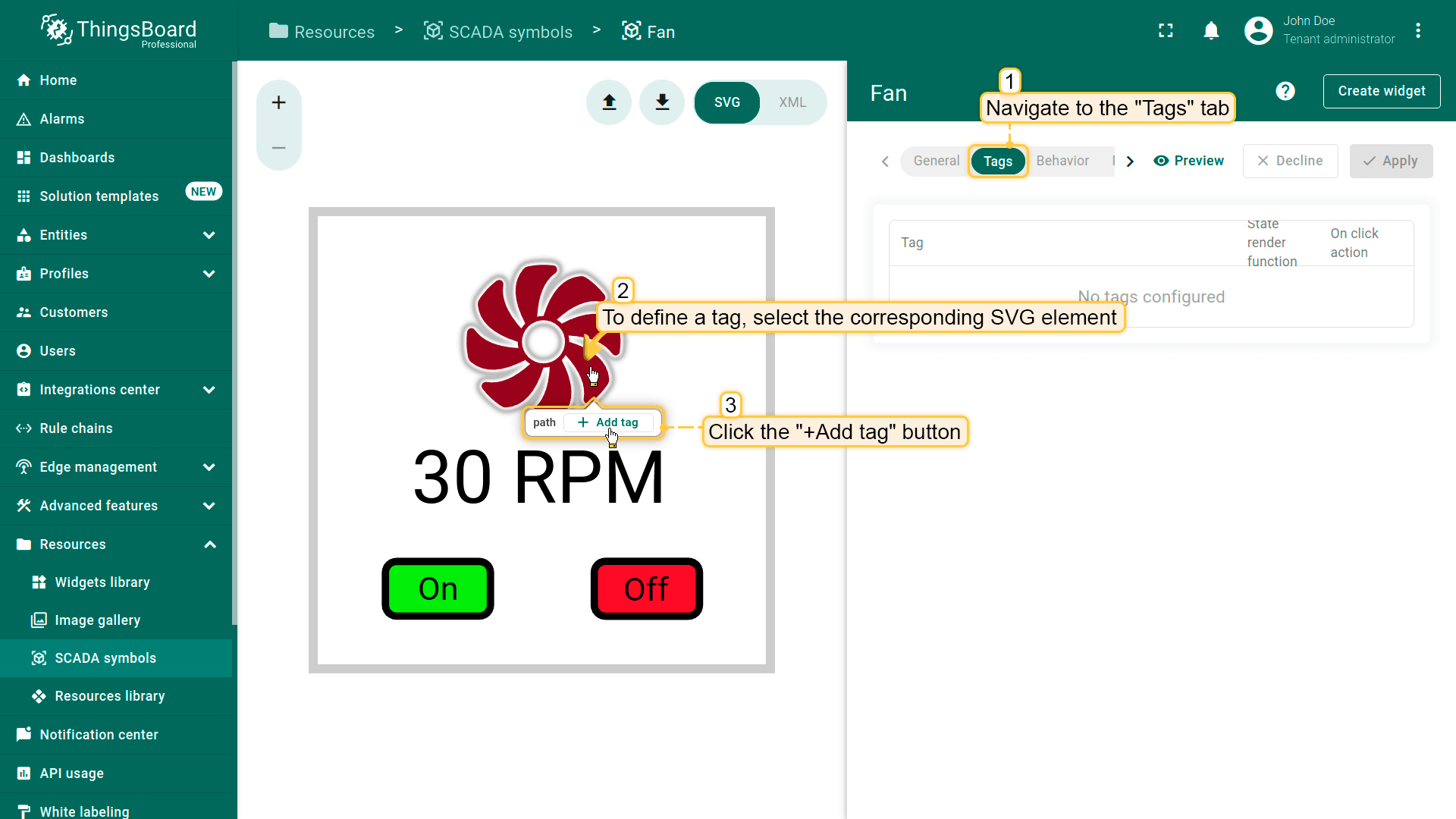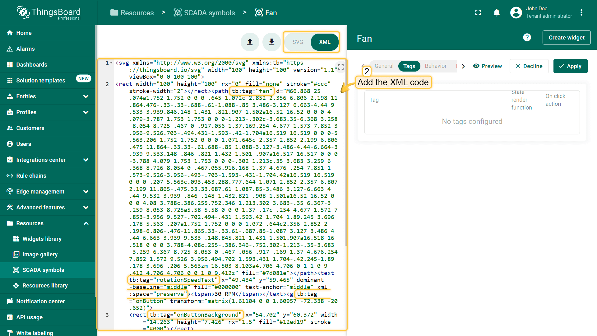 在ThingsBoard中创建SCADA symbol涉及SVG文件及以下概念: