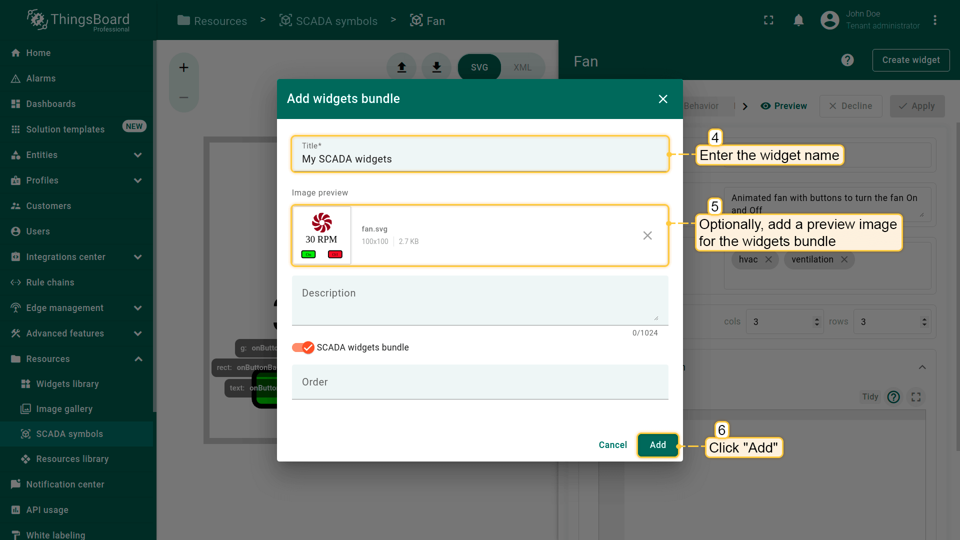 - 进入 “SCADA symbols” 的 “Resources” 页面,点击 “Upload SCADA symbol” 按钮;