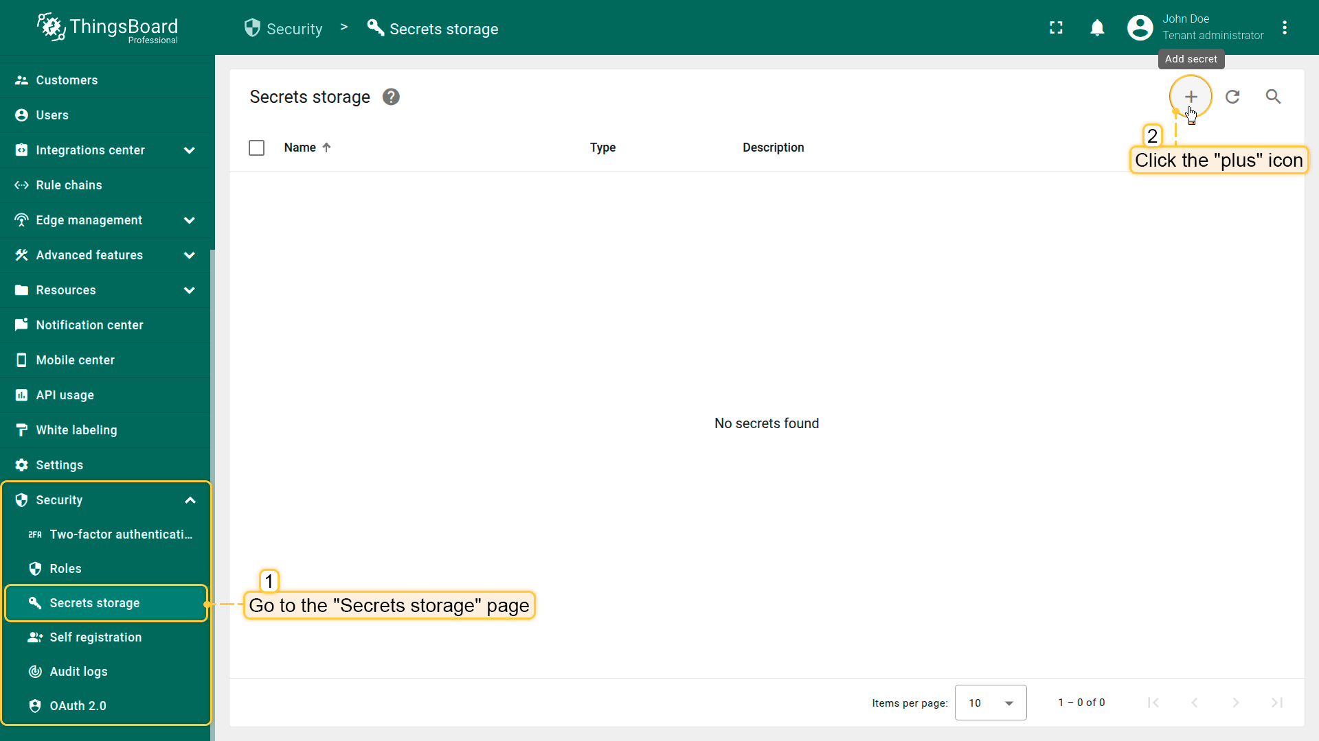 ThingsBoard通过 RBAC 管理对Secrets存储的访问。 仅拥有相应权限的用户可创建、使用、编辑或删除Secrets。
