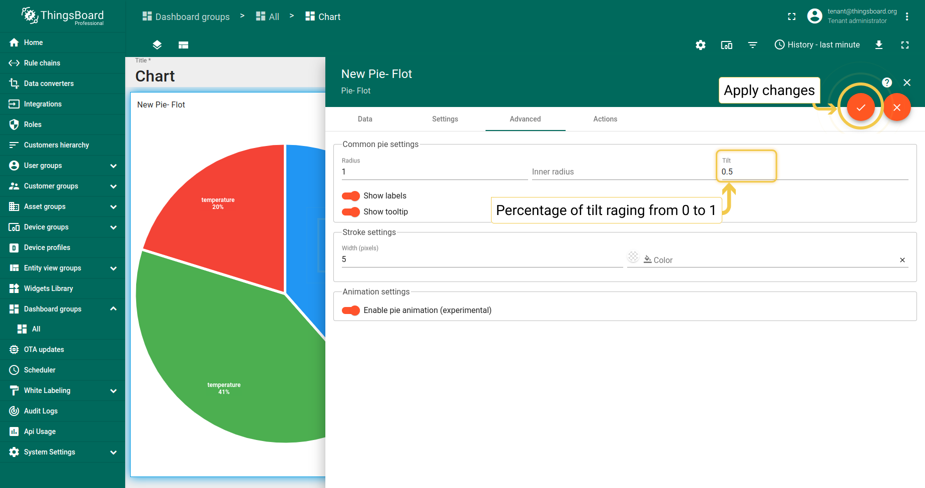 ThingsBoard部件都具有相同的基础设置可以在此处了解如何自定义它们。