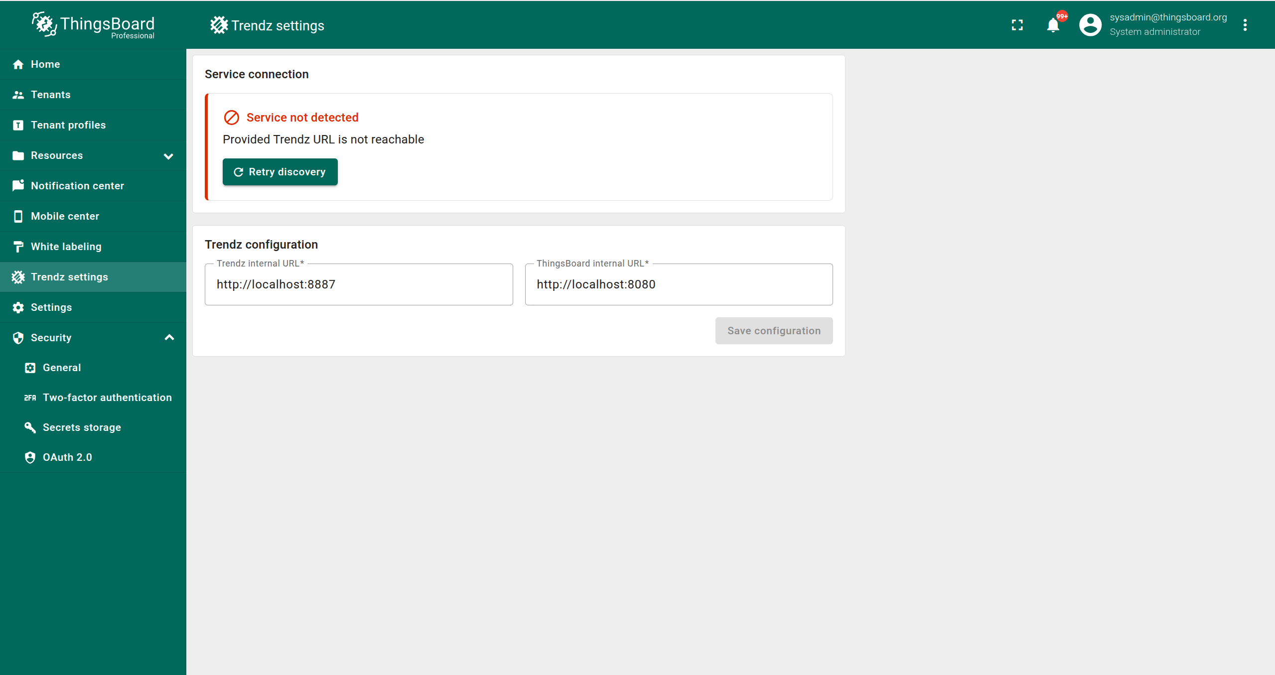 - ThingsBoard Internal URL - Trendz用于与ThingsBoard通信的URL。